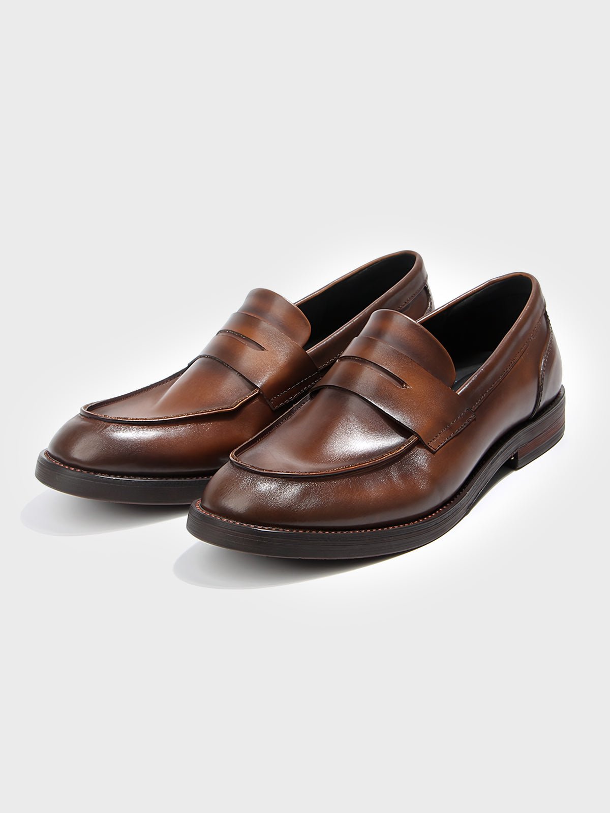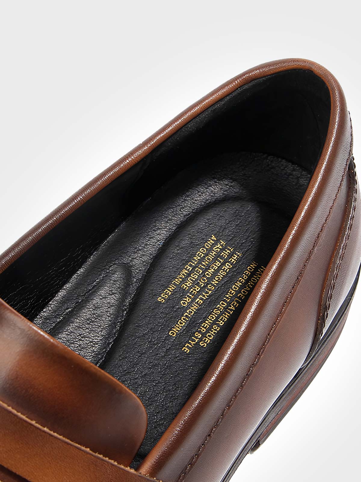 ローファーのデザインは20世紀のノルウェーに起源を持ち、履きやすいスリップオンスタイルが特徴です。カジュアルとフォーマルのスタイルを融合させ、時が経つにつれて、男性の靴箱に欠かせないクラシックなアイテムとなりました。この靴はクラシックなローファーデザインを採用しており、トップレイヤーカーフスキン素材は耐久性に優れ、着用することで徐々に足の形に合わせて、パーソナライズされた快適さを提供します。