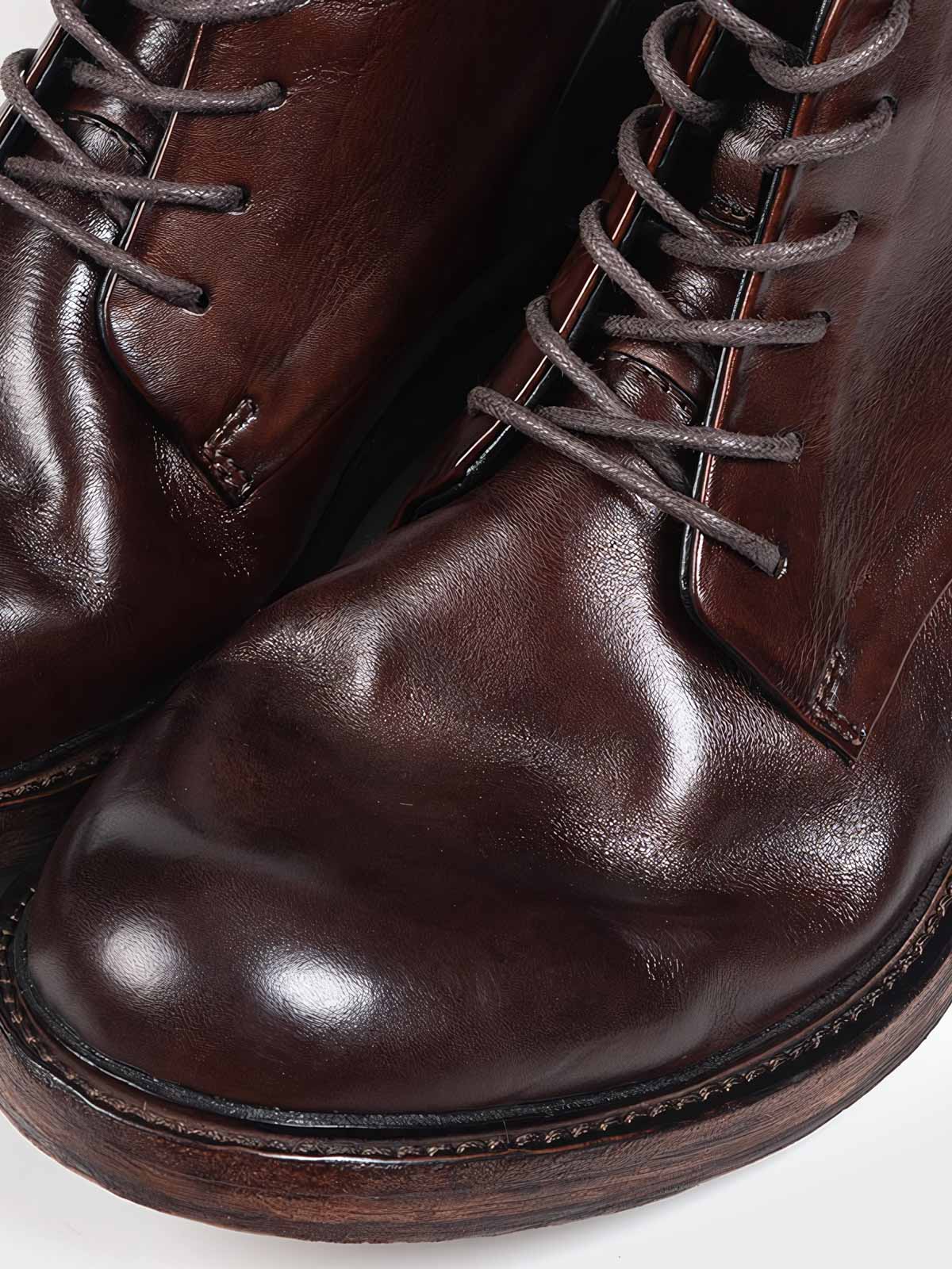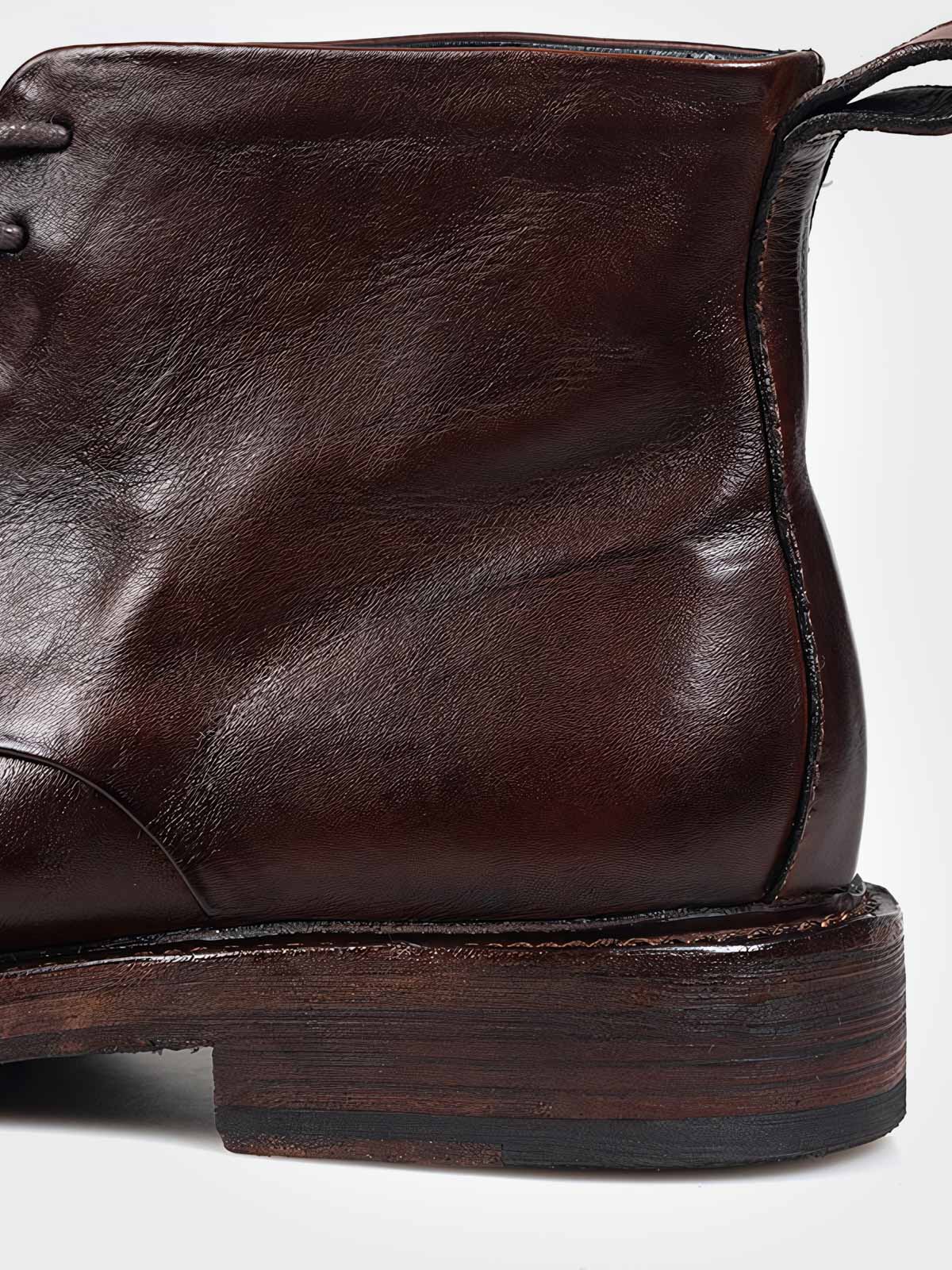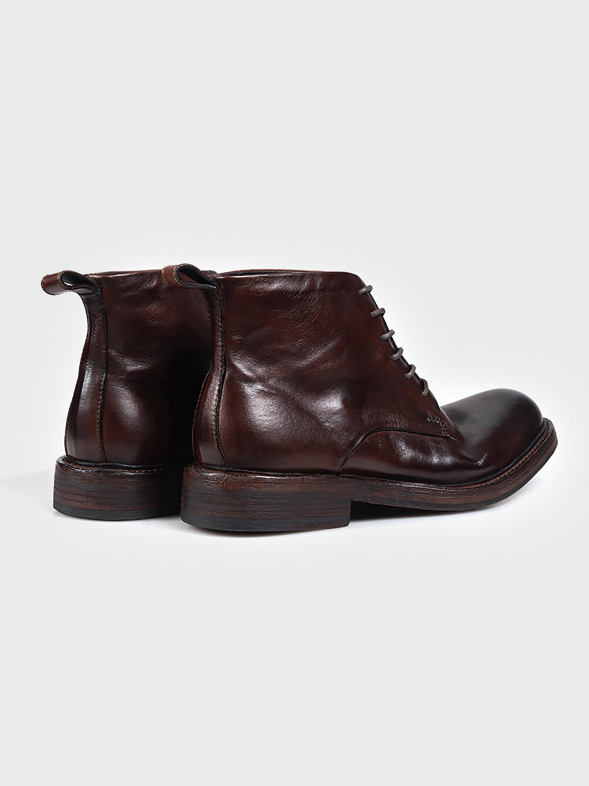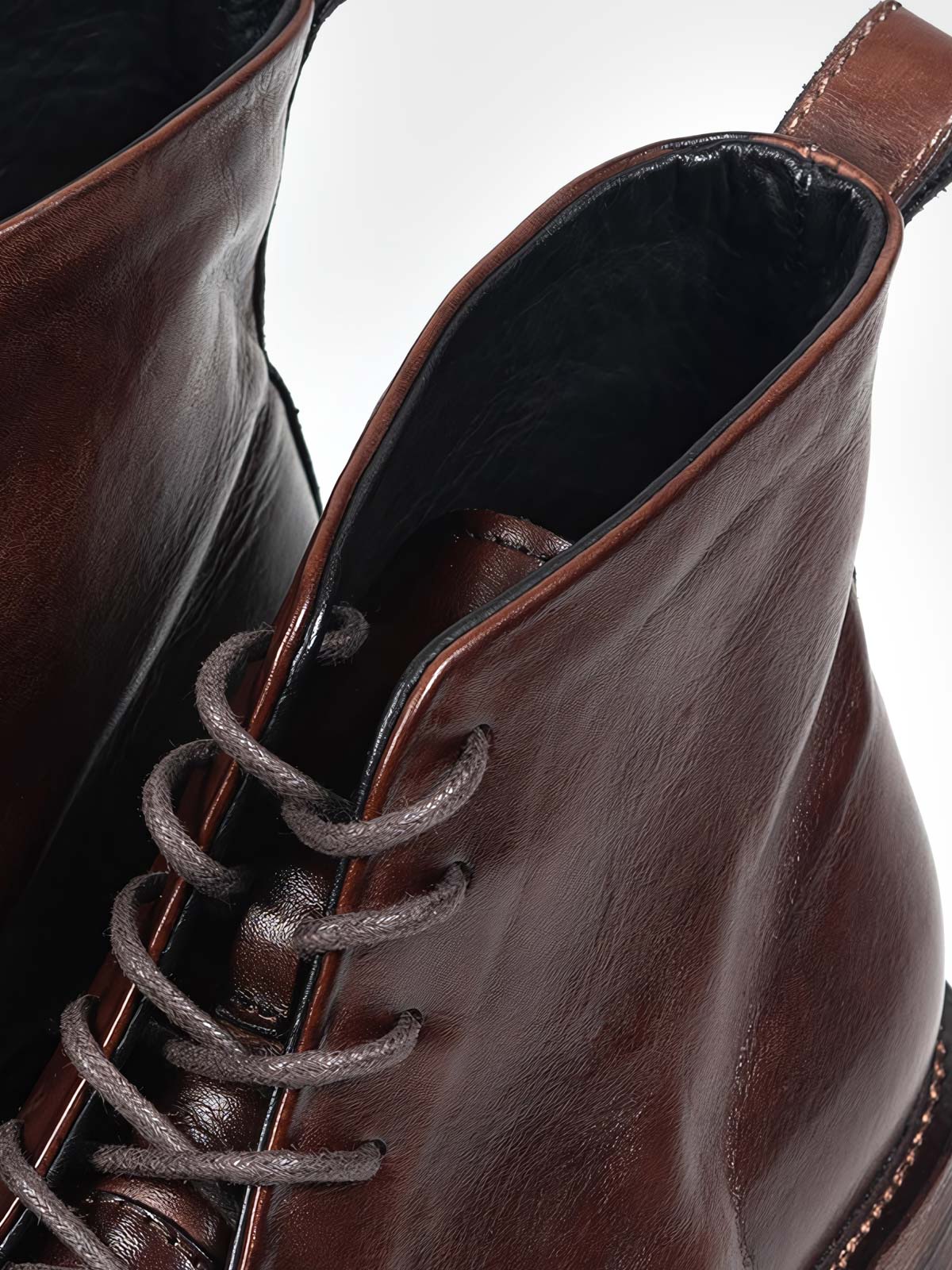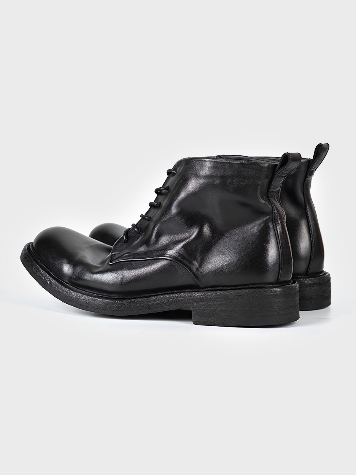 使用されるトップグレインレザーは、慎重に選択され処理され、天然革の質感と耐久性を保持しています。手作りのプロセスは、各工程の精密さを保証し、各ペアのブーツはユニークな工芸品です。ブラックレザーとクラシックなレースアップデザインは、このブーツに永遠のスタイルを与えています。