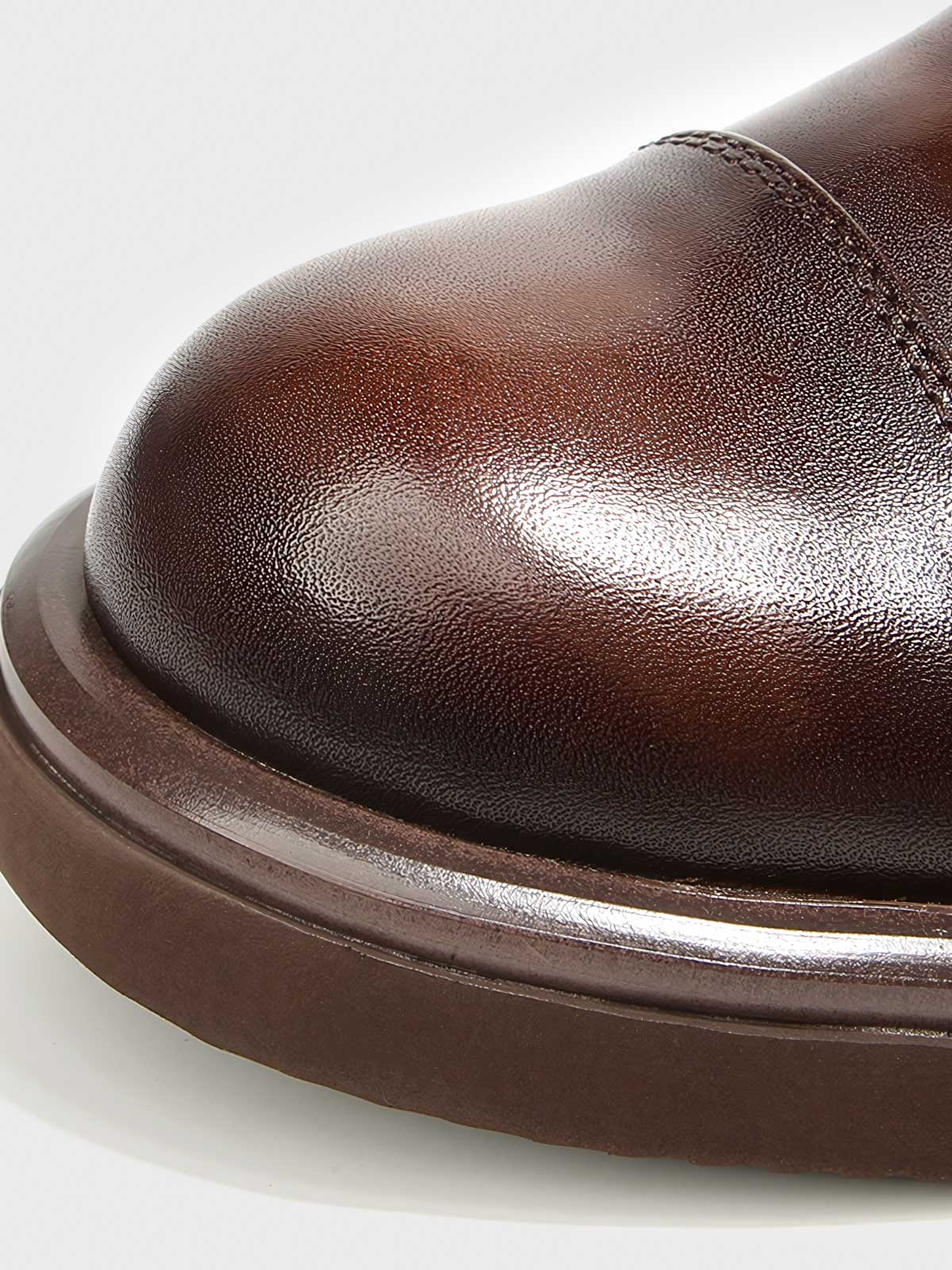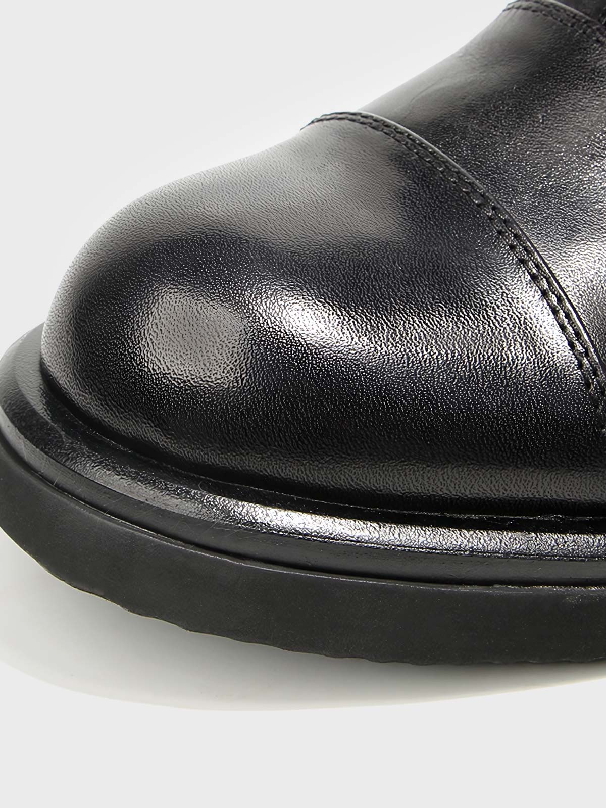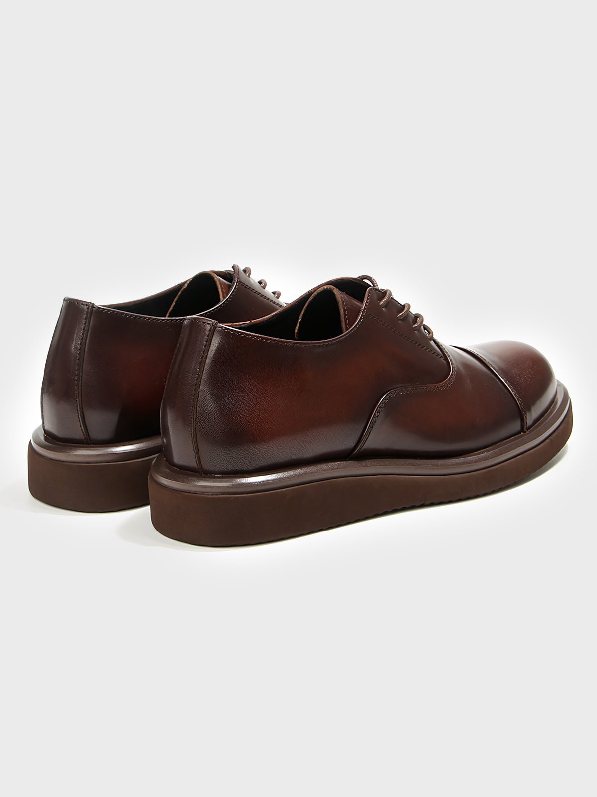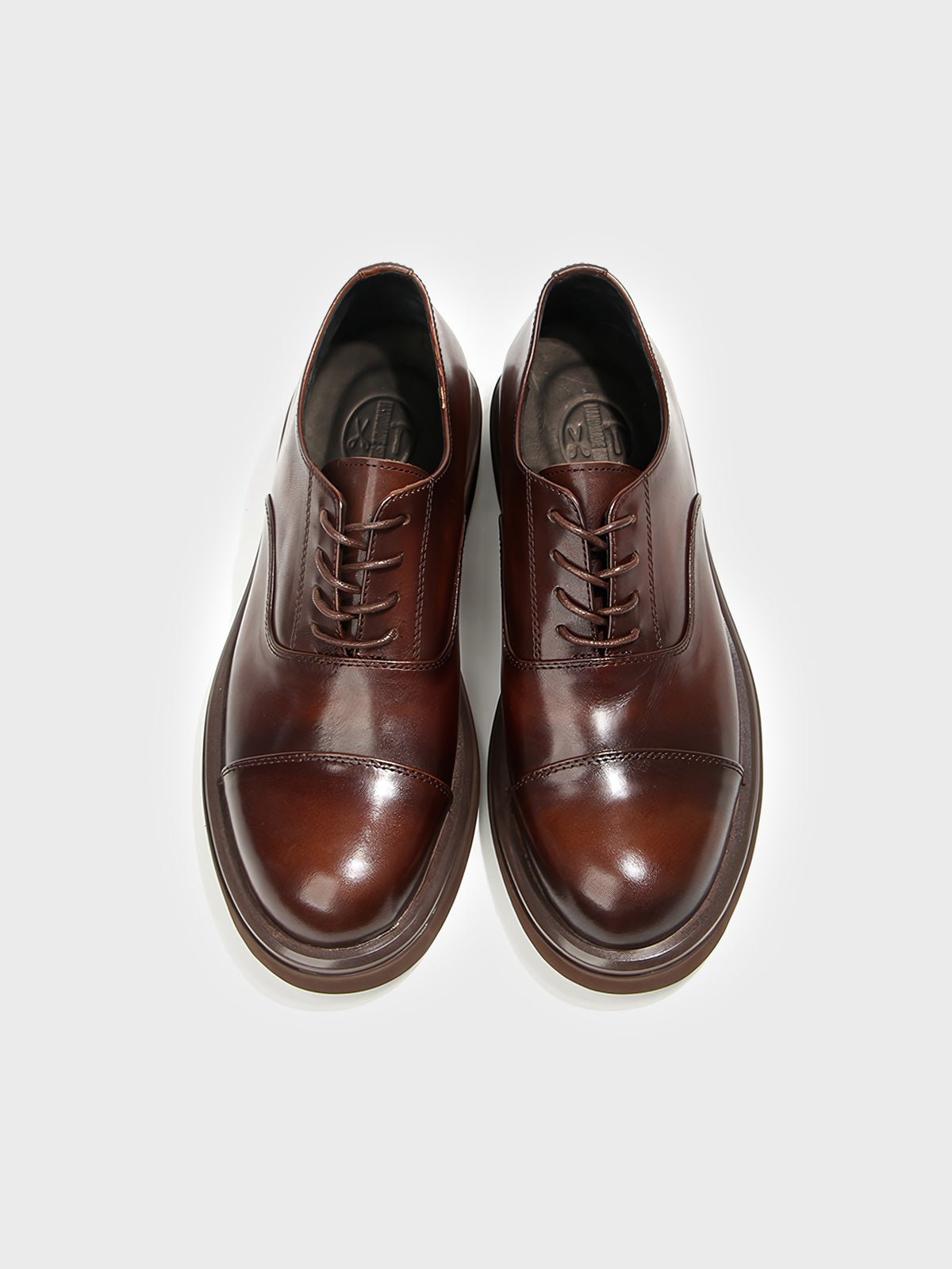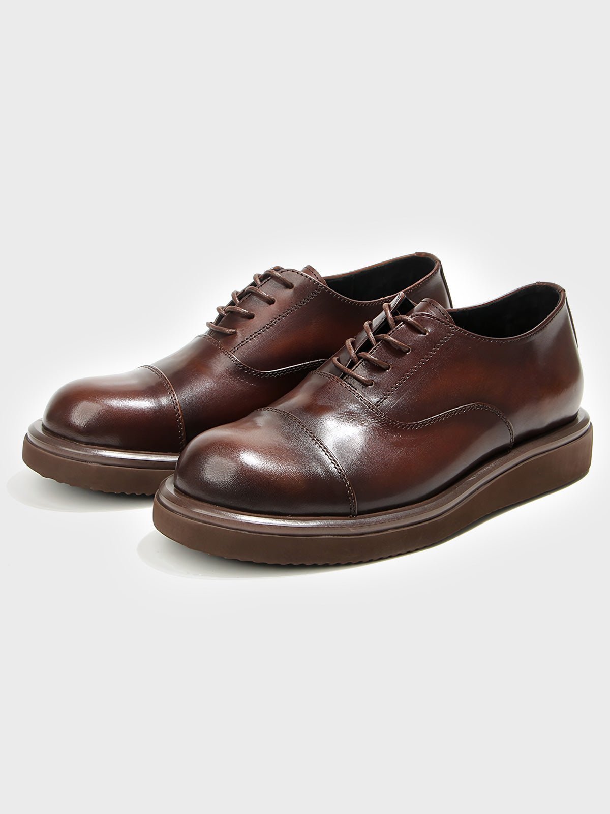 このシューズはトップグレインの牛革を使用しており、素材選択の高い基準と耐久性を反映しています。厚底デザインは着用者に良好なサポートを提供し、快適性を高めます。さらに、トップグレインの牛革は履くほどに足の形に合わせて適応し、よりパーソナライズされた快適さを提供します。