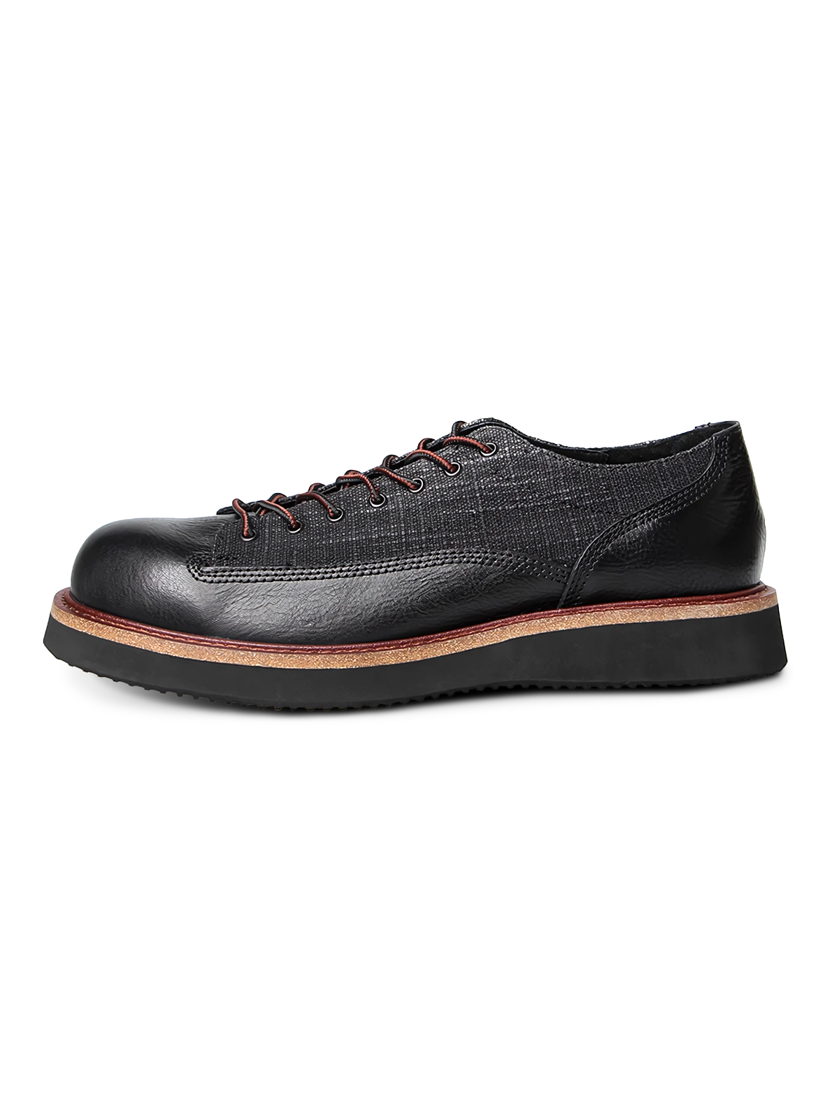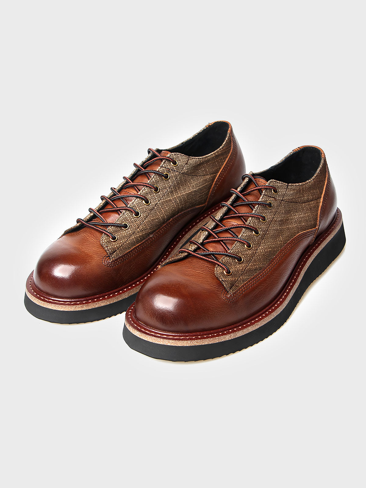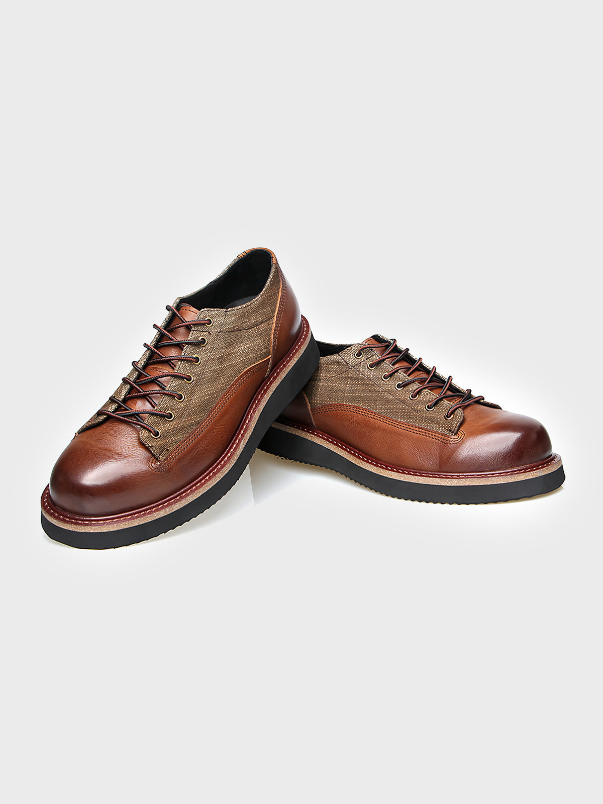 この革靴は、伝統的な手工芸と現代のデザイン要素を融合し、パッチワークとトップレイヤーカウレザーの組み合わせが、レトロとモダンの交錯を表現しています。クラシックなラウンドトゥデザインを採用し、広めのシューラストで足の空間を十分に確保しています。これにより、さまざまな足の形に適応します。