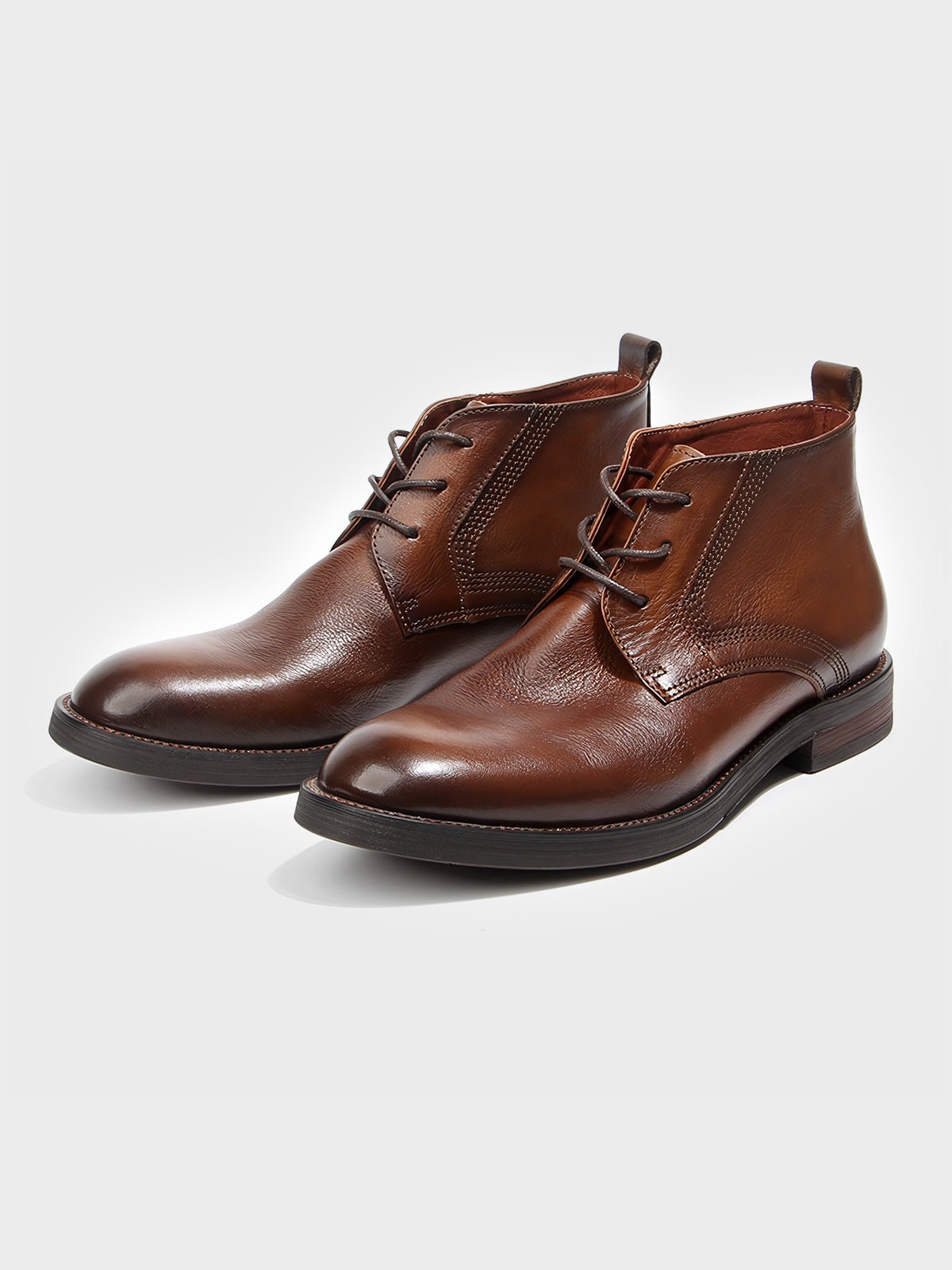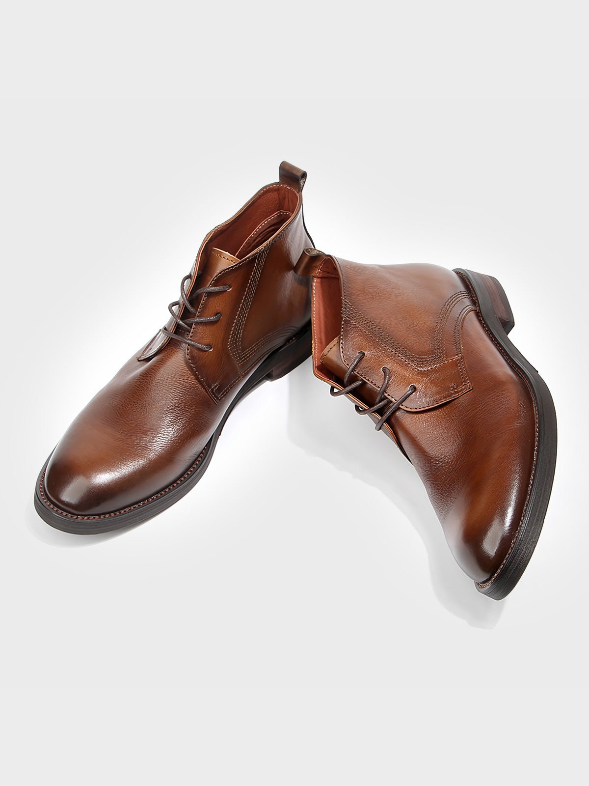 この手作り牛革ショートブーツは、20世紀初頭に流行したワークブーツに現代的な洗練さとヴィンテージ感を融合させたデザインです。耐久性に優れた労働者の靴への敬意と、現代の都市生活におけるスタイルと機能性の追求を兼ね備えています。洗練されたブラウンカラーは、様々なシーンで自然に馴染み、時代を超えた魅力と品格を放ちます。