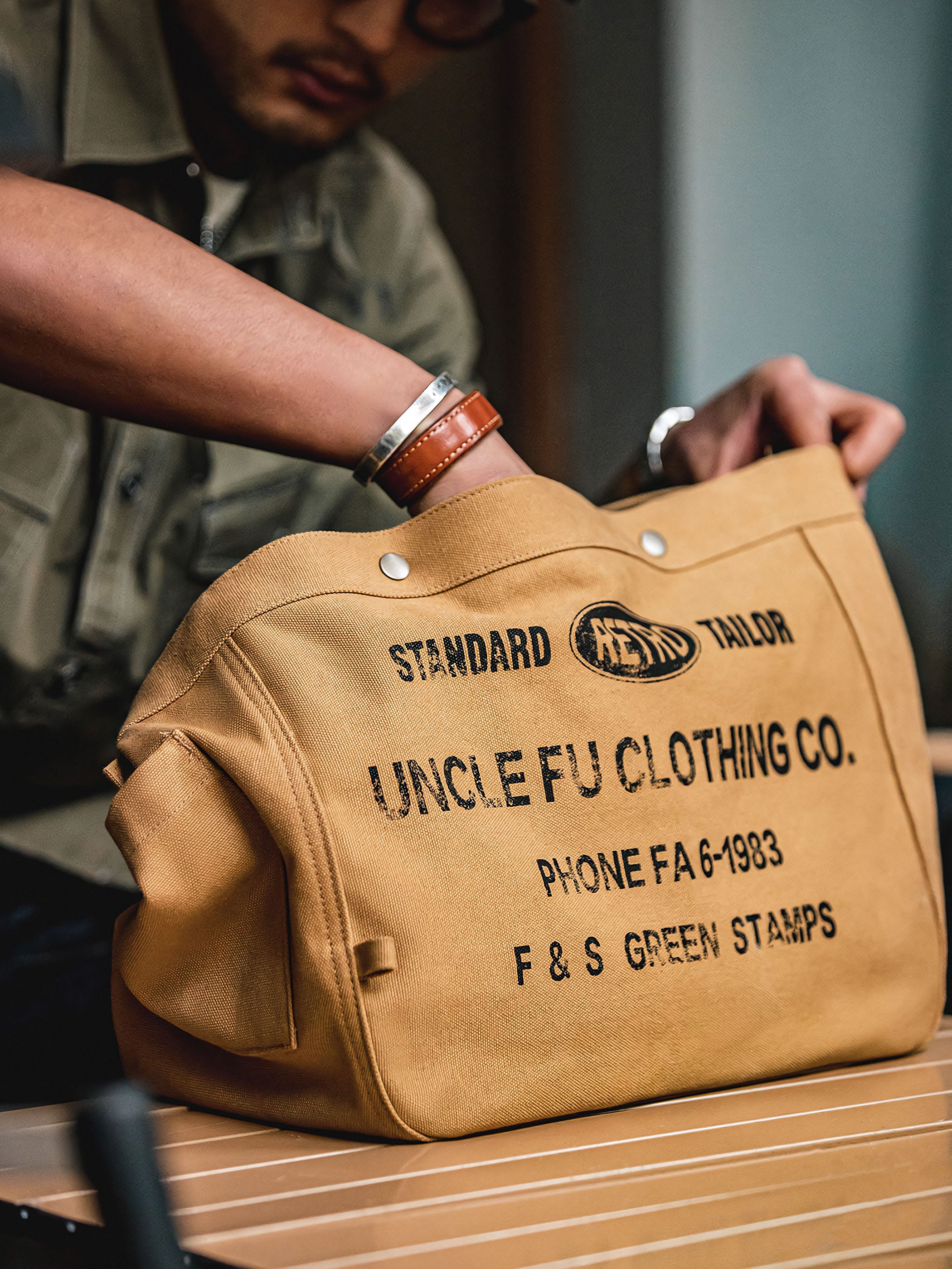 中程度の厚みでシワにくく、耐久性に優れたコットンキャンバス生地を採用しています。この素材は季節に関係なく、どんなスタイルにも簡単に合わせることができます。適度な硬さと強度を備え、長く愛用できる素材感です。