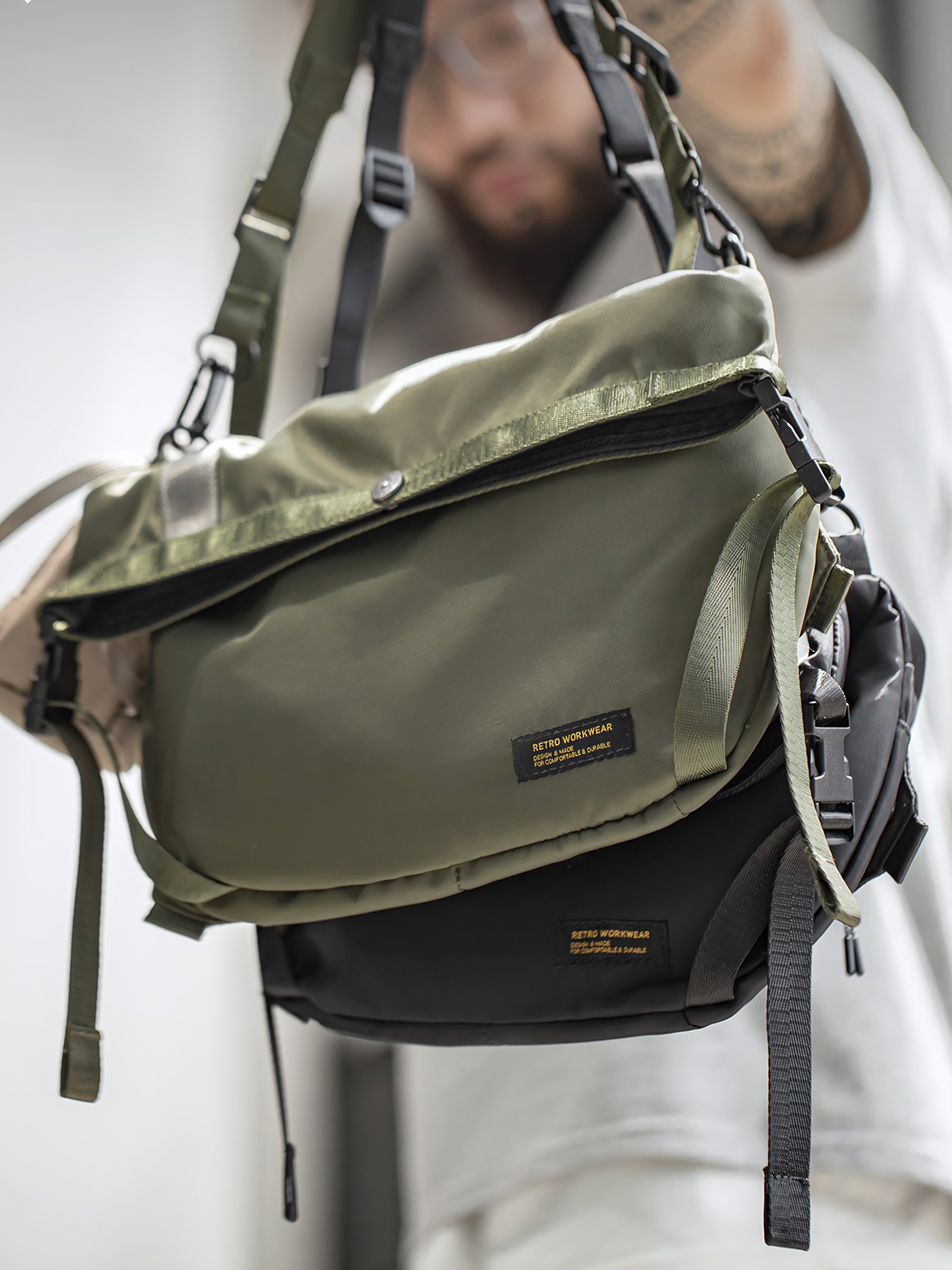 荷物が多い時には、どこまでも軽いバッグが欲しいという声に応えた、自信作のマウンテンサイクリングバッグが登場しました!豊富な収納スペースを備え、カジュアルからビジネスまで、多彩なシーンで活躍できるデザインに仕上げました!開閉部は便利なスナップボタンを採用し、簡単に開閉が可能です。