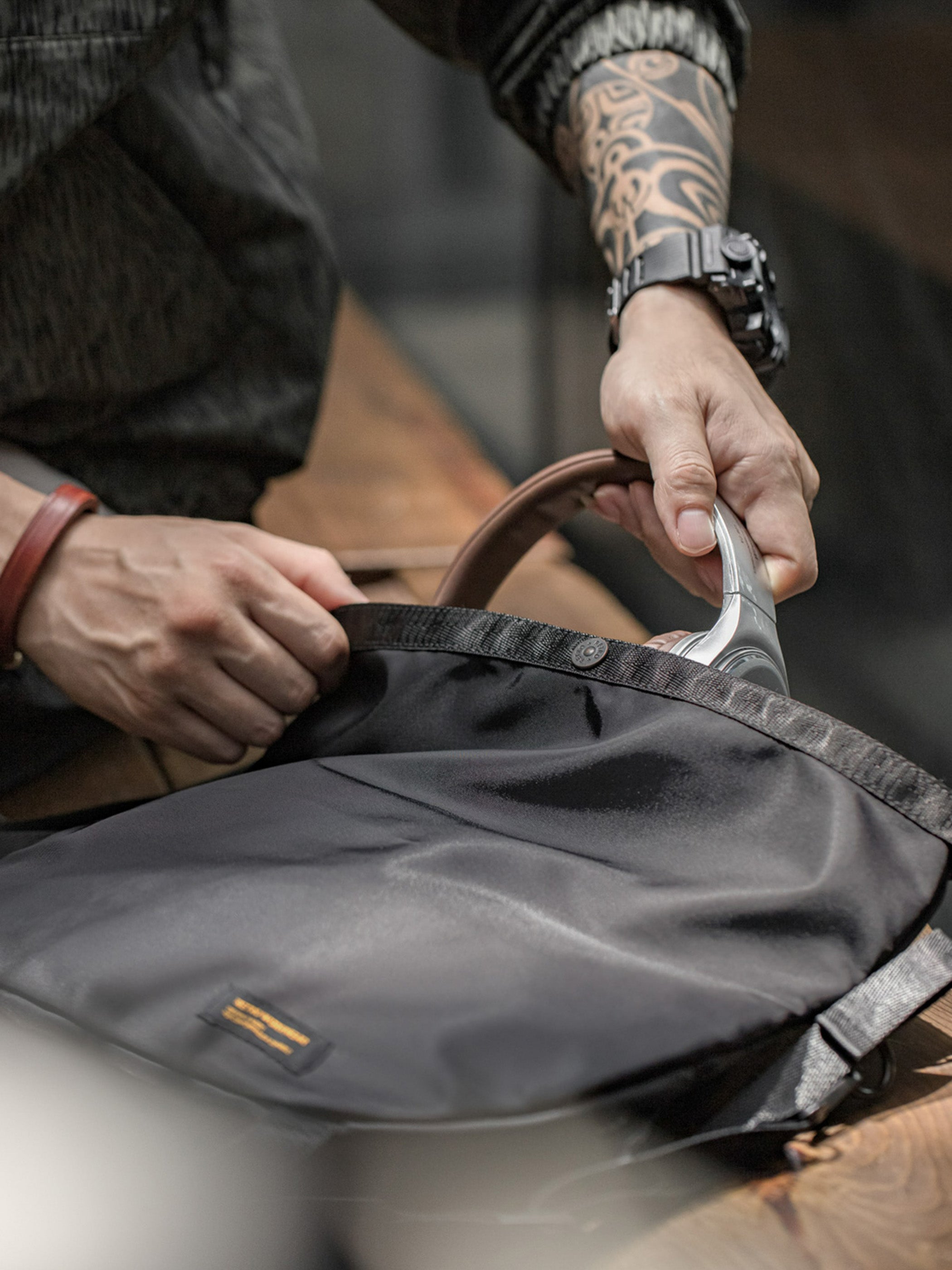 高品質のポリエステル素材を使用し、耐久性はもちろん、摩耗や耐熱性などあらゆる面で基準を満たしています。ラフな印象でガシガシと使えるデザインでありながら、ポリエステル素材の防水性も高いため、わずかな雨でも心配ありません。