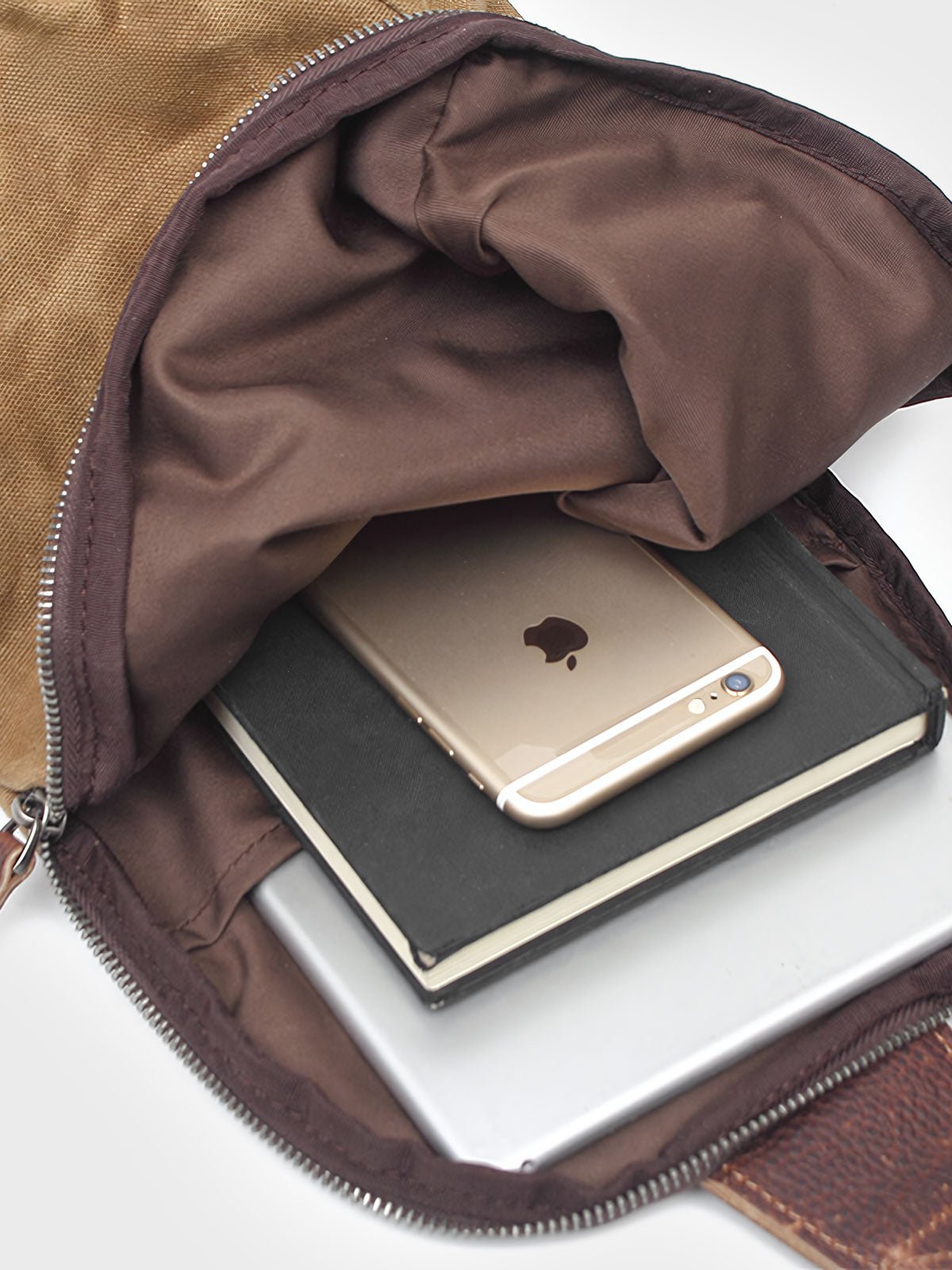 このショルダーバッグは、ヴィンテージミリタリーグッズのエッセンスを取り入れ、現代のアーバンアウトドアライフスタイルと融合させたデザインです。キャンバスとレザーのステッチは、歴史の積層を表現するだけでなく、初期の探検家や軍用バックパックへの敬意を表しています。このバッグは、人間工学と快適性に重点を置いて設計されており、シングルショルダーのデザインにより、重量を適切に分散させ、肩への負担を軽減します。