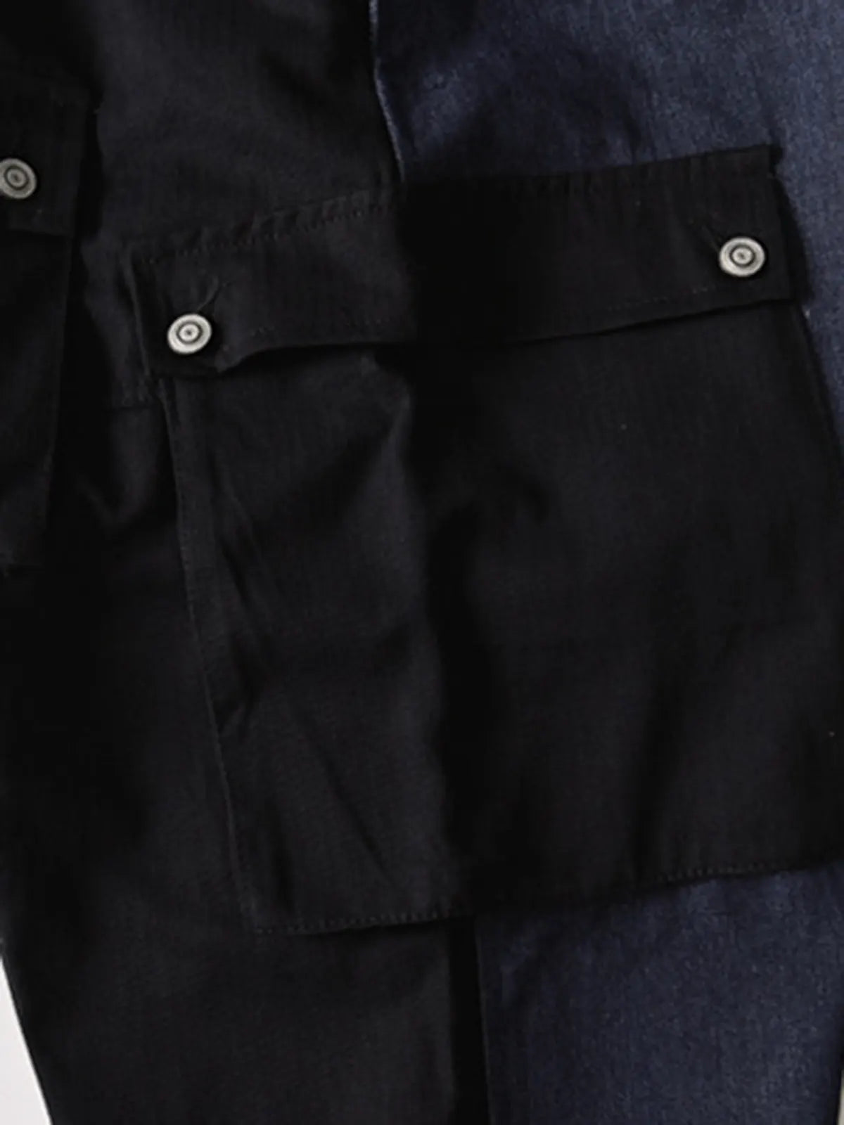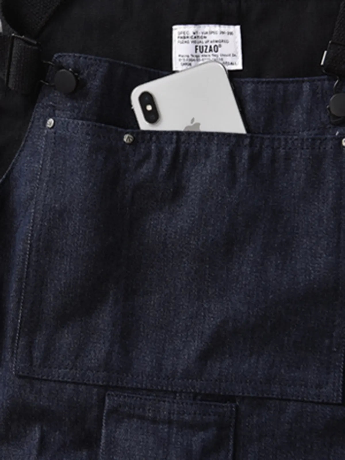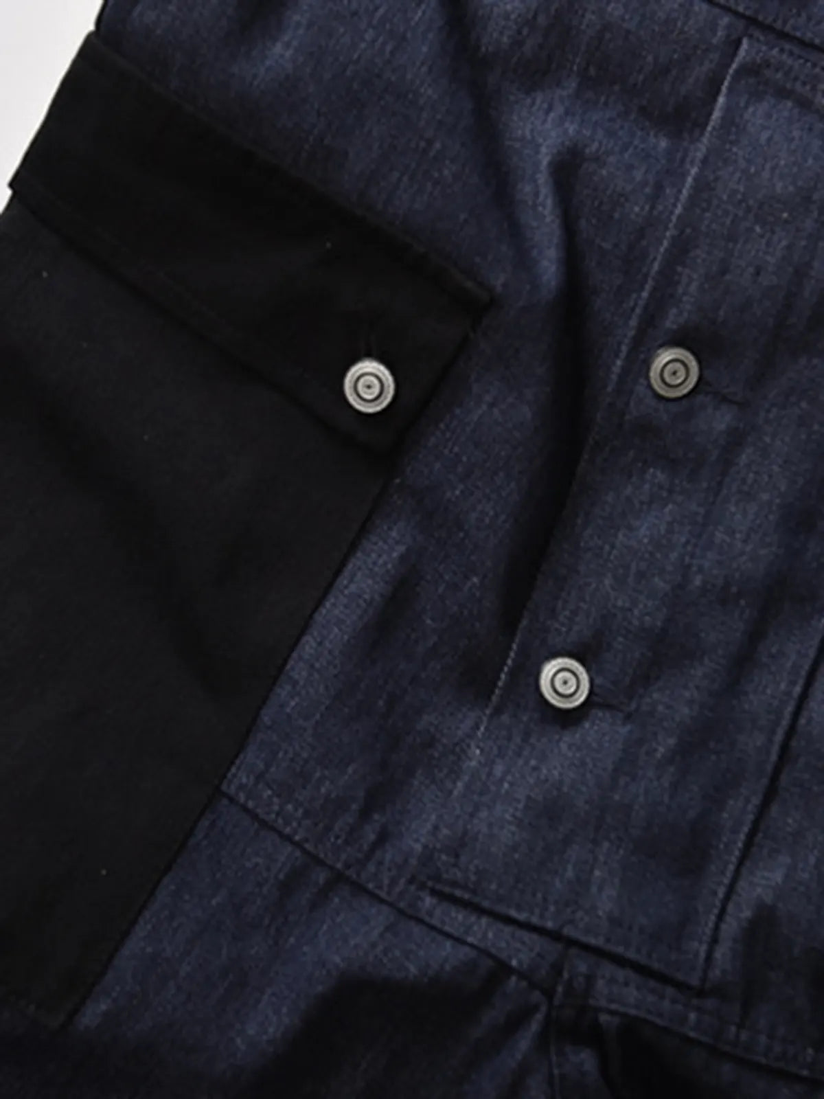 多機能ポケットと配色切り替えが映える、ゆったりシルエットのコットンオーバーオール。