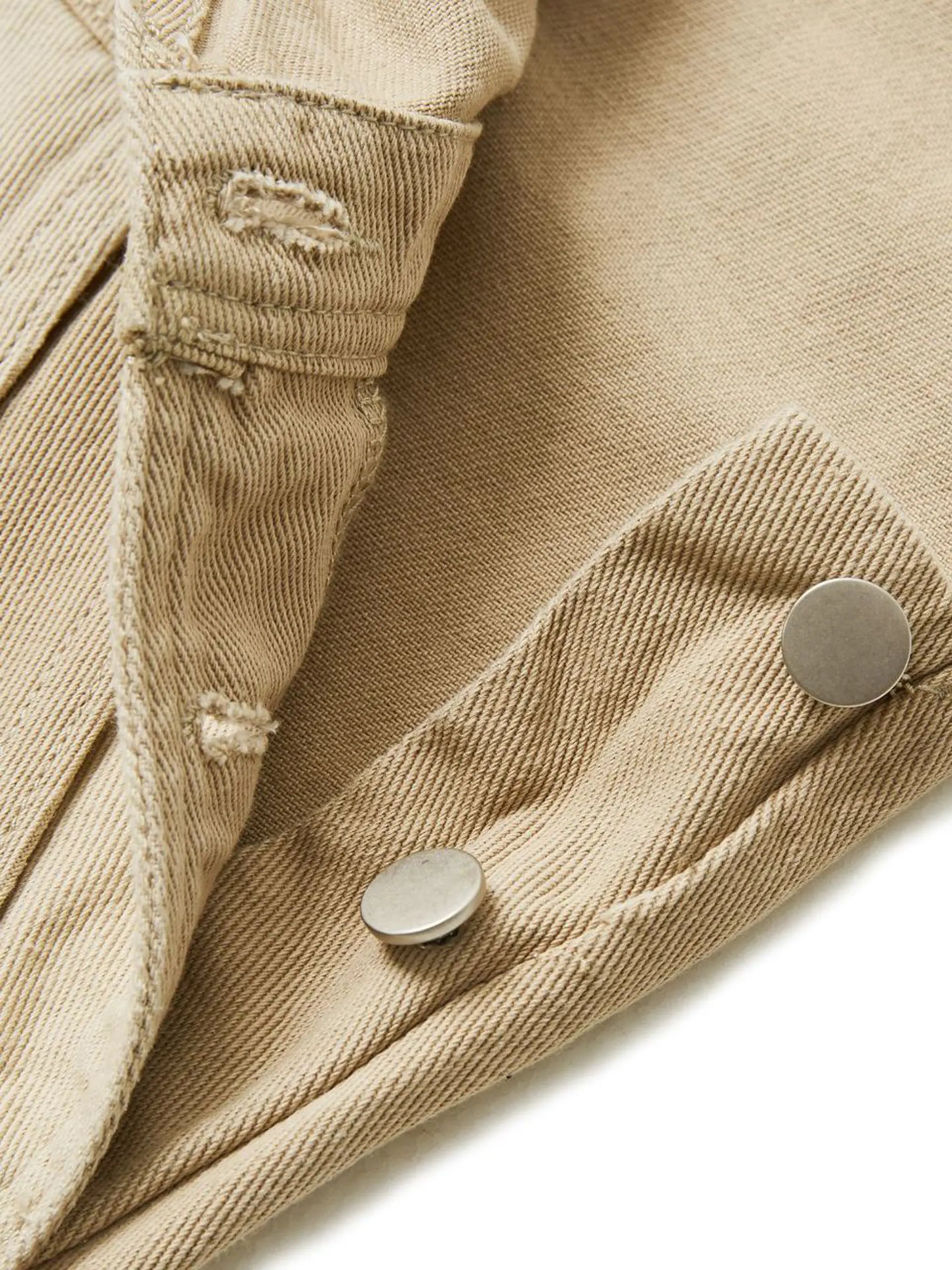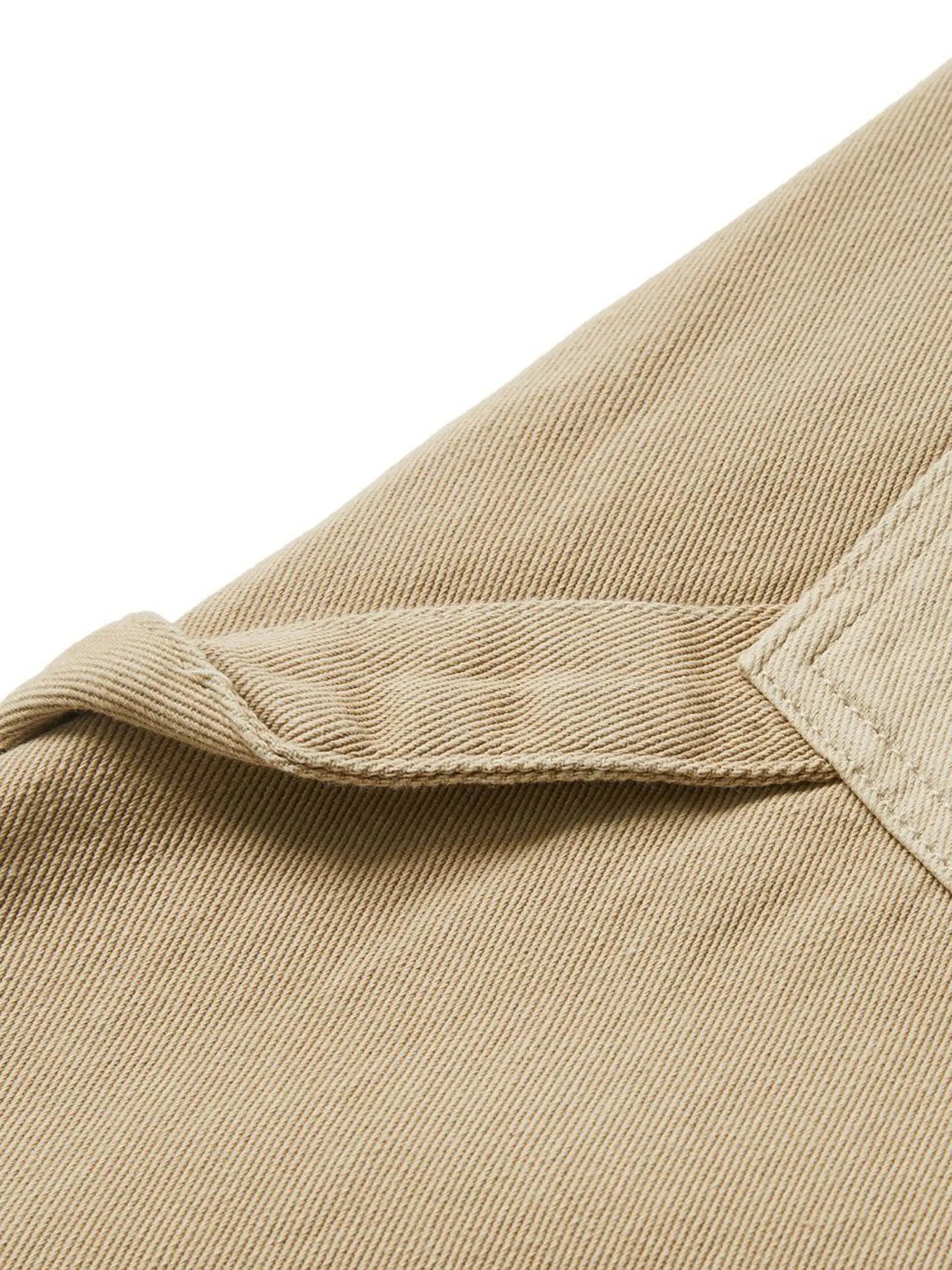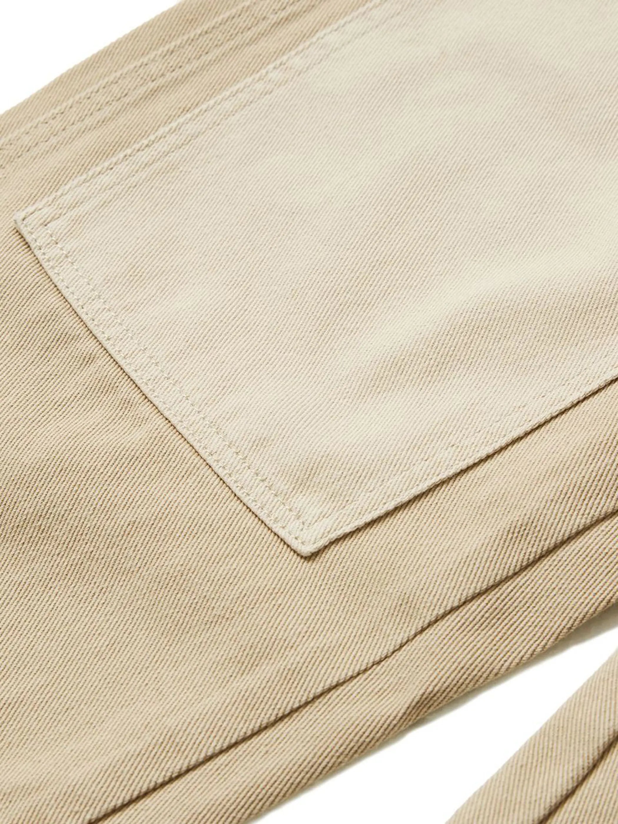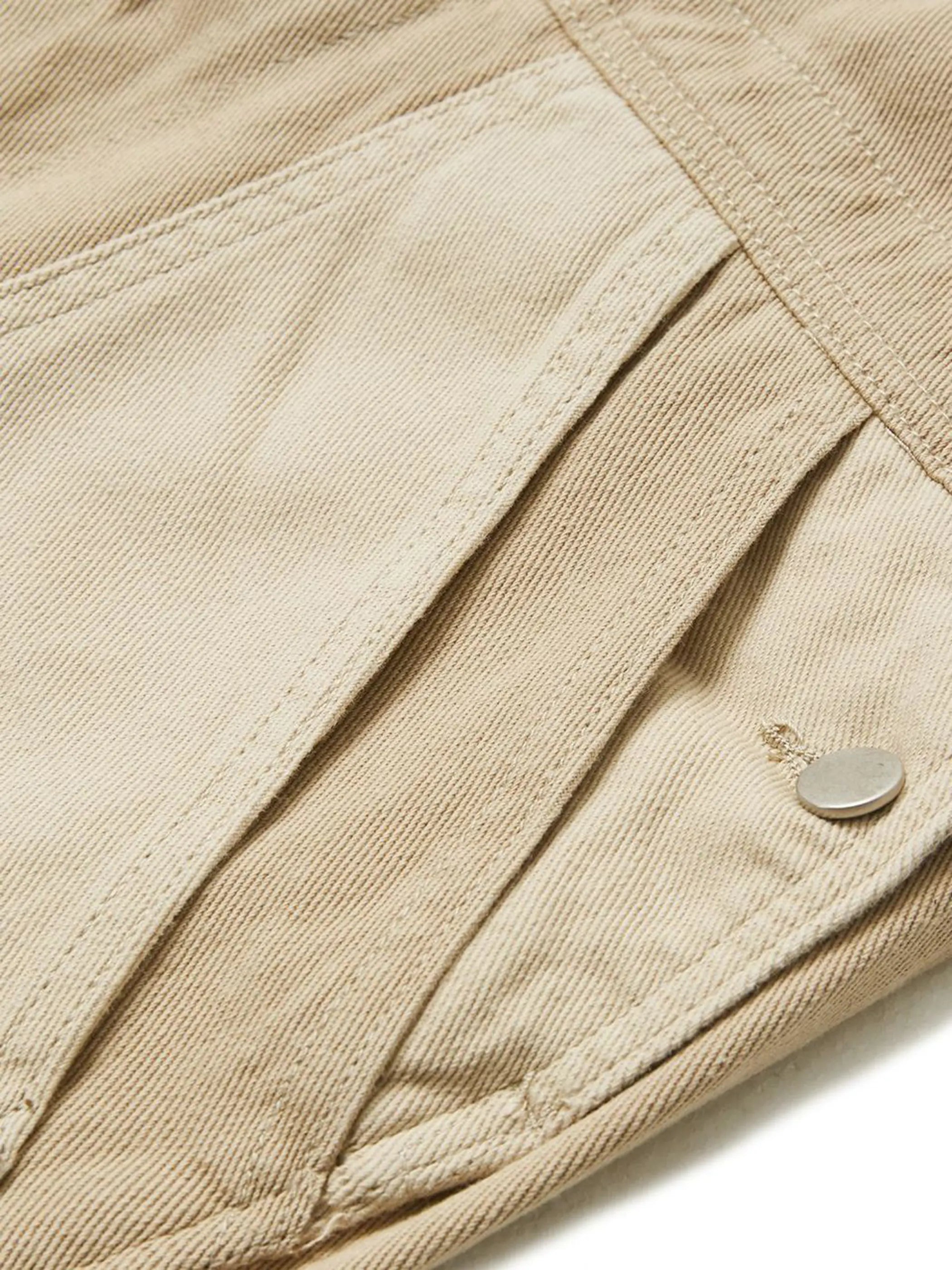 異なるコットン生地を組み合わせたパッチワークポケットが視線を集めるワーク感満載のデザインで、丈夫なヘビーツイルを採用して経年変化も楽しめます。胸&腰の大小ポケットは工具からスマホまで余裕で収納可能で、サイドのスナップボタン開閉で着脱もスムーズ。ストレートレッグが脚のラインを拾わず、ゆったりとしたシルエットで動きやすさとスタイルを両立。キャンプやガーデニング、ストリートスタイルまで幅広く対応します。