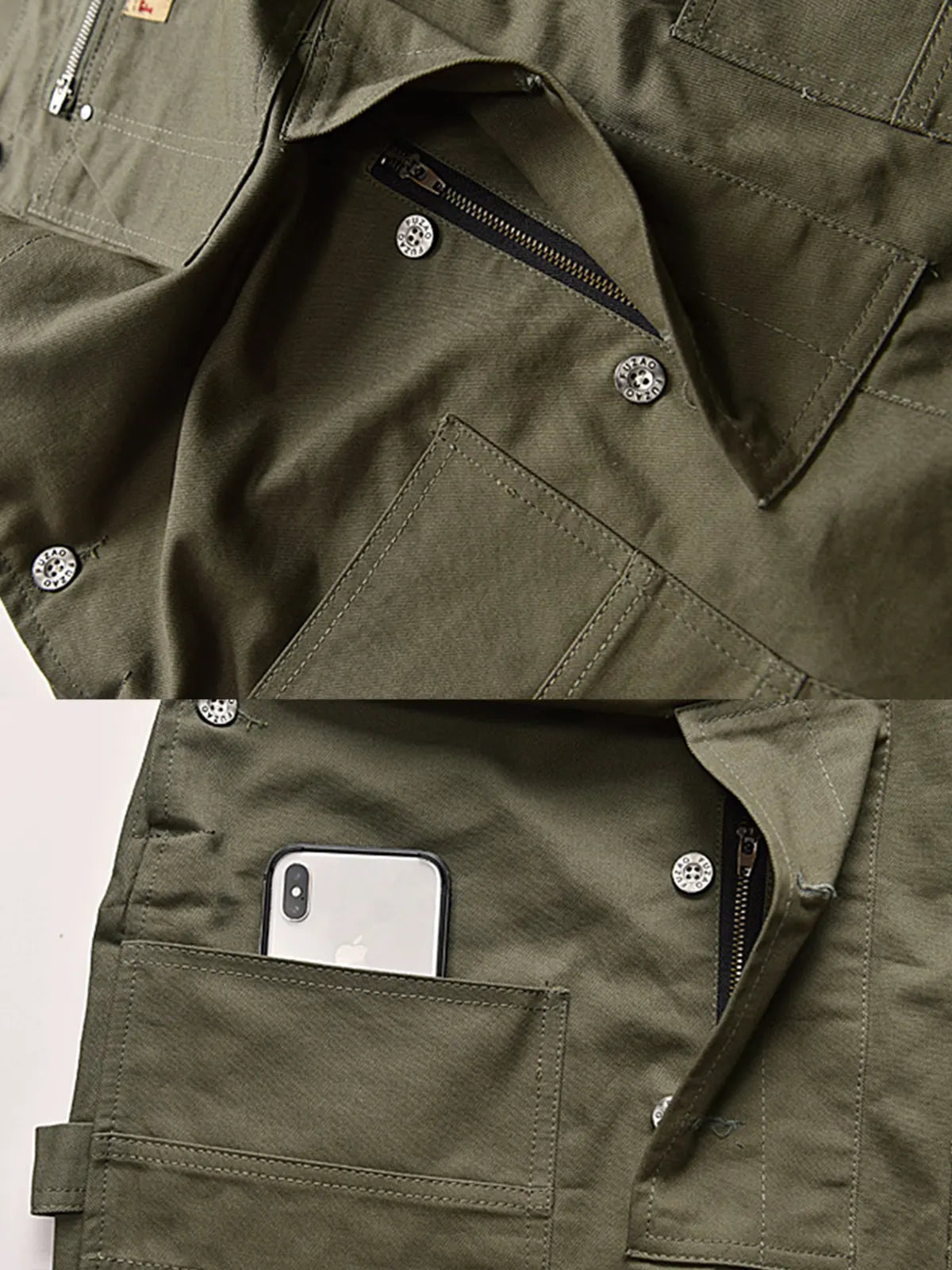 アメリカンワークウェアの伝統を受け継ぐ、多機能ポケット付きのコットンサロペット。