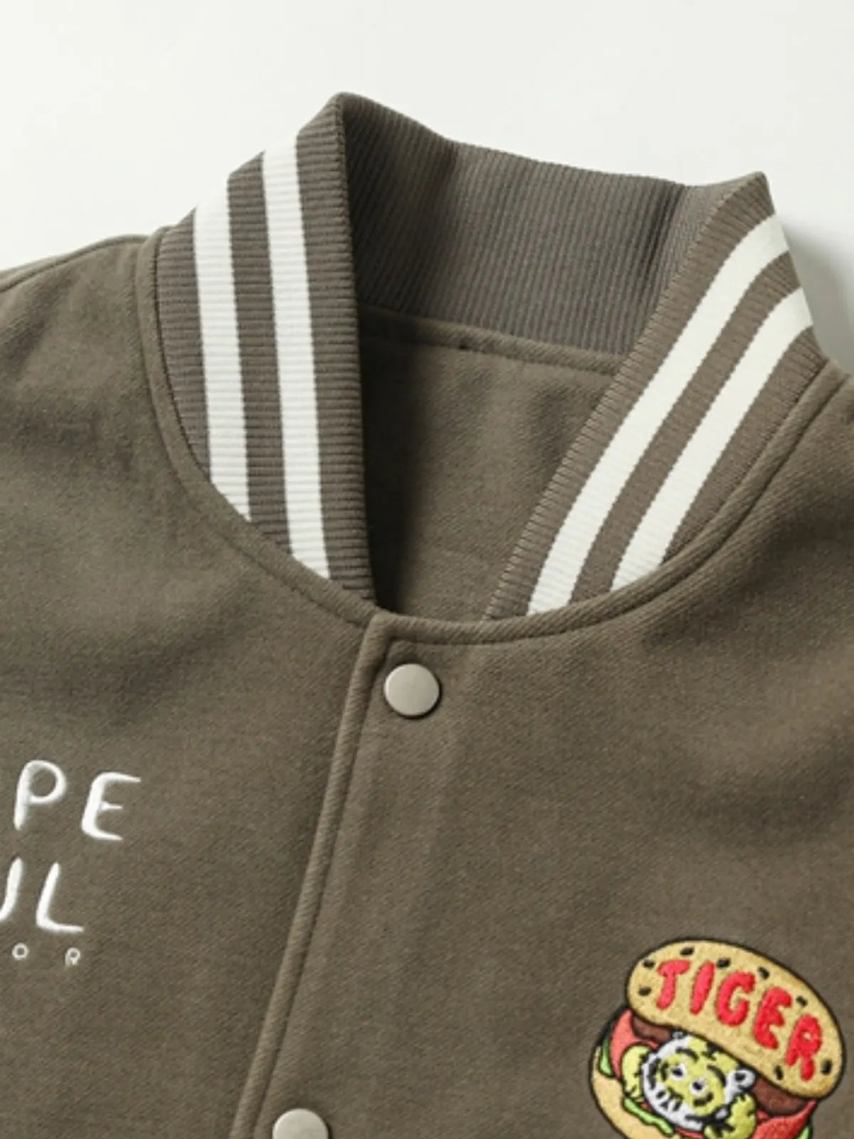 このスタジャンは100%コットン生地を使用し、復刻版の野球ジャケットのスタイルを再現するために、ビンテージカラーのパッチワークとゆったりとしたシルエットを採用しています。背面と胸元の毛糸刺繍のデザインが全体的に立体的で目を引く視覚効果を与えます。リブ編みの袖口と裾は、暖かさと型崩れしないデザインを提供し、内部は柔らかく快適です。デニムやカーゴパンツと組み合わせることで、個性的なストリートスタイルを引き立てます。