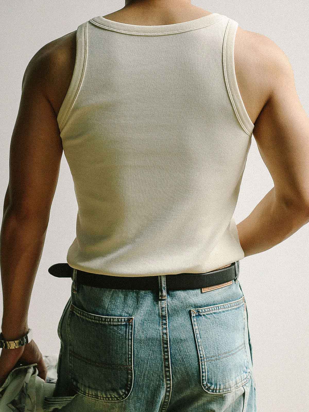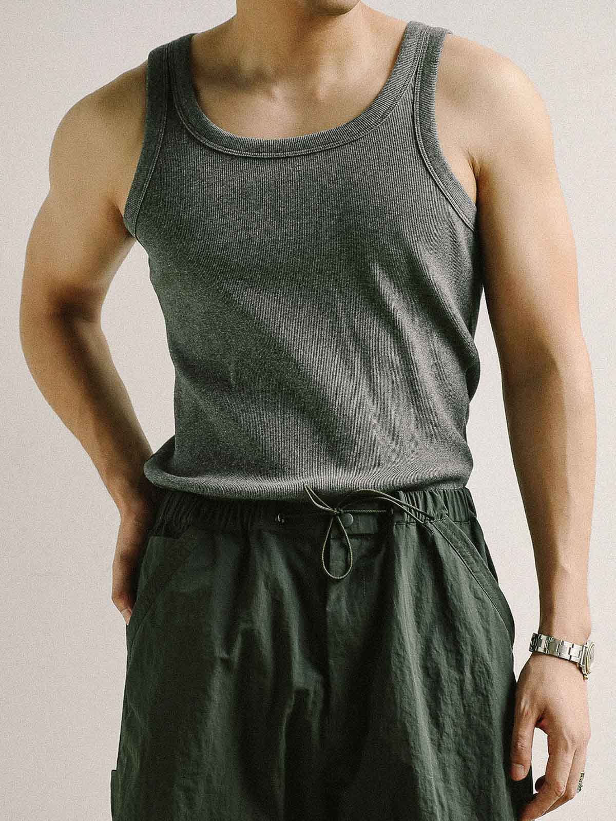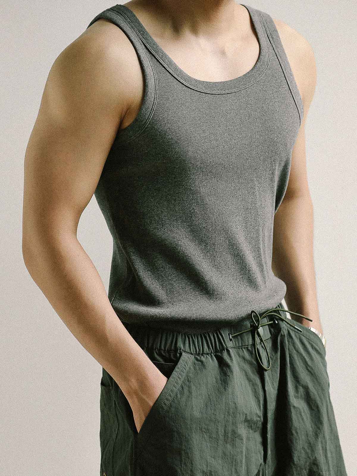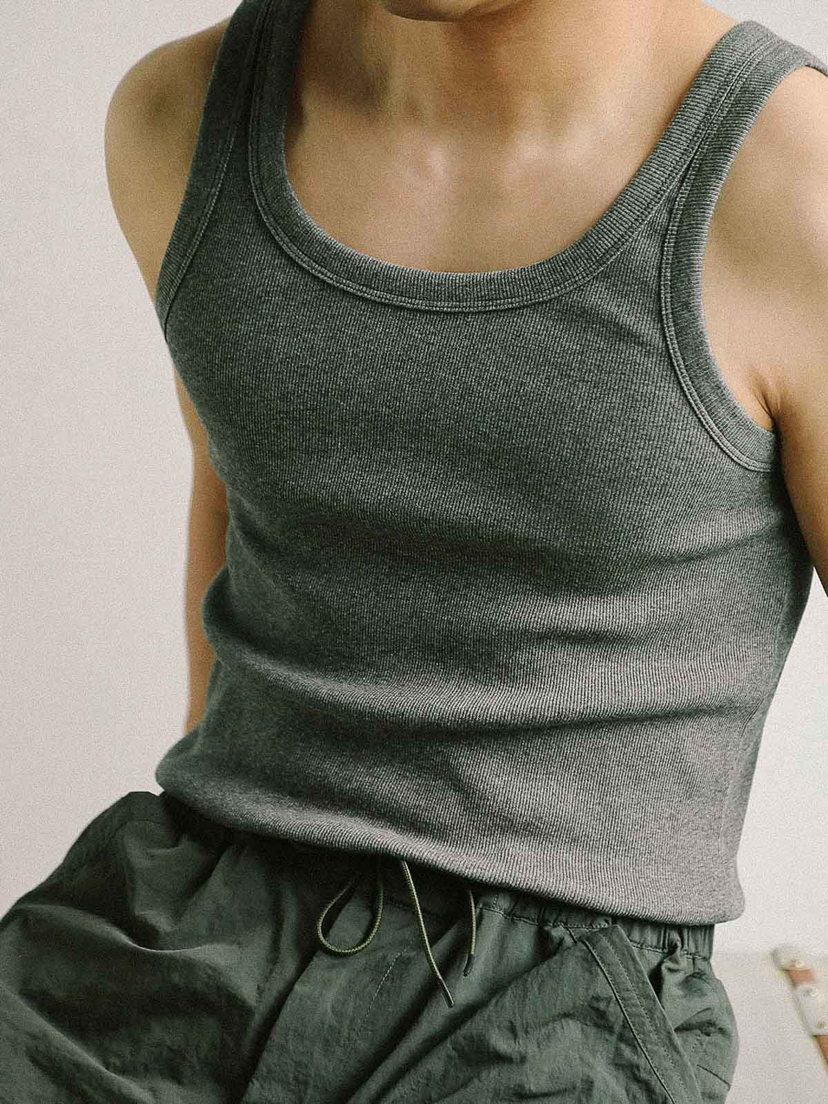 アイスシルク長繊維を採用し、涼感と高い伸縮性を兼ね備えたスリムフィットのタンクトップ。夏のフィットネスや日常のコーディネートに最適。