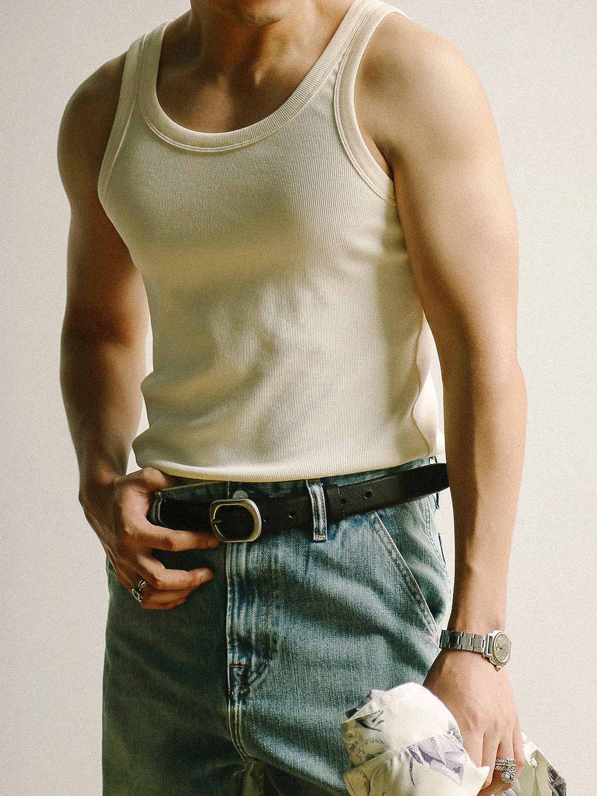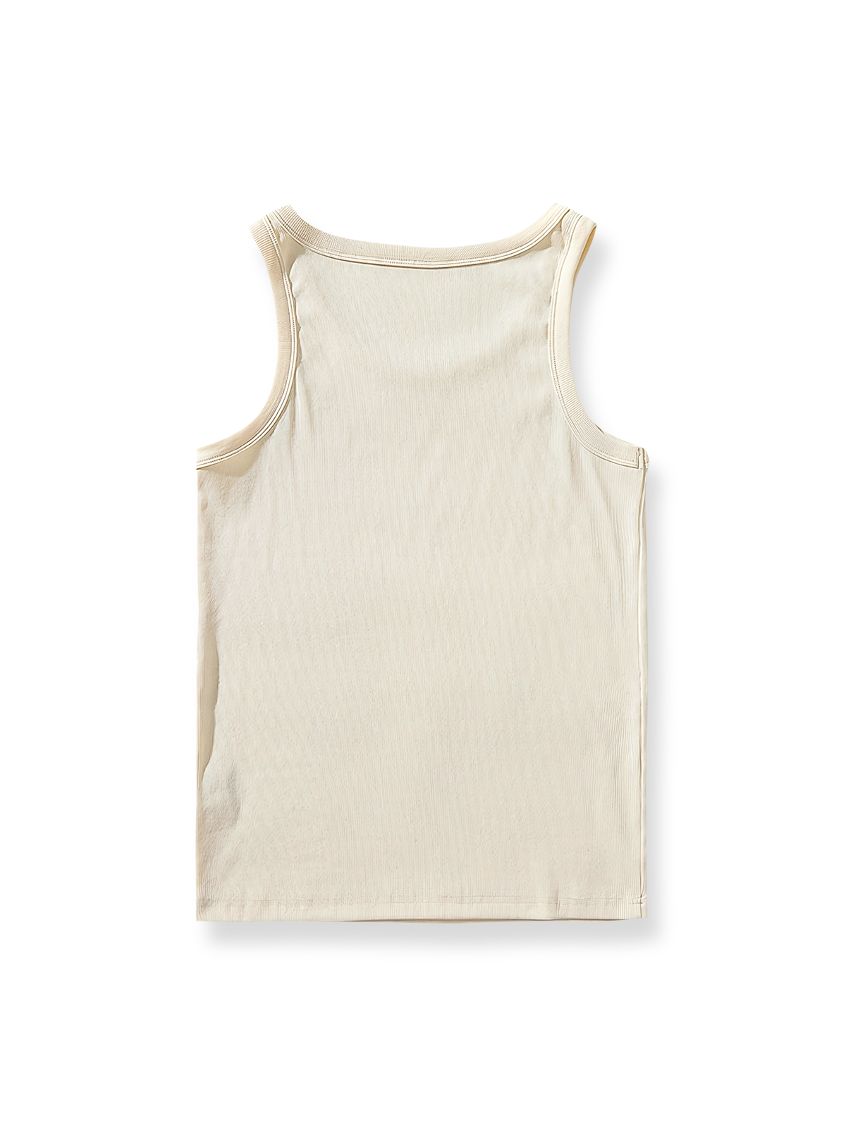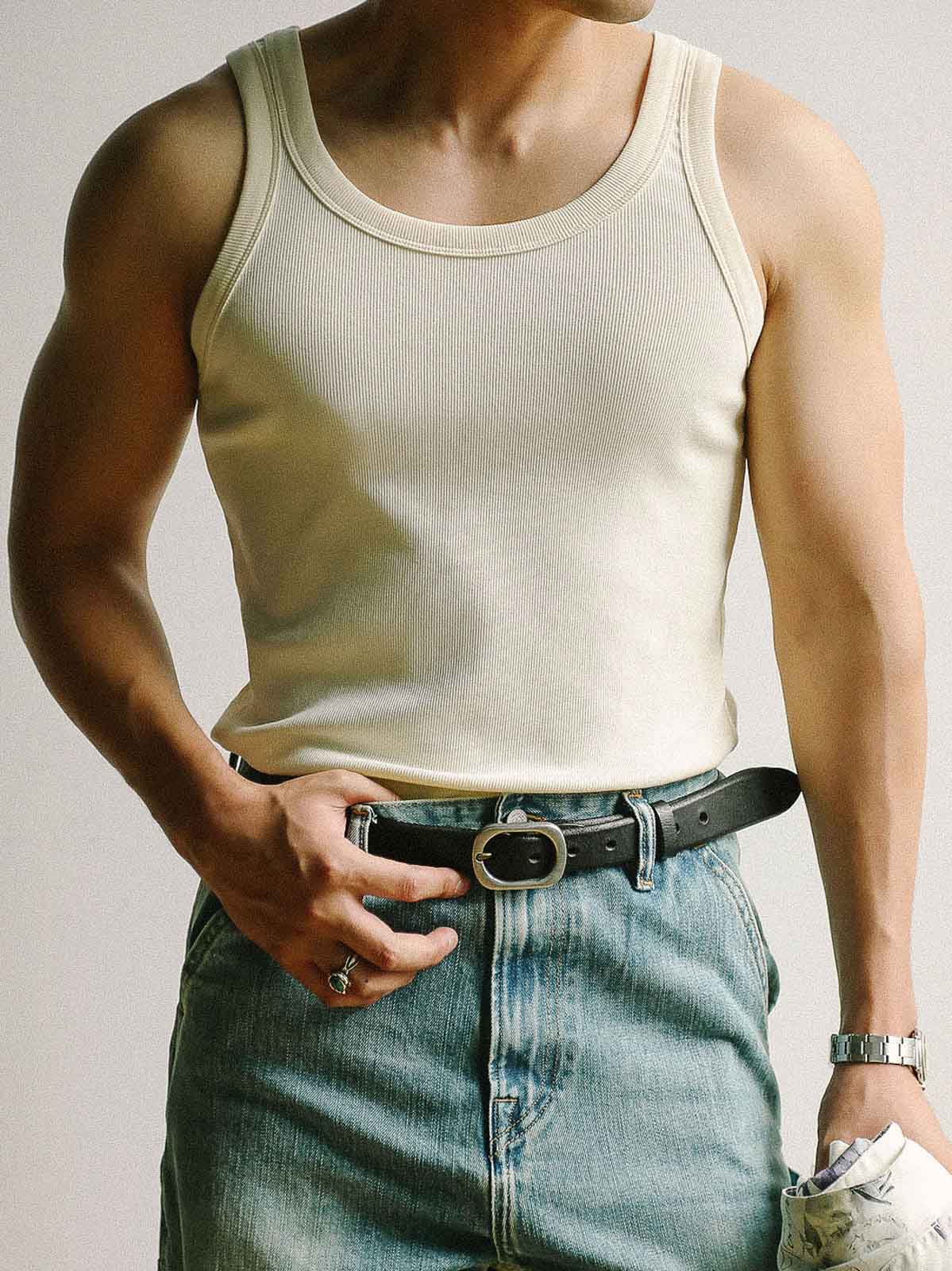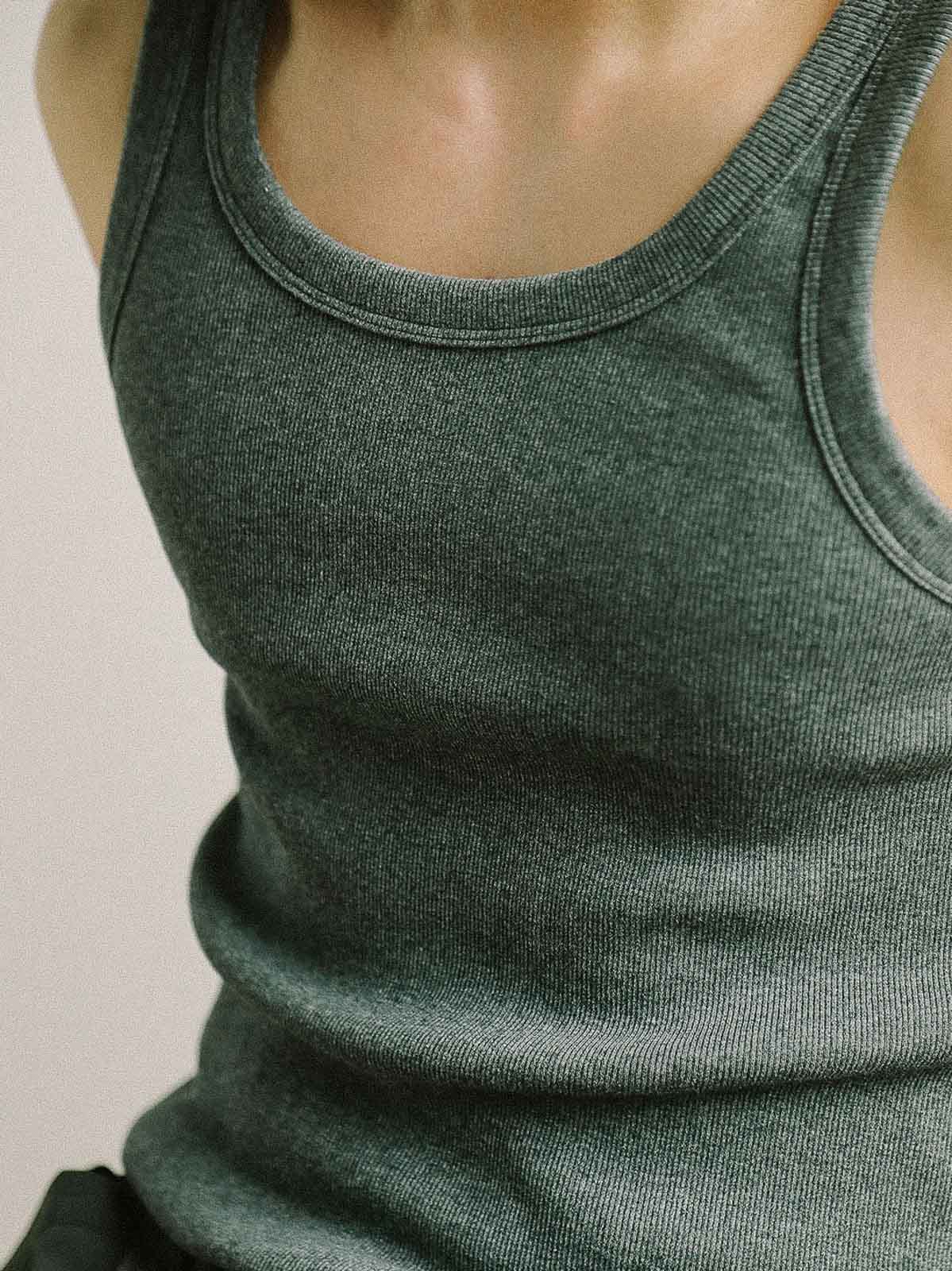 アイスシルク長繊維を採用し、涼感と高い伸縮性を兼ね備えたスリムフィットのタンクトップ。夏のフィットネスや日常のコーディネートに最適。