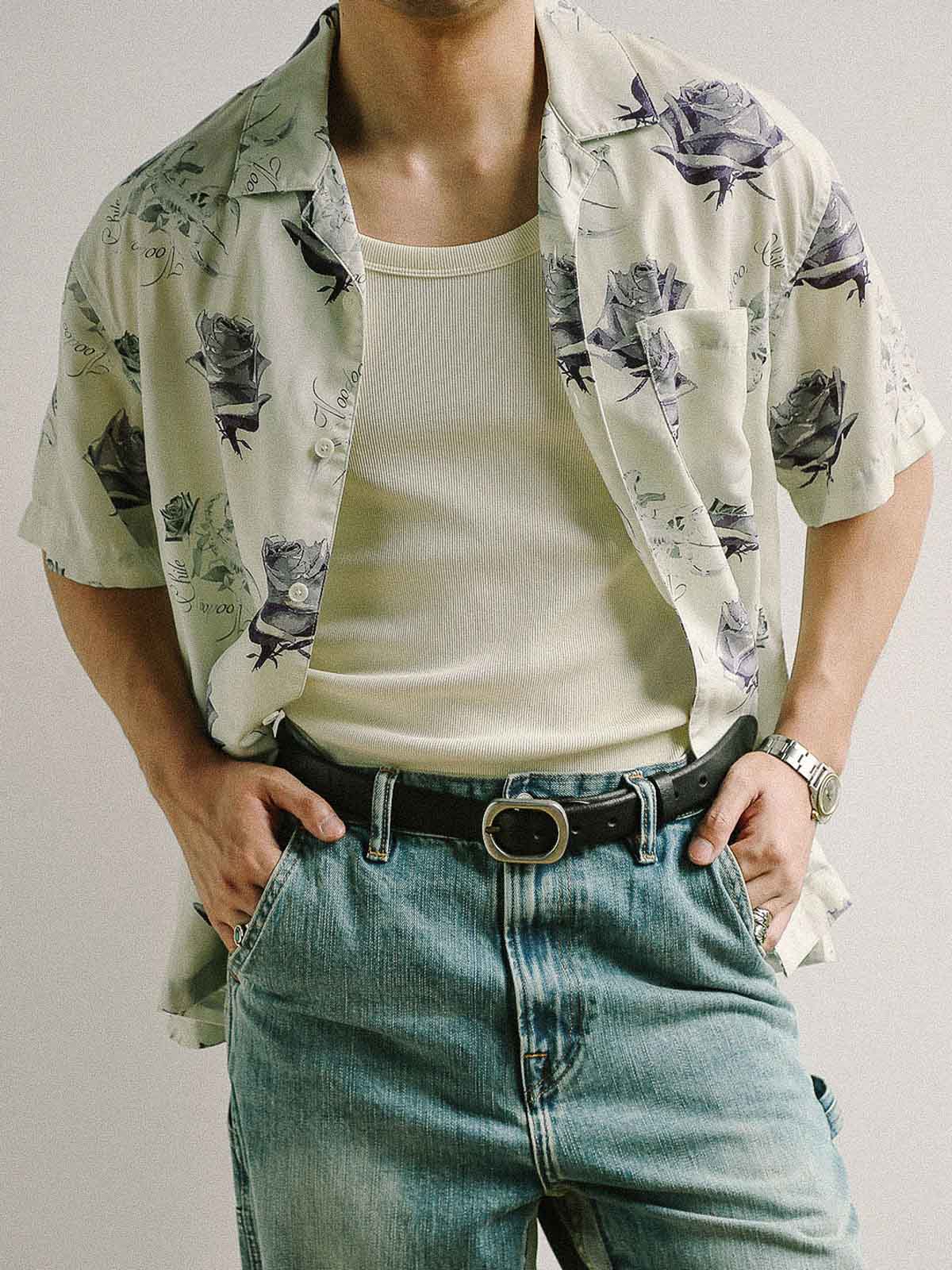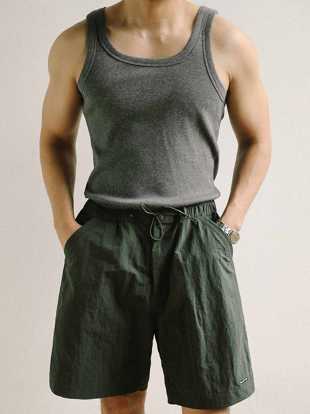 このタンクトップは220gのアイスシルク長繊維素材を使用し、快適で通気性が抜群です。ポリエステルとスパンデックスの混紡で、涼感と高い伸縮性を提供し、夏にぴったりの一枚です。長繊維素材は滑らかな手触りと涼しい感触を持ち、フィット感のあるデザインが肩や胸のラインを際立たせます。リブ部分にはダブルステッチを施し、耐久性を高めています。ナチュラルホワイトとグレーの2色展開で、単独でもALOHAシャツとのレイヤードでもスタイリッシュに着こなせます。