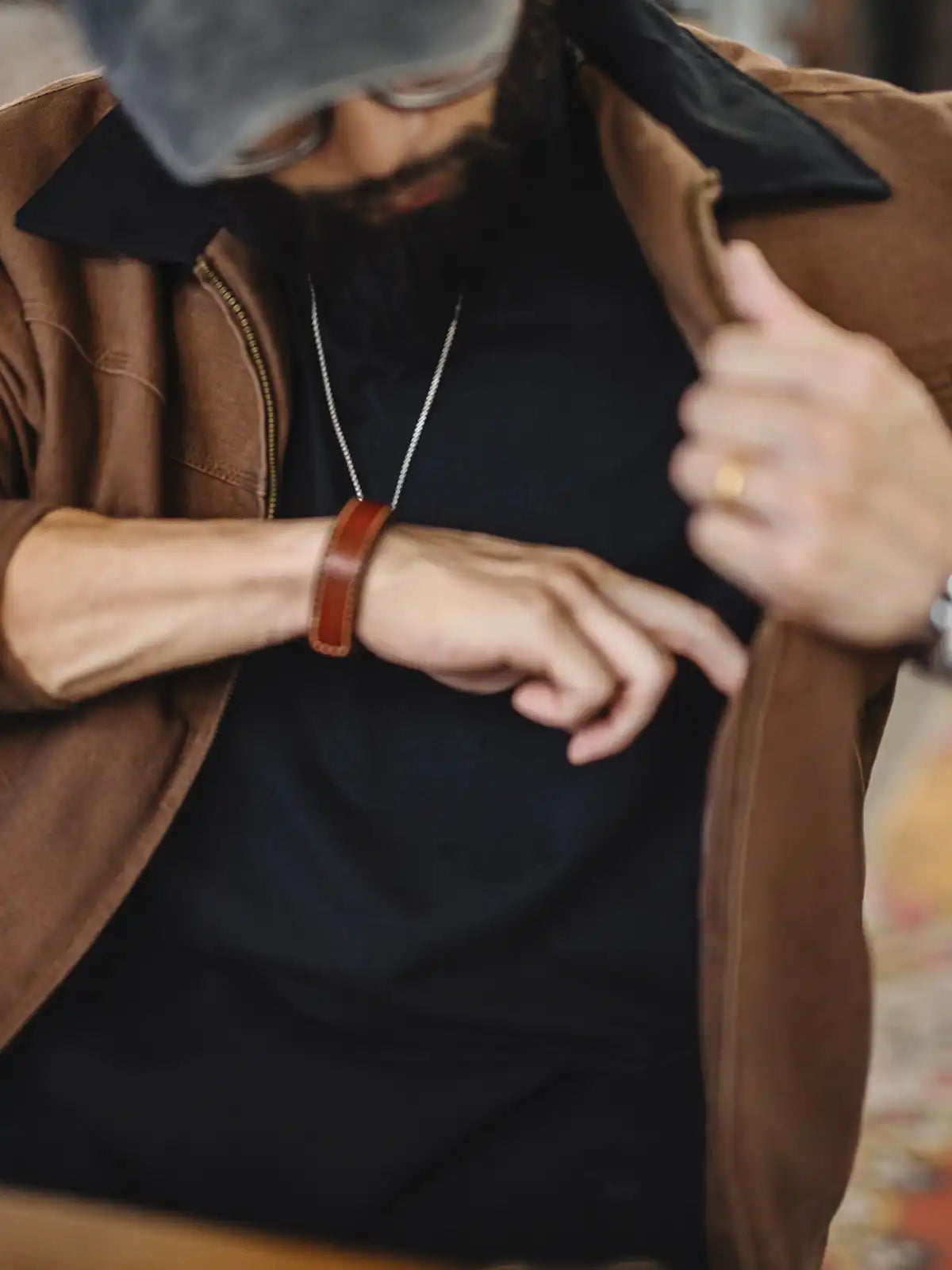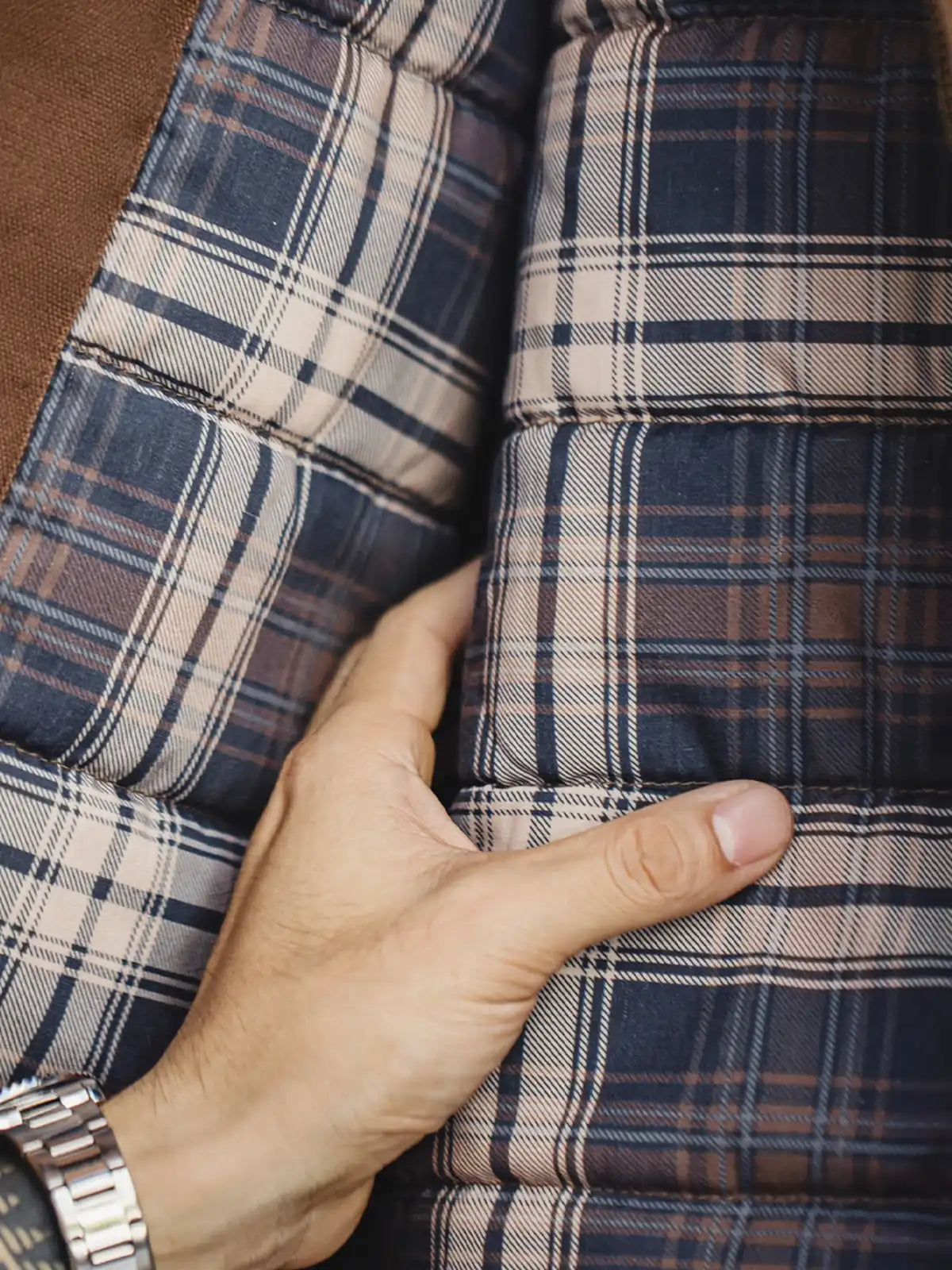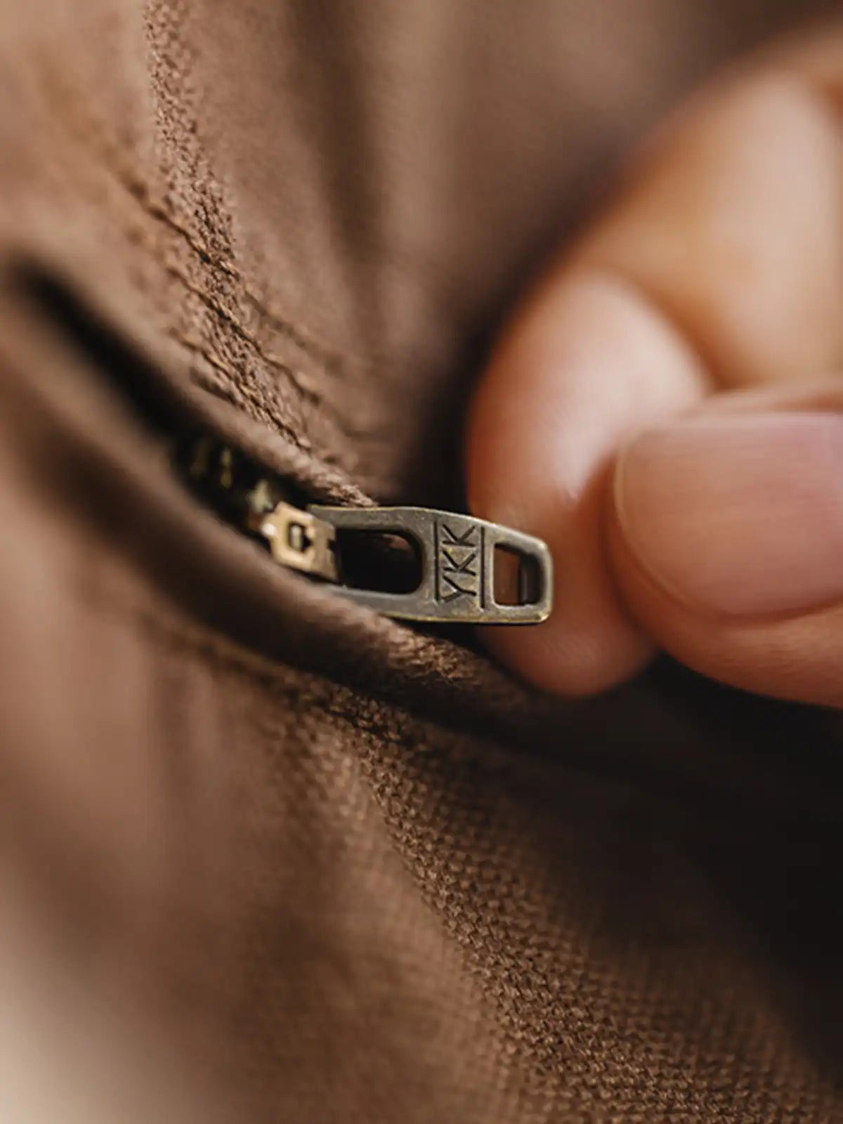 アメリカ・デトロイトで誕生した名作J001モデルをベースに、415g/m²の重磅コットンツイルで再構築した越冬仕様ジャケット。星間航行を想起させる無骨で力強いフォルムが特徴で、映画『インターステラー』でも象徴的に着用された伝説的シルエットを再現。外装はワークウェア由来の直線的構造と二段ポケット配置、背面には簡略化されたゲームポケットを搭載。内側にはチェック柄キルティングライニングを採用し、防風・保温性を両立。コーデュロイ襟と金属製YKKジップがタフな表情を引き立てる。短丈で肩の落ちたリラックスフィットは、スウェットやネルシャツとのレイヤードに最適。硬派な佇まいの中に、現代的な着心地を融合させた完成形。