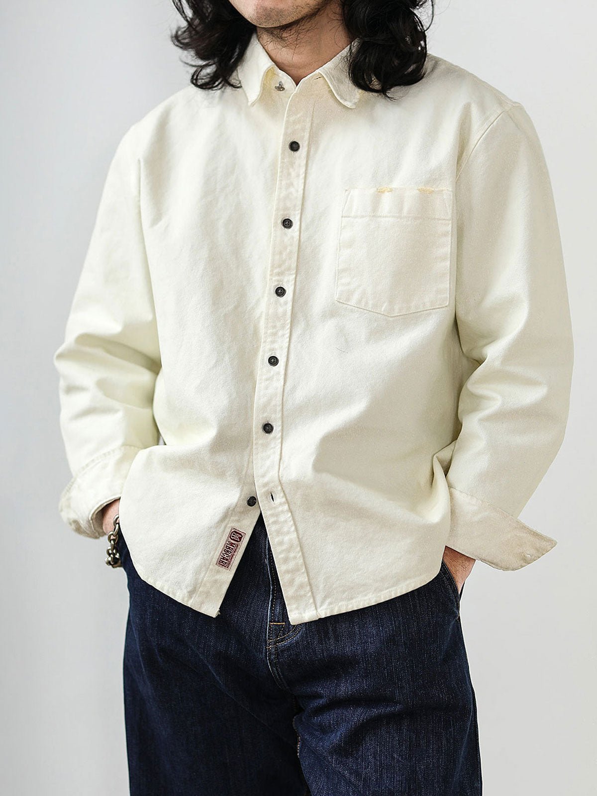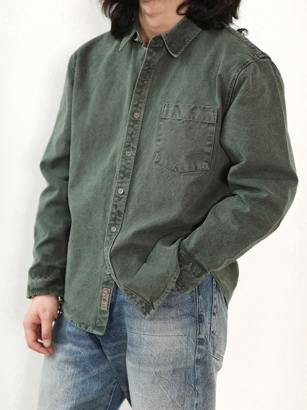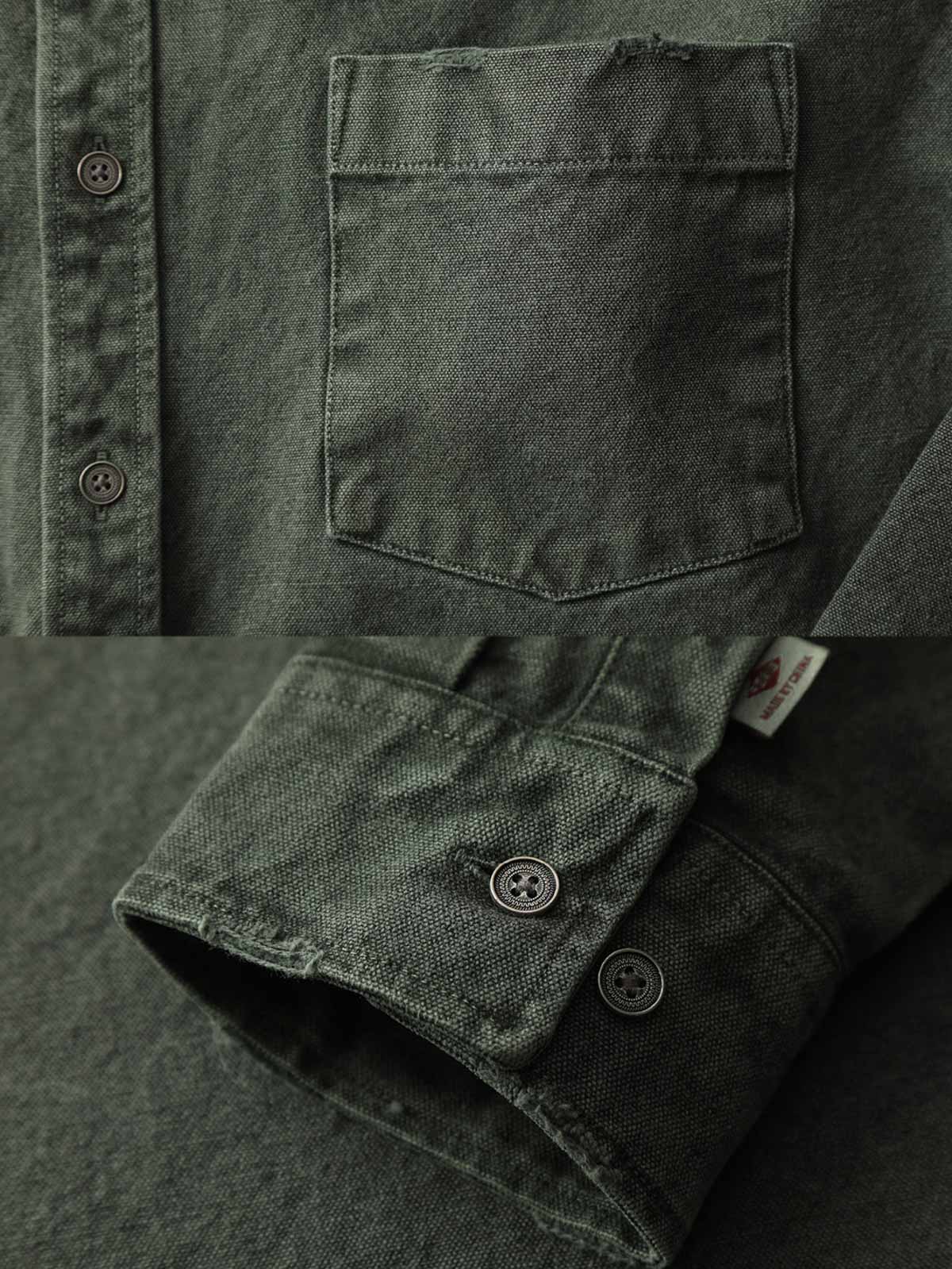 この20オンスのヘビーウェイト織密ビーズキャンバス染めウォッシュドシャツは、ユニークな工芸と質感を通じて、レトロなワークウェアスタイルへの敬意を表しています。素材は染めとウォッシュ処理を施されており、シャツに時間の経過によるレトロな色合いを与えるだけでなく、各シャツに独特の色と質感をもたらしています。エイジング効果はシャツに時間の物語を語るような外見を与え、より個性的でストーリー性のあるものにします。