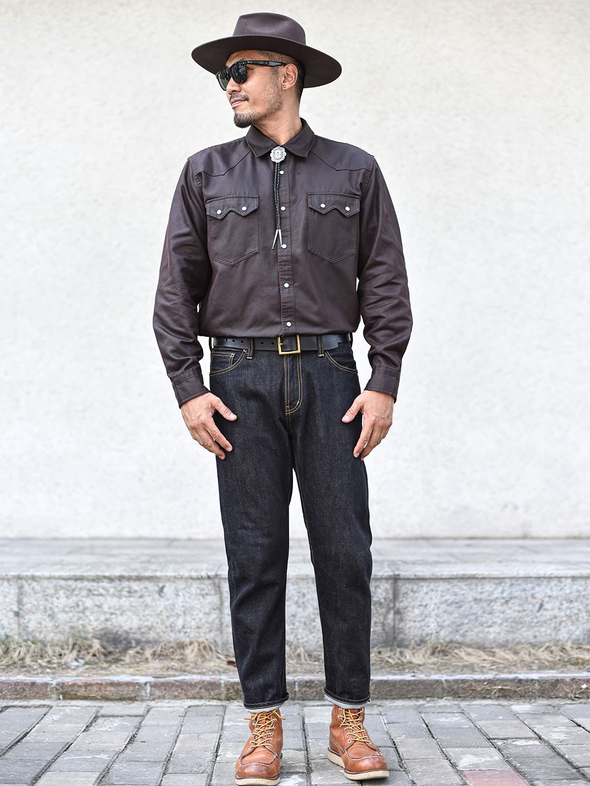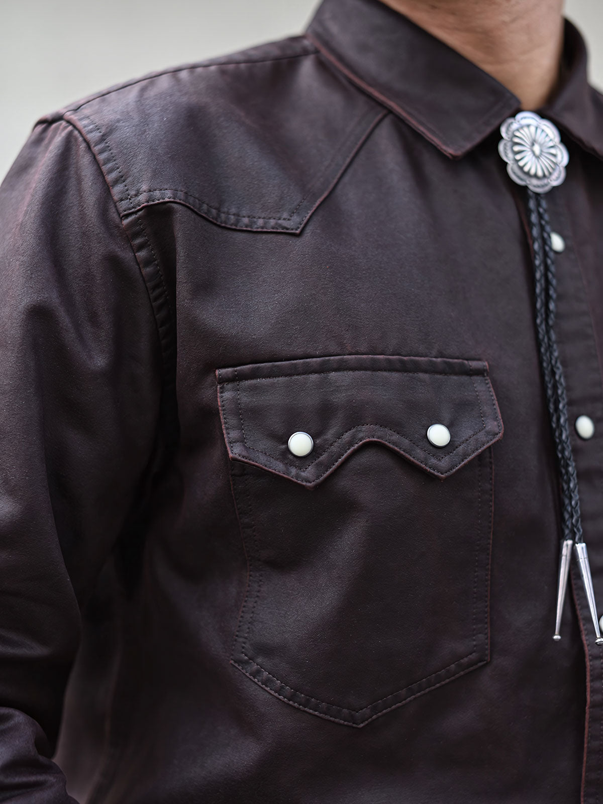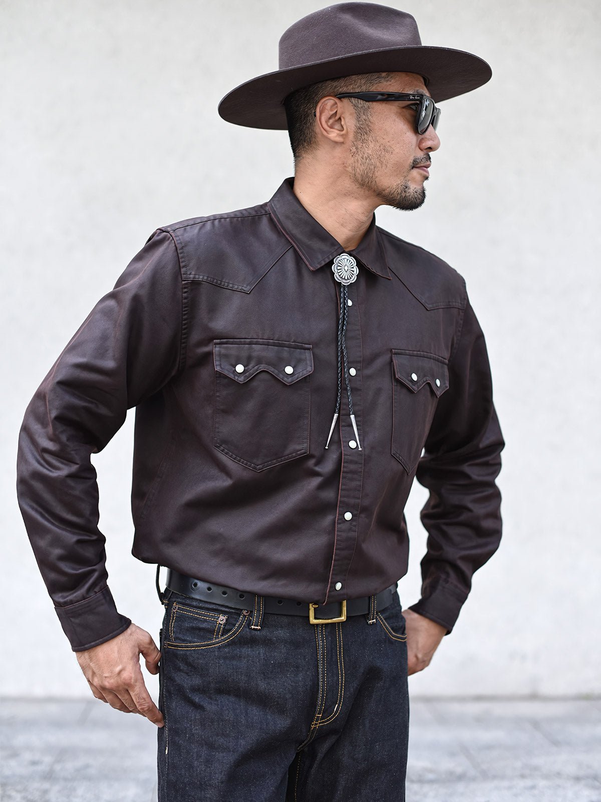 クラシックなウエスタン風デザインとフェイクオイルワックス加工が融合し、ヴィンテージな風合いを演出。