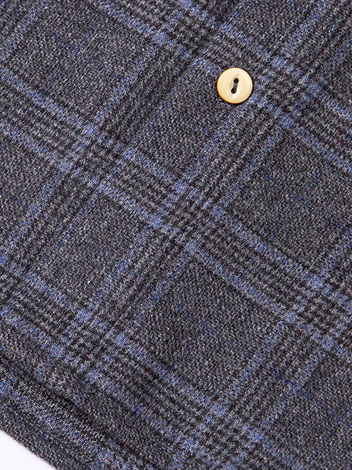クラシックなチェック柄と独特なボタンダウンデザインで、紳士的な風格とヴィンテージ感を表現する一着。
