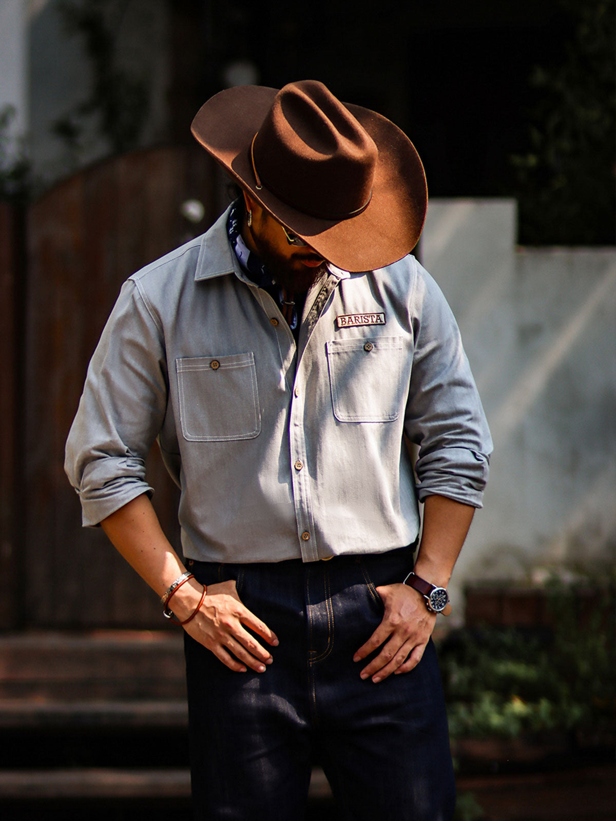 厚手の生地とヴィンテージデザインが融合し、バリスタスタイルにマッチするアメカジテイストのワークシャツ。
