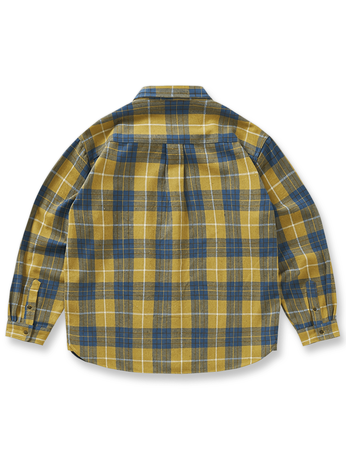 厚手のチェック生地とヴィンテージ風デザインが特徴の、秋冬に最適な高品質長袖シャツ。