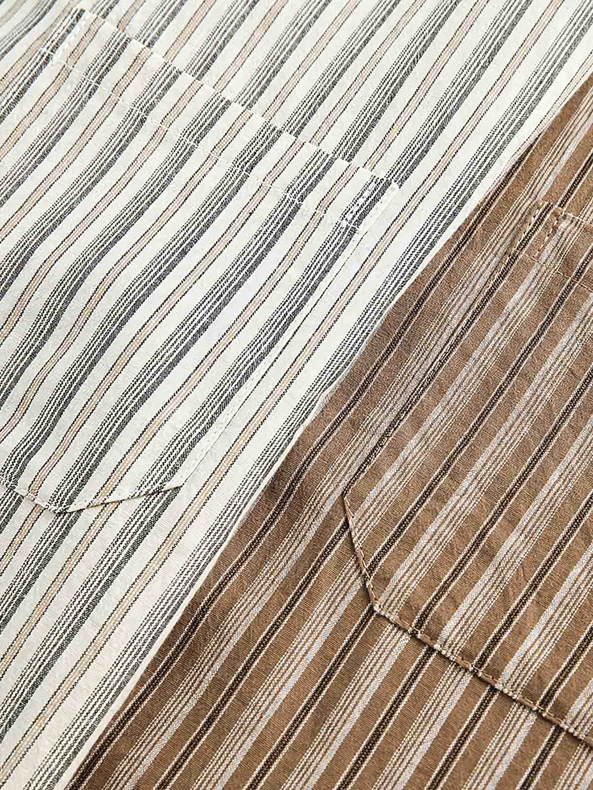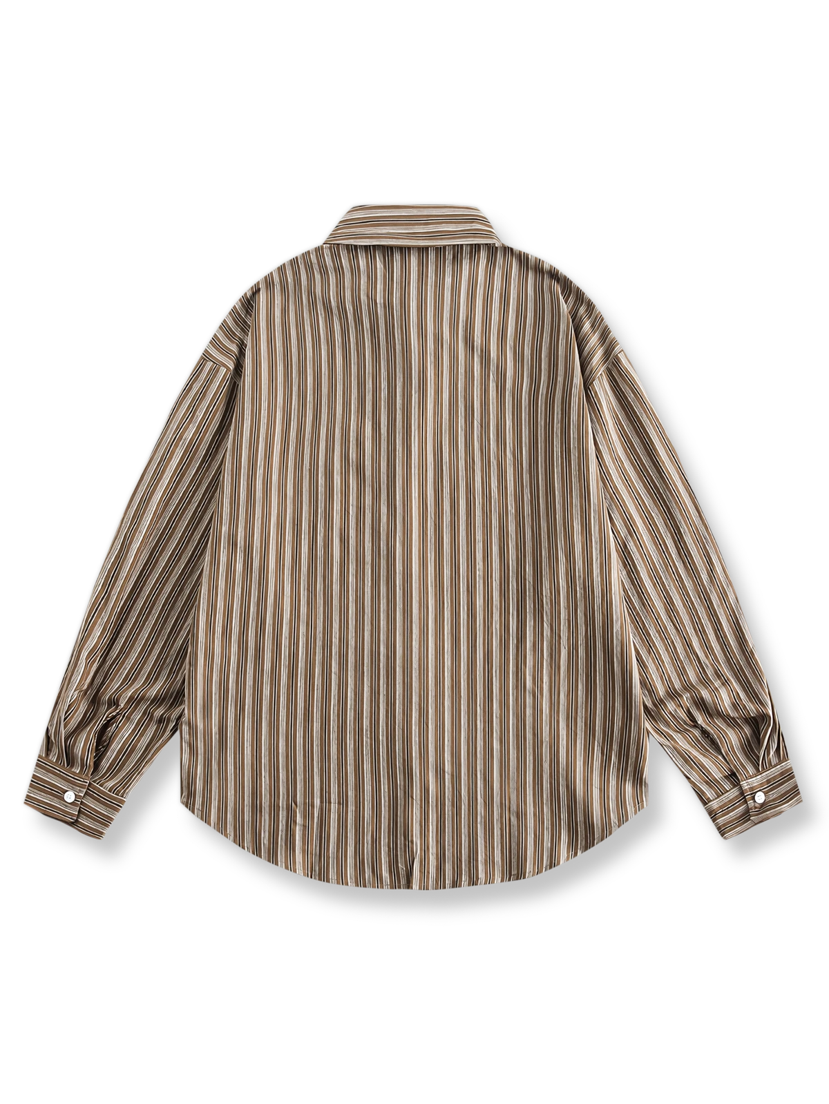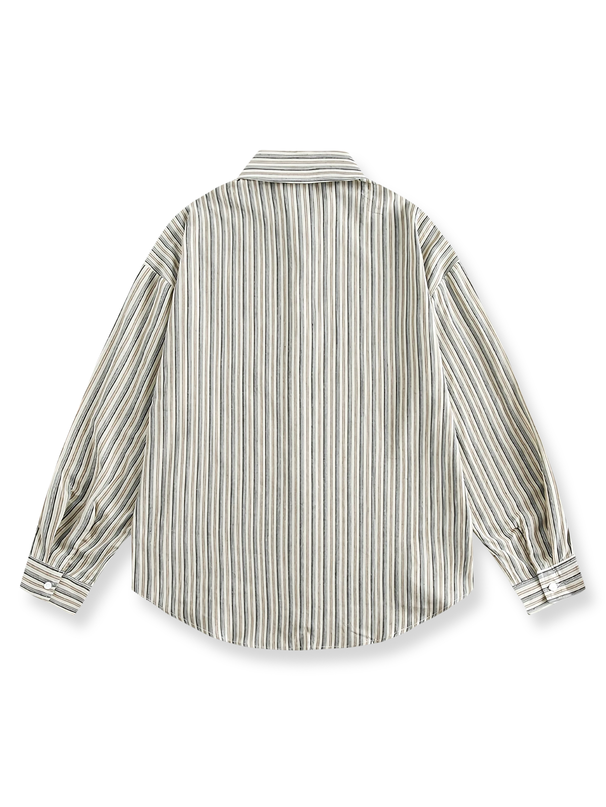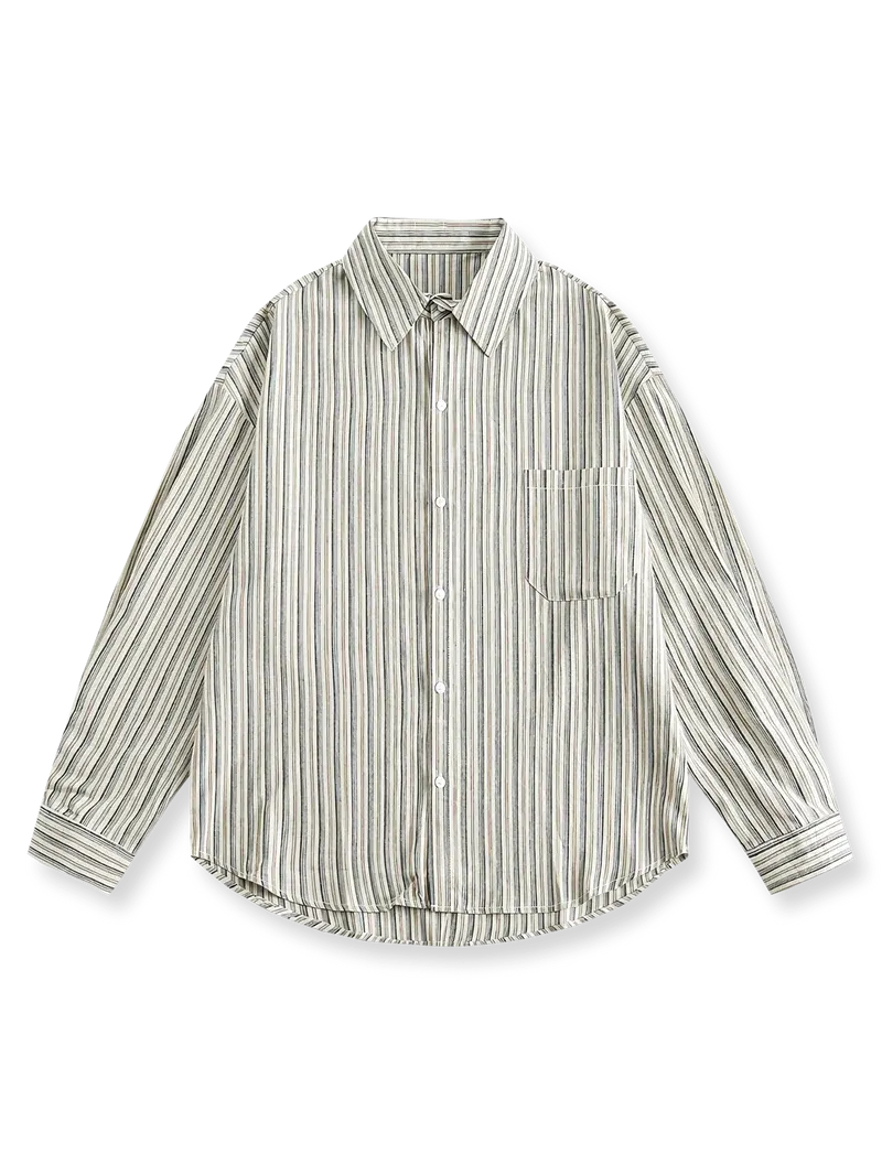 ストライプ柄はメンズウェアにおいて長い歴史を持ち、正装からカジュアルまで多様に取り入れられてきました。このシャツは伝統的なストライプをモダンなシルエットで再解釈したアイテムです。