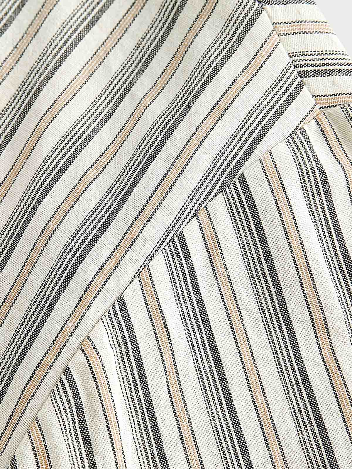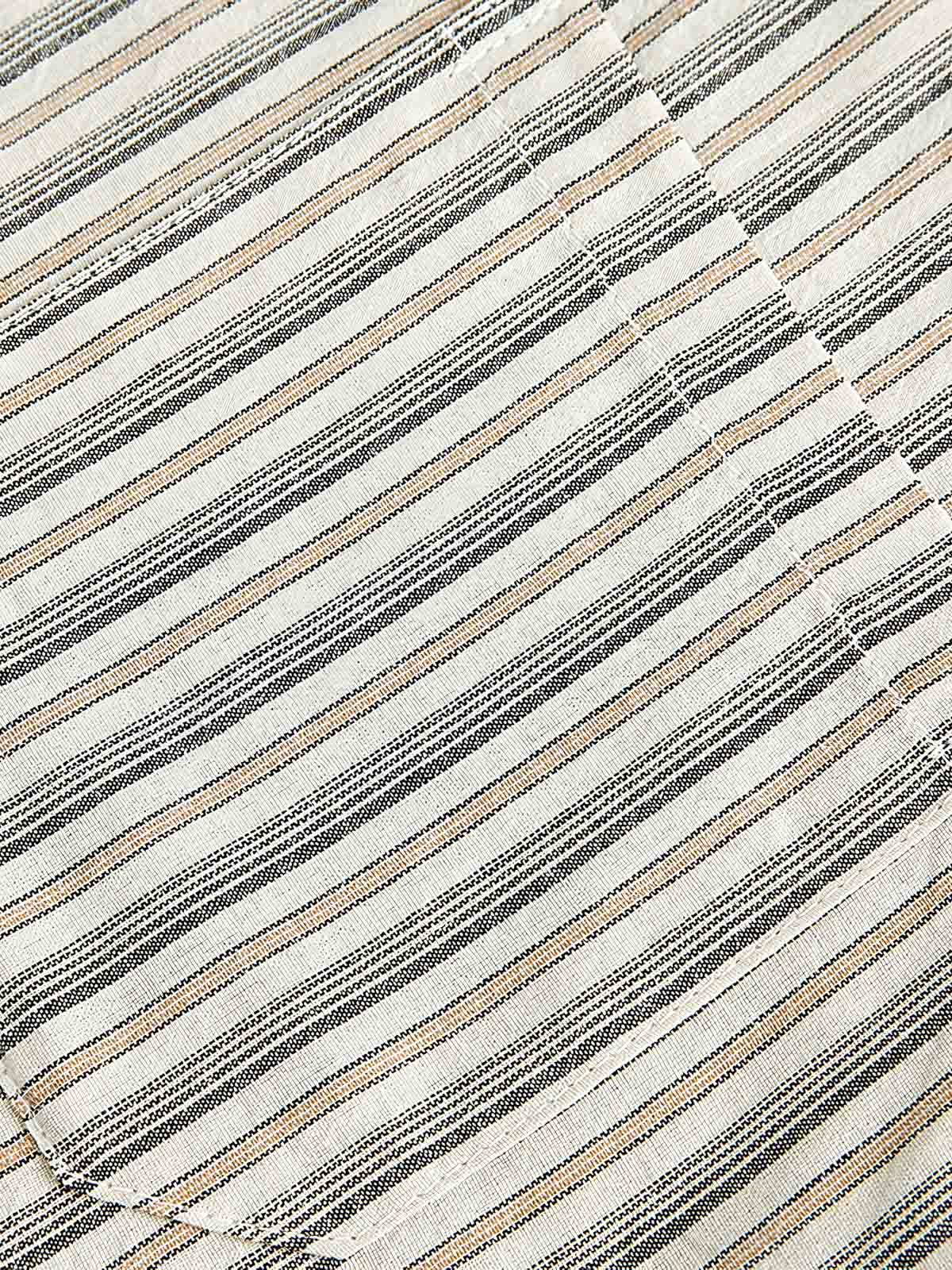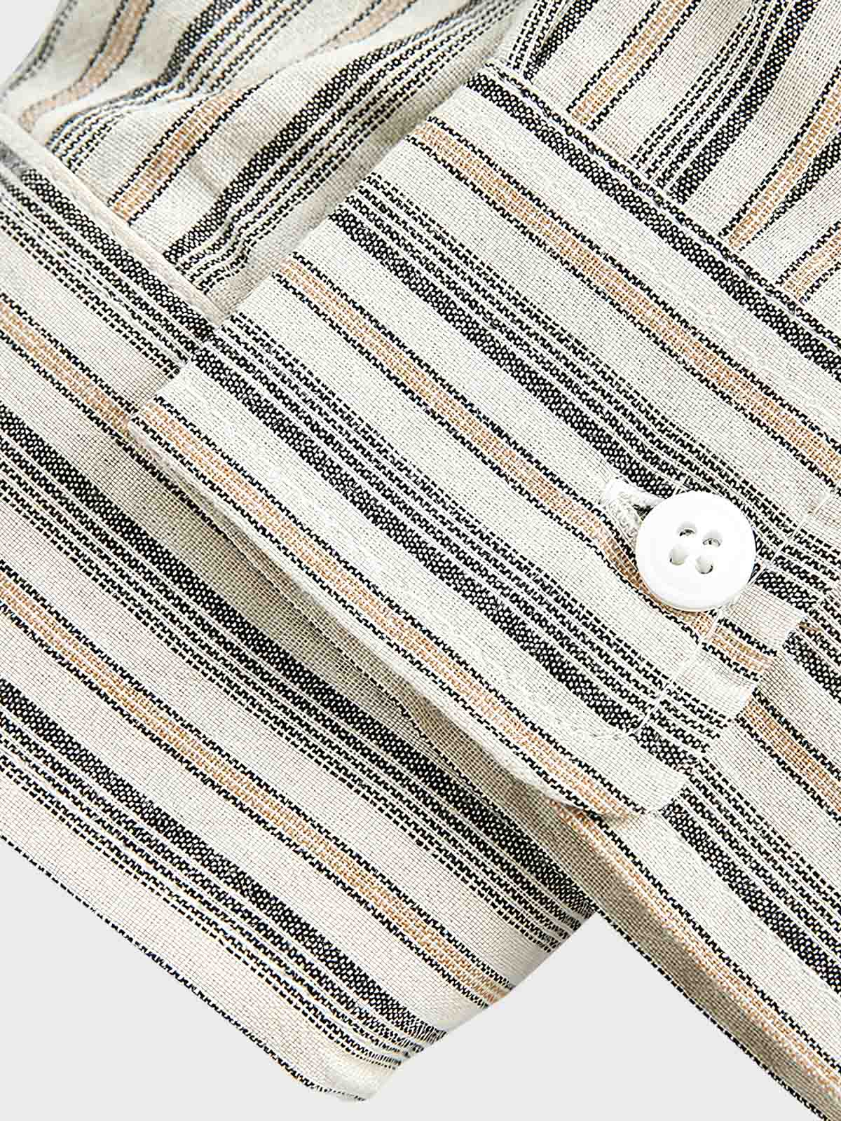 ストライプ柄はメンズウェアにおいて長い歴史を持ち、正装からカジュアルまで多様に取り入れられてきました。このシャツは伝統的なストライプをモダンなシルエットで再解釈したアイテムです。