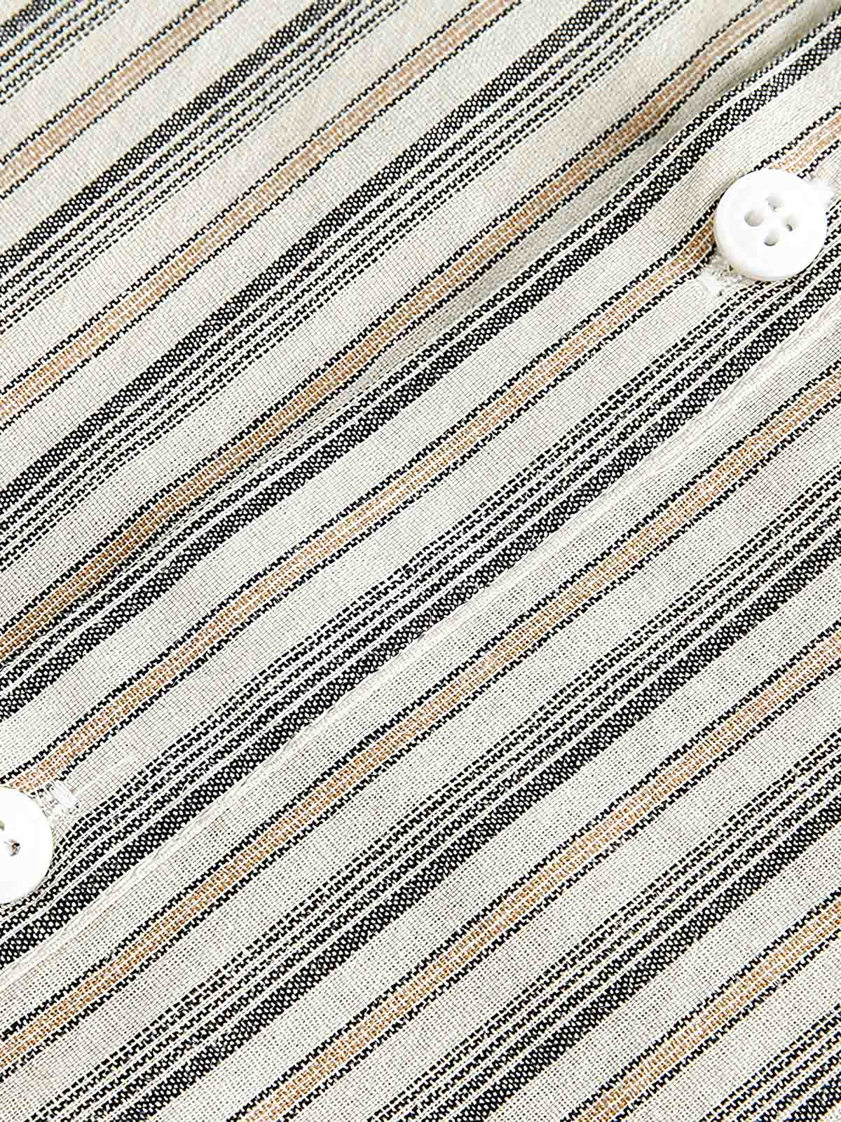 しなやかで通気性に優れた生地を使用し、快適な着心地を実現しています。細やかなストライプが洗練された印象を与えるとともに、ボタンダウンの襟がクラシカルな雰囲気を演出します。