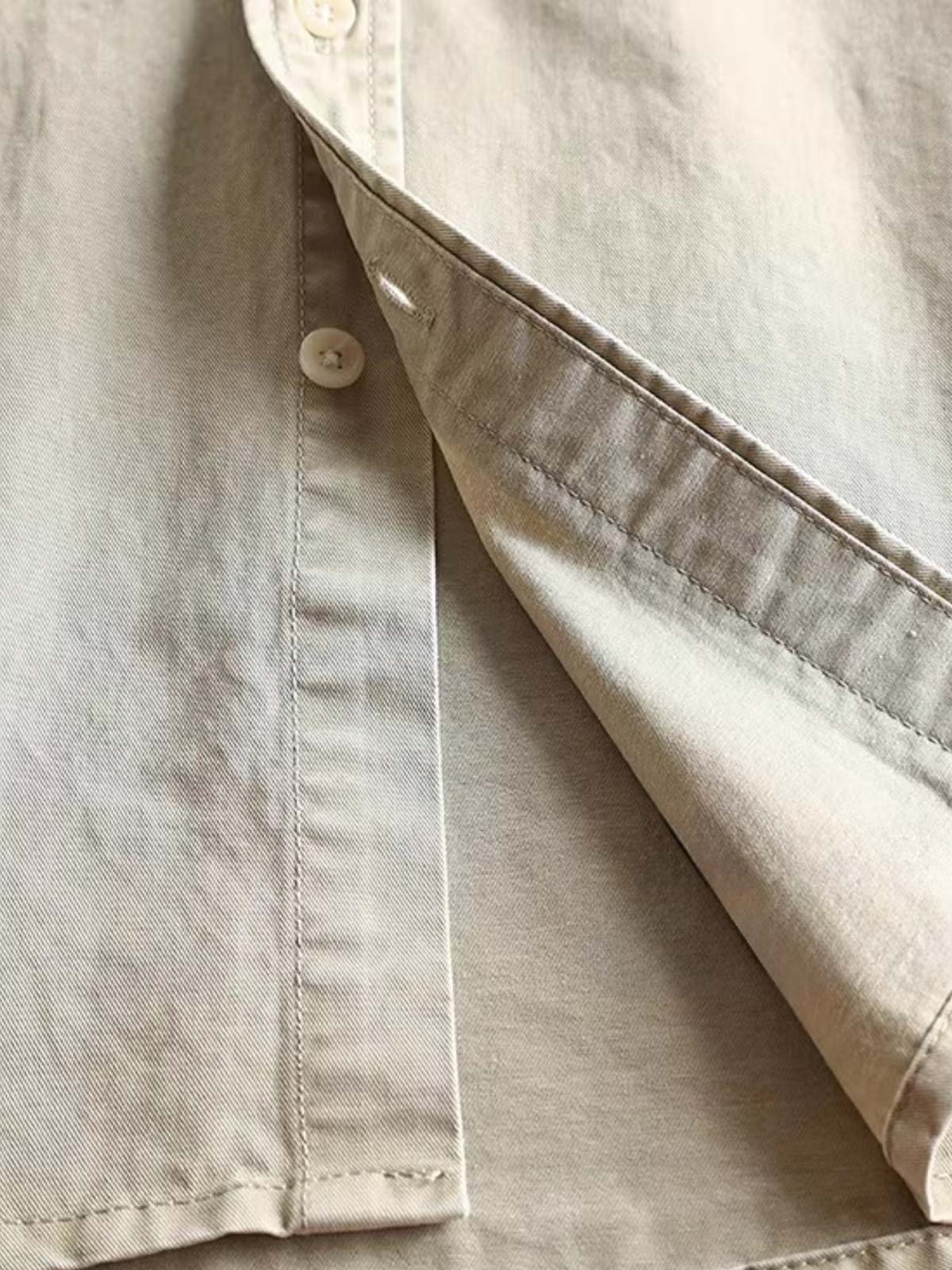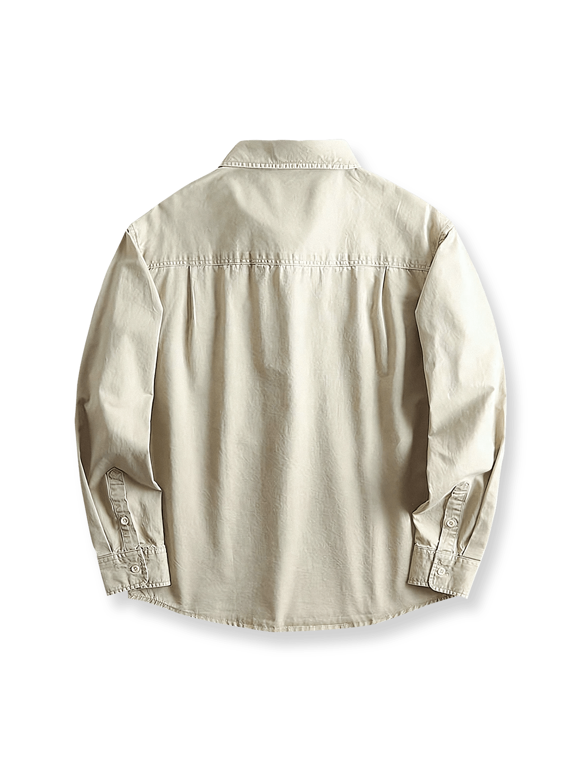 コットン100%のウォッシュ加工を施したこの長袖シャツは、柔らかく通気性があり、耐久性とシワ防止に優れています。アメリカンヴィンテージのエッセンスを取り入れた控えめなパステルカラーと、シンメトリックなパッチポケットデザイン、ショルダーのカッティングが立体感とディテールのクオリティを引き立てます。単独での着用はもちろん、重ね着にも適しており、カジュアルからフォーマルまで幅広く対応できる一枚です。