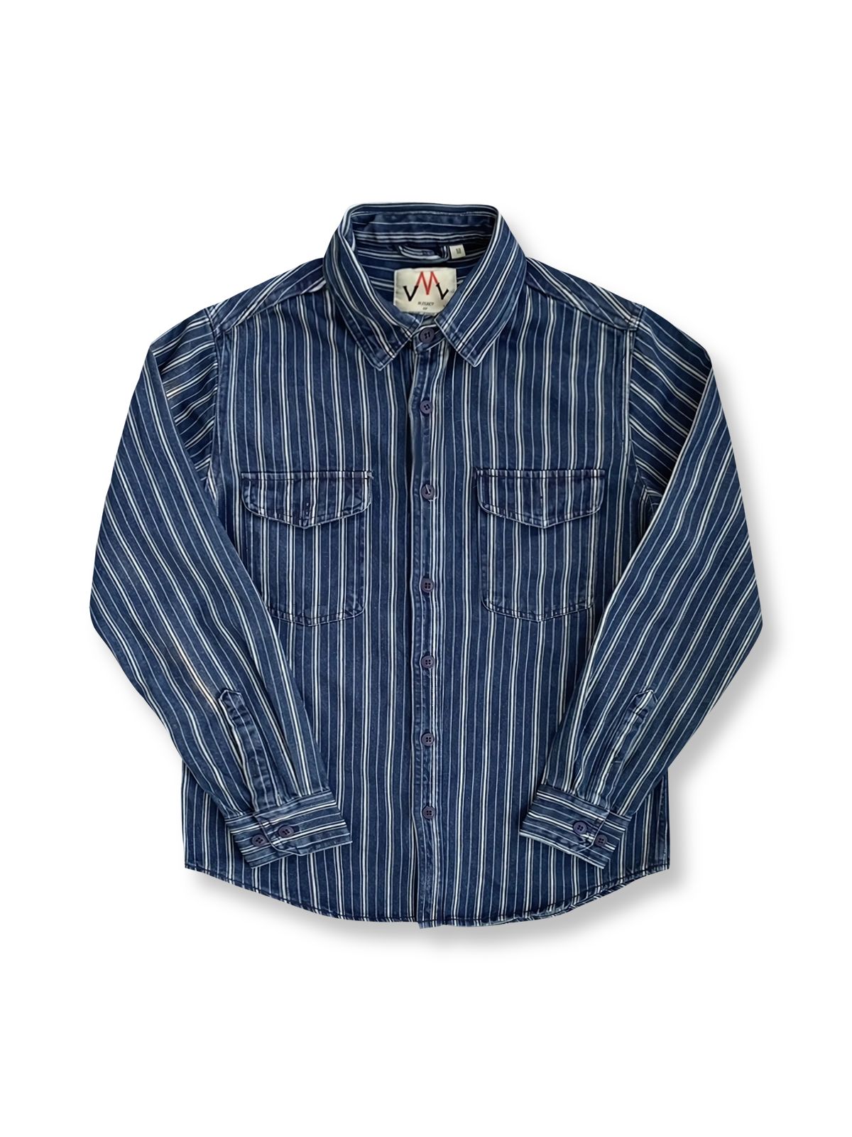ヴィンテージ感のあるウォッシュ加工と、実用的な縦縞デザインが融合したワークシャツ。