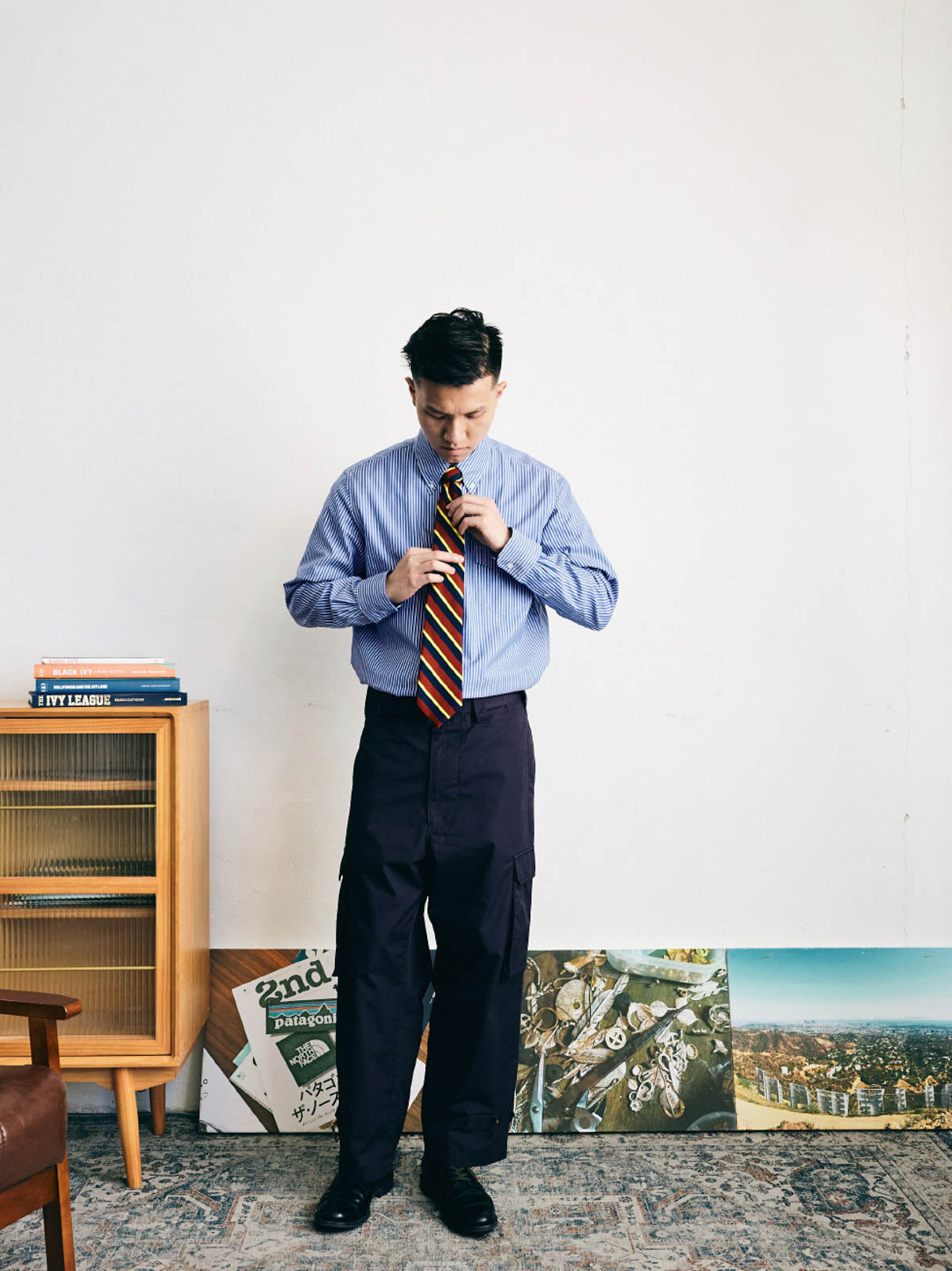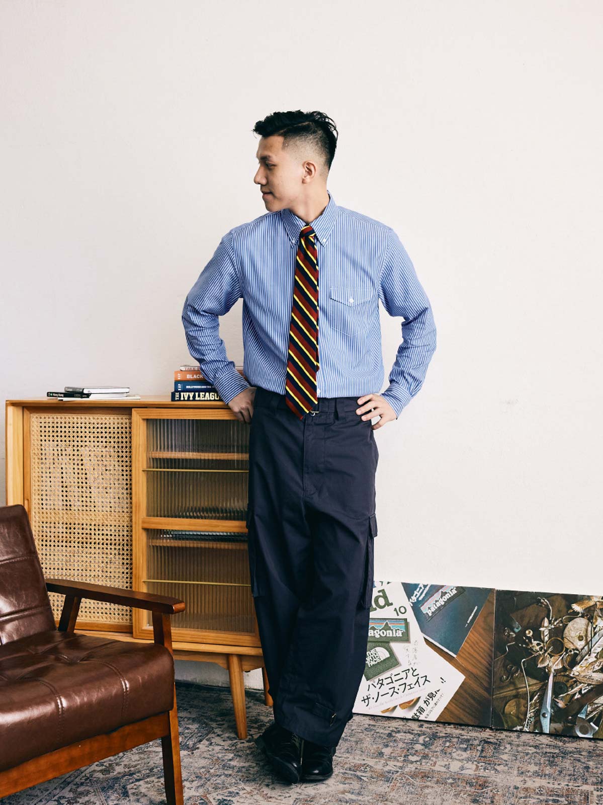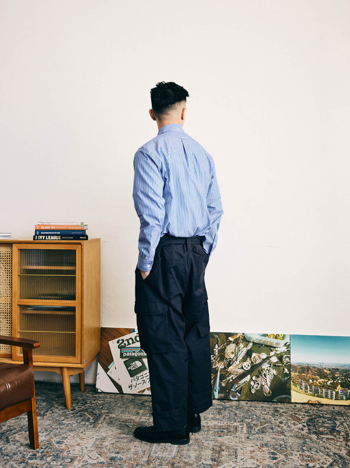 このブルーストライプのボタンダウン長袖シャツは、アイビースタイルの定番アイテム。コットン100%素材を使用し、快適な着心地と優れた通気性を提供します。GANT、J. PRESS、BROOKS BROTHERSの要素を取り入れたデザインが特徴で、シャツの識別度と洗練された雰囲気を高めています。ボタンダウンデザインにより、フォーマルからカジュアルまで幅広く対応可能。独自のストライプ柄とディテールが、豊かな視覚的効果を生み出し、多様なシーンでのスタイリングに最適です。コーディネート提案:カジュアルパンツやスラックスと合わせることで、カジュアルとフォーマルの両方のスタイルを楽しめます。