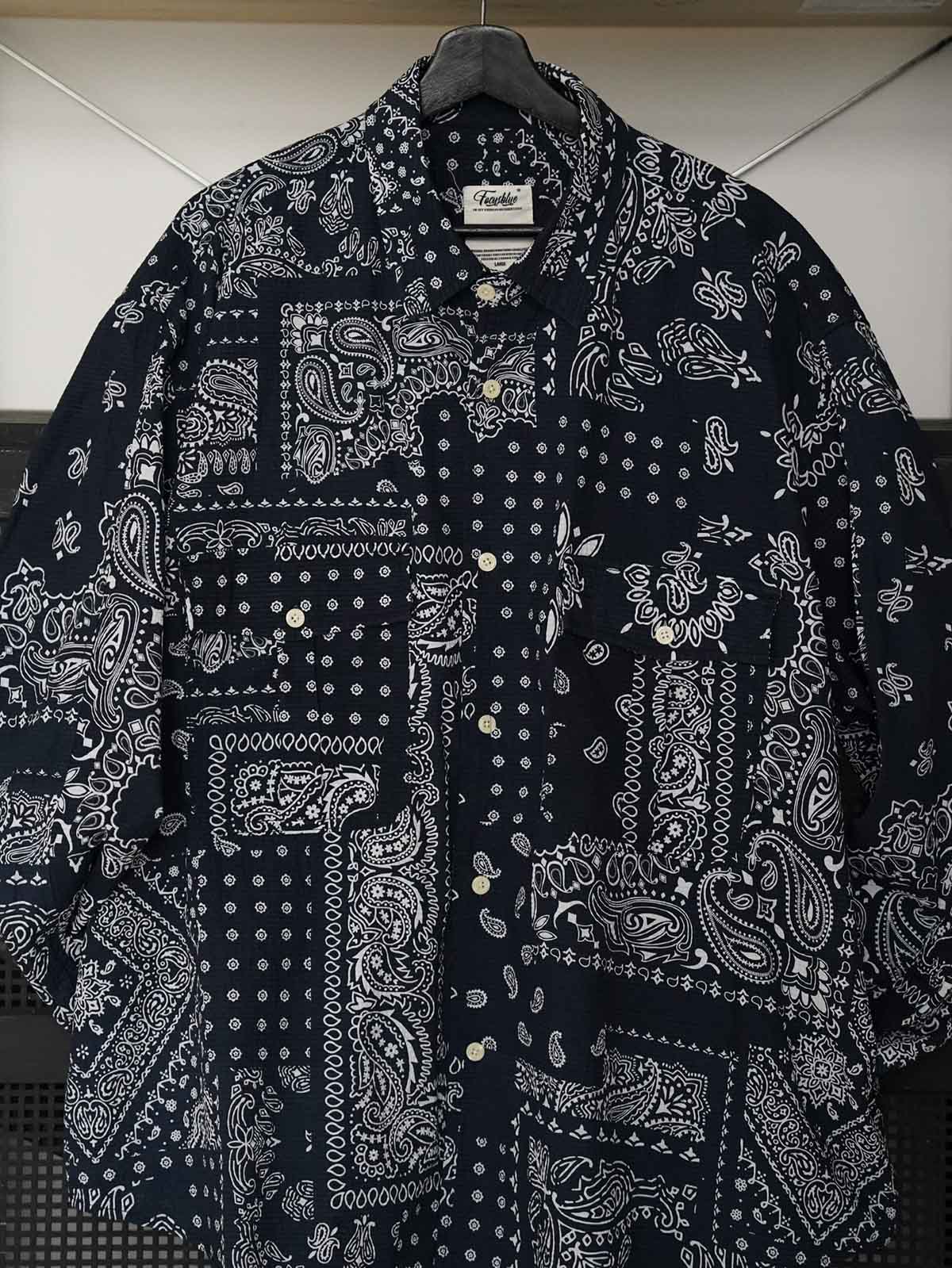 軽くて通気性のあるシアサッカー素材とクラシックなペイズリー柄が融合した、レトロな雰囲気のシャツ。