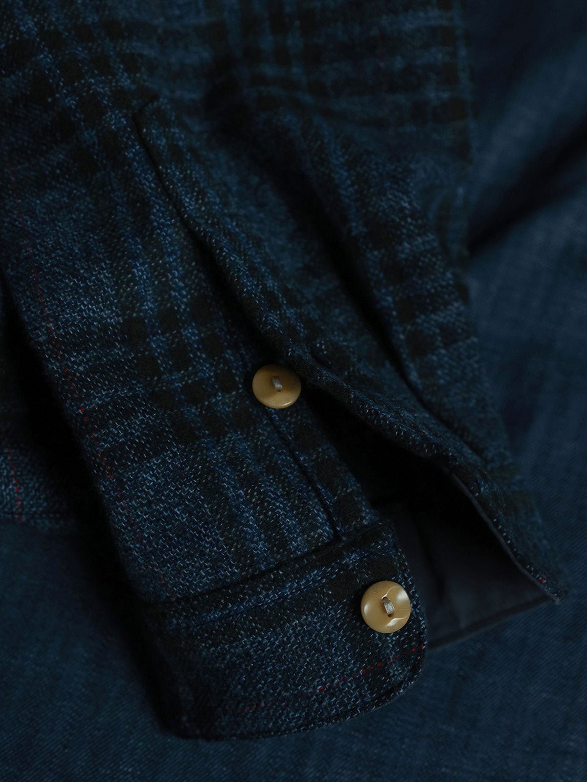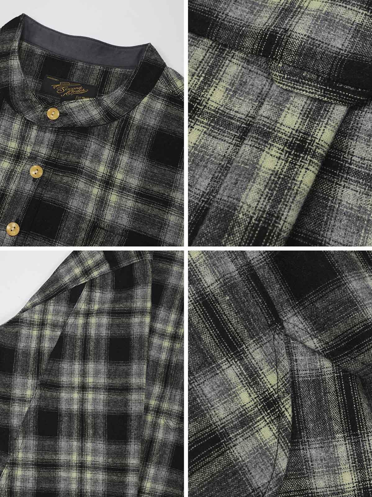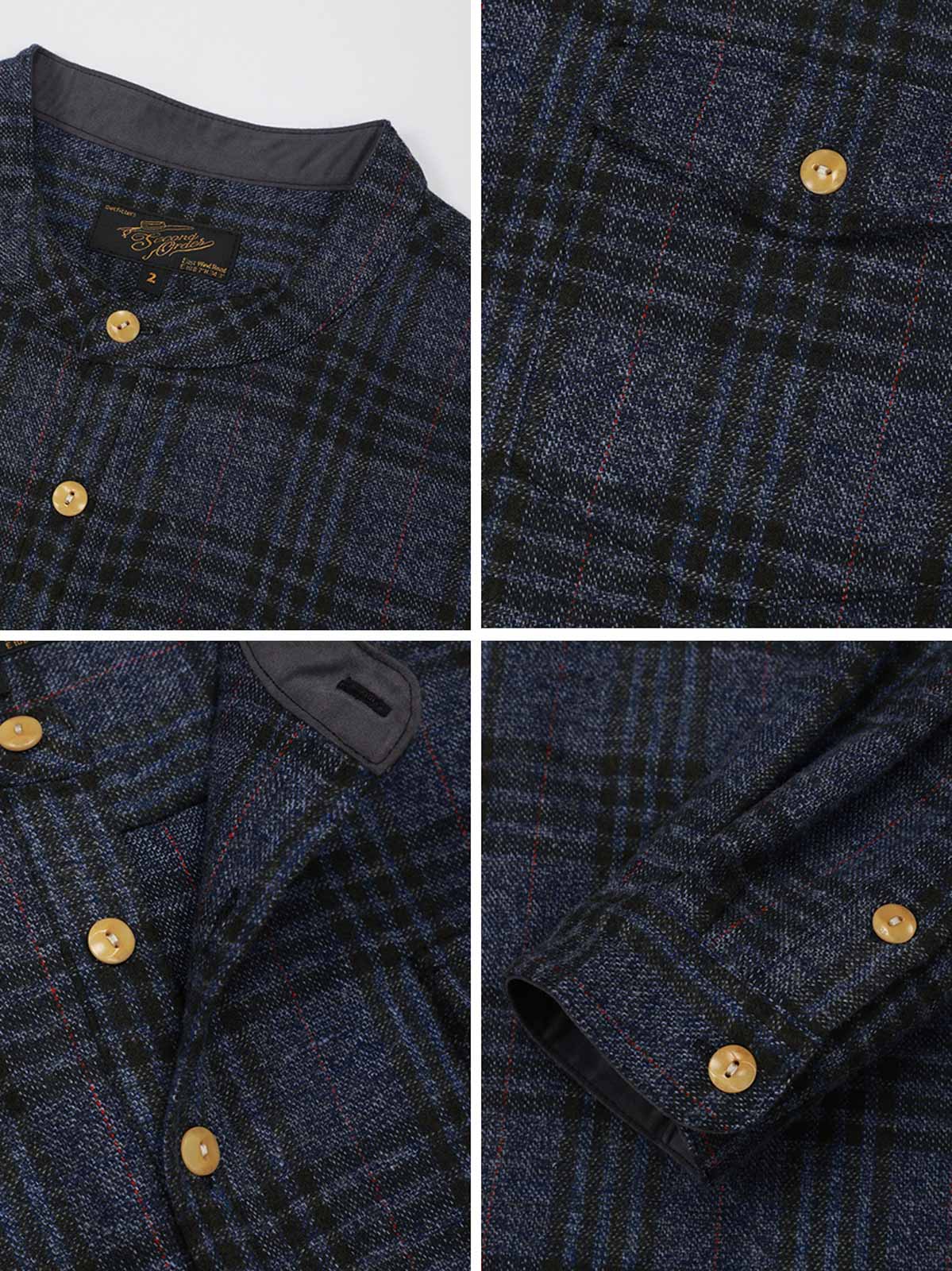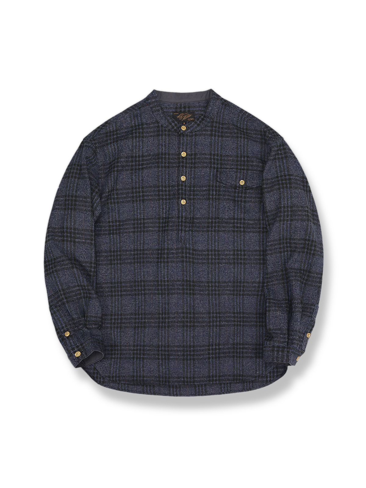このウールチェックのプルオーバースタンドカラーシャツは、クラシックな英国スタイルの現代的な解釈であり、伝統と快適さを融合したデザインコンセプトです。ディテールにおいて、このシャツはフルーツボタンを採用しています。スタンドカラーのデザインは、シャツによりフォーマルな感じと独特さを与え、伝統的なシャツの襟型に比べて、より現代的なファッションコンセプトを展開しています。