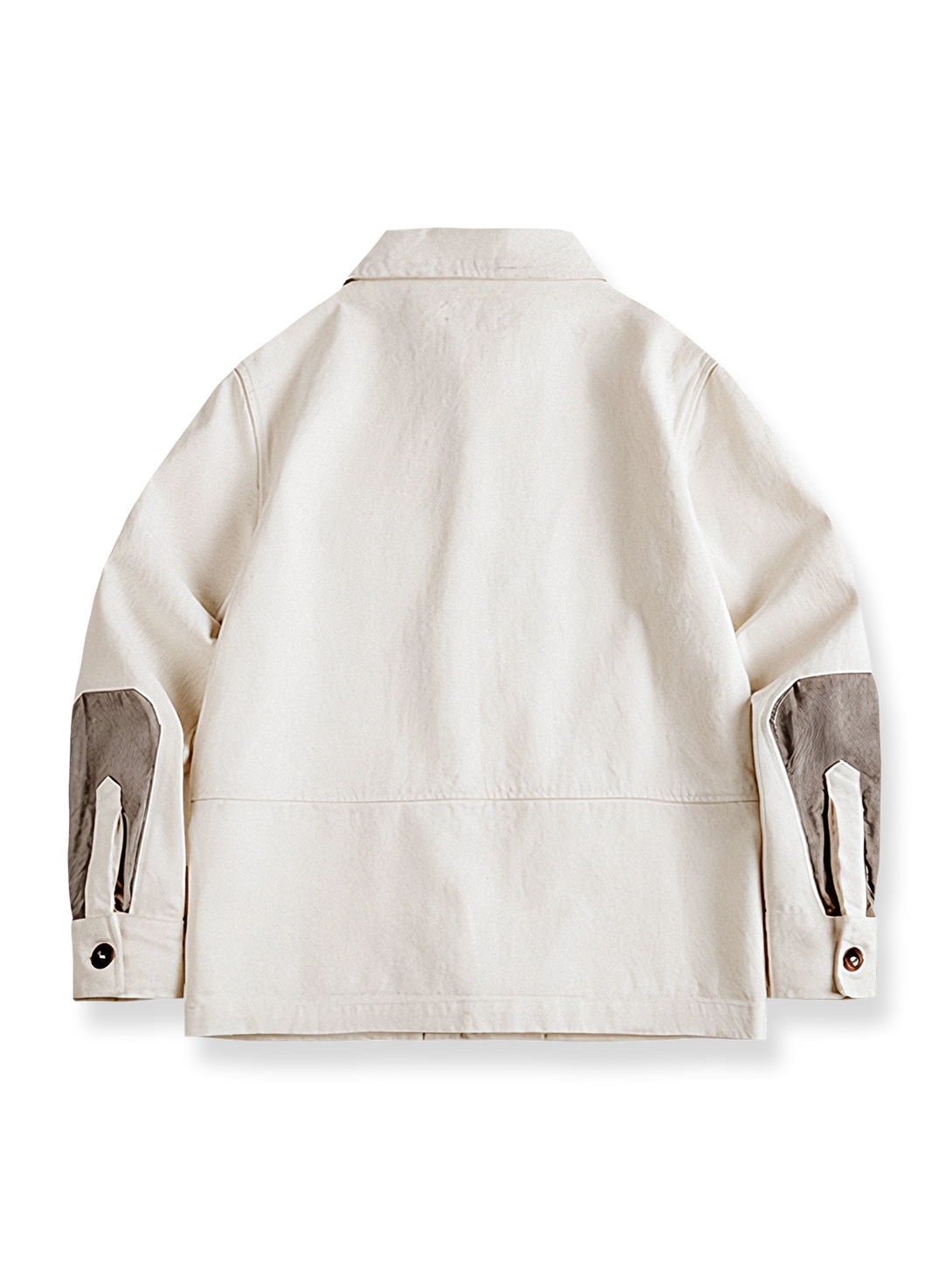 このジャケットは、ヨーロッパの産業革命期に誕生したクラシックなフレンチワークジャケットの三つポケットデザインを採用しています。未染色のコットンシェル生地は、ジャケットにハリのあるシルエットと自然なヴィンテージ感を与えます。袖口にはコーデュロイ素材を使用し、シンプルな色合いに変化を持たせ、視覚的なアクセントを加えています。大きな四つ穴ボタンがジャケット全体の質感を引き立て、ディテールにこだわったデザインとなっています。このジャケットは、パリのランウェイでもその魅力を発揮し、東京のストリートファッションにも違和感なく溶け込みます。