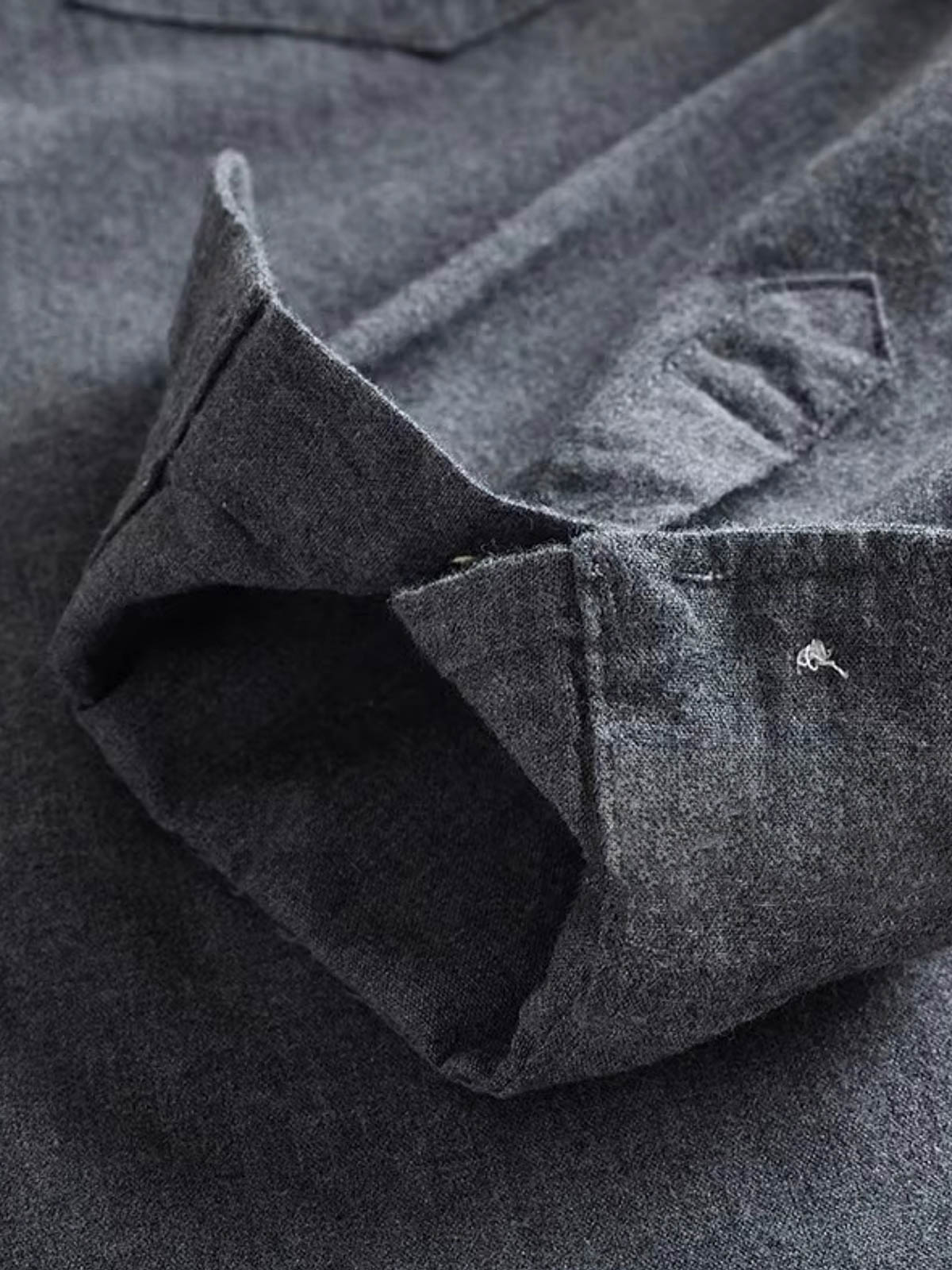このシャツは100%コットンを使用し、ウォッシュドライ加工が施されています。控えめで柔らかい配色がレトロで芸術的な雰囲気を演出し、カジュアルからフォーマルまで幅広く対応します。シングルサイドポケットのシンプルで実用的なデザインが全体のディテールにアクセントを加え、職人技とこだわりのデザインセンスが光ります。ゆったりとしたフィット感で、さまざまな体型にフィットし、外着やインナーとしても便利です。洗練されたデザインが、あなたのスタイルを一層引き立てます。