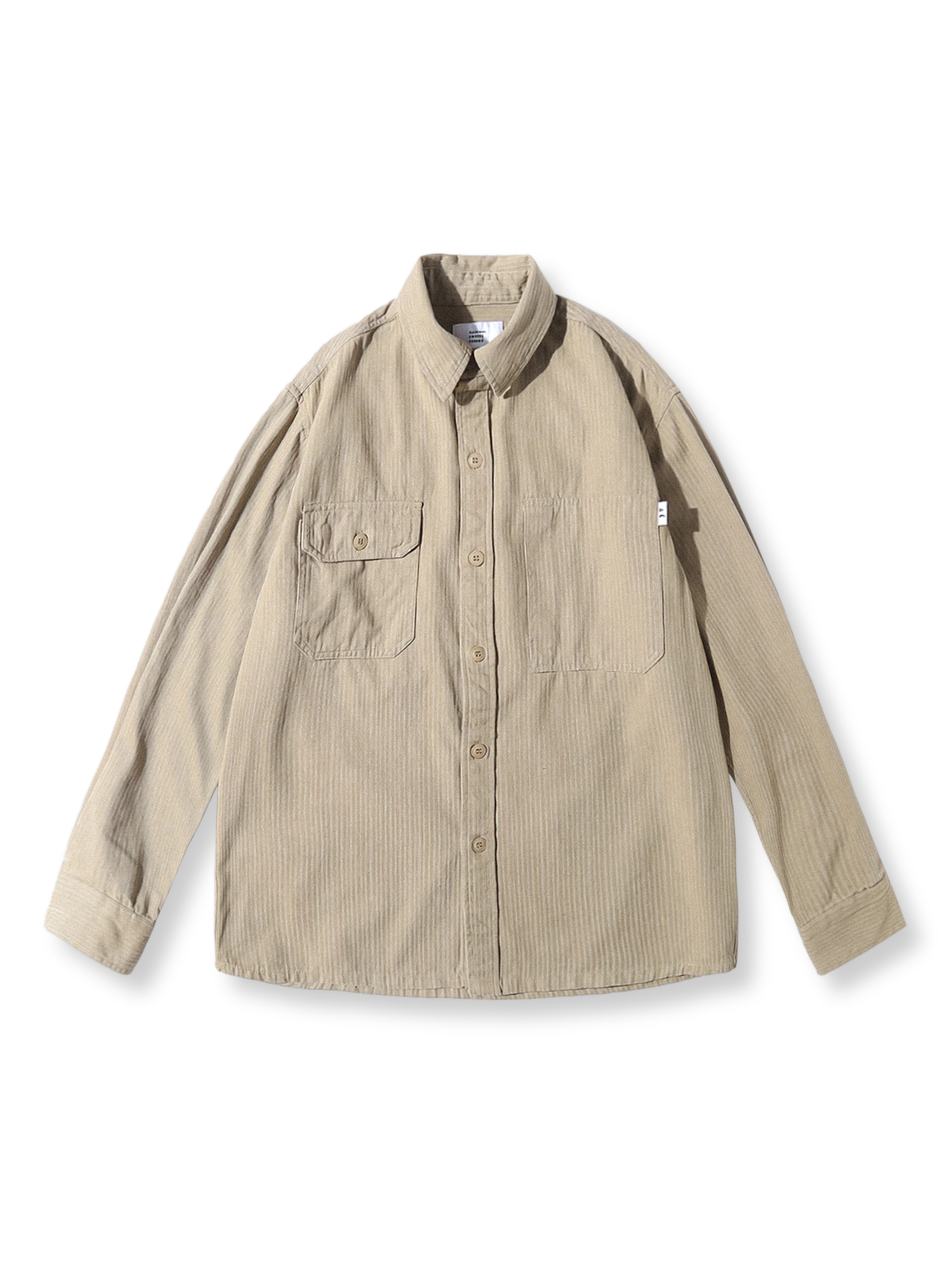 クラシックなワークデザインに、熱圧着ストライプを組み合わせたヴィンテージ感と実用性を兼ね備えたコットンシャツ。丈夫で快適なコットン素材を使用し、日常使いから作業着まで幅広く活躍する一着。