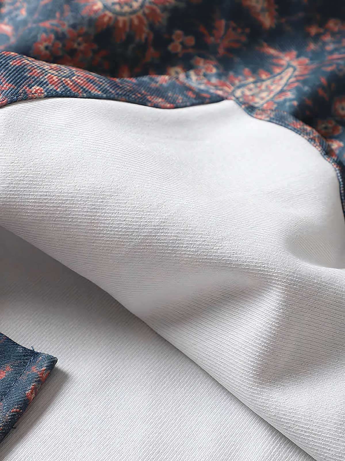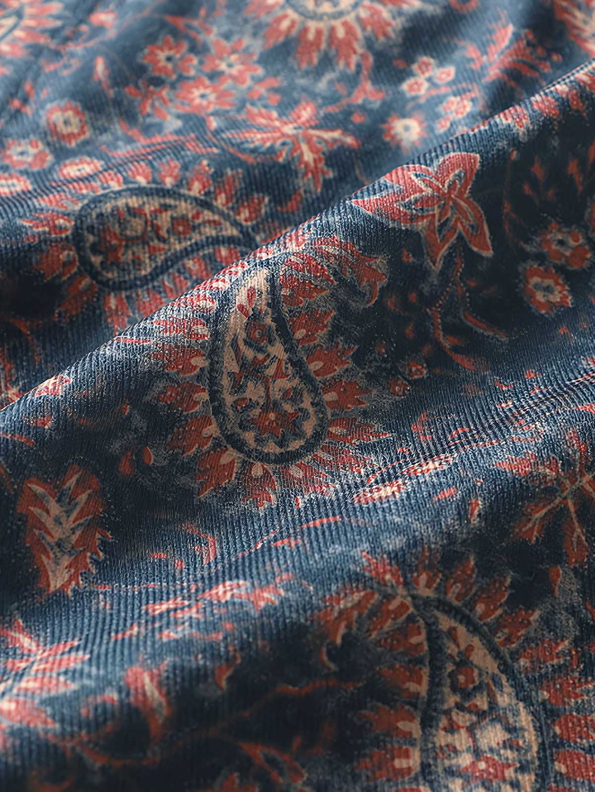 クラシックなペイズリー柄とナチュラルなココナッツボタンが特徴の、ヴィンテージ感漂うレトロな長袖シャツ。