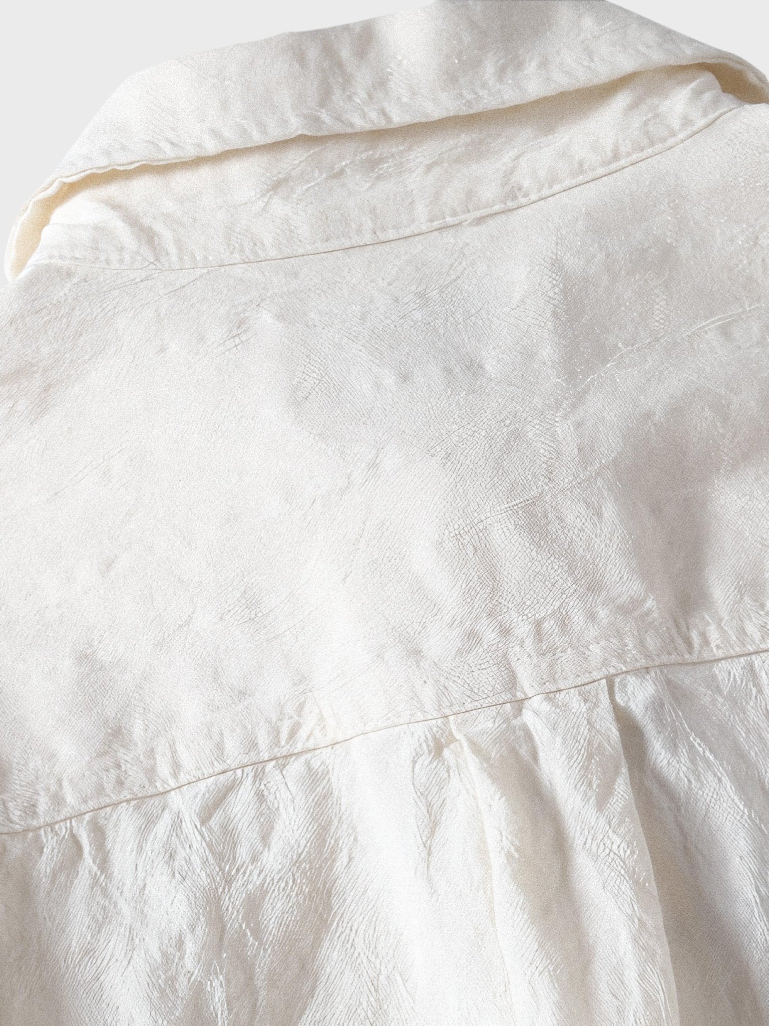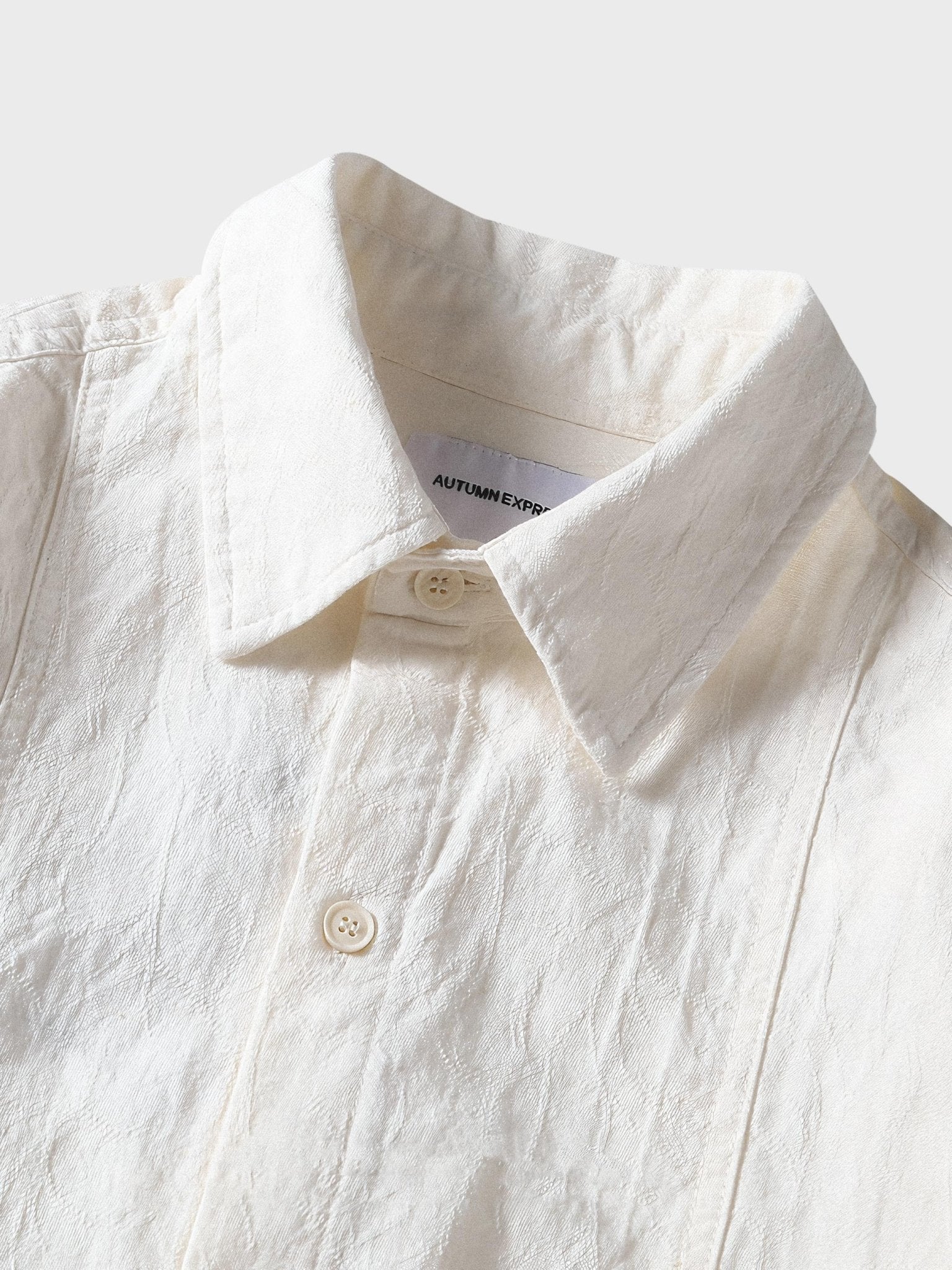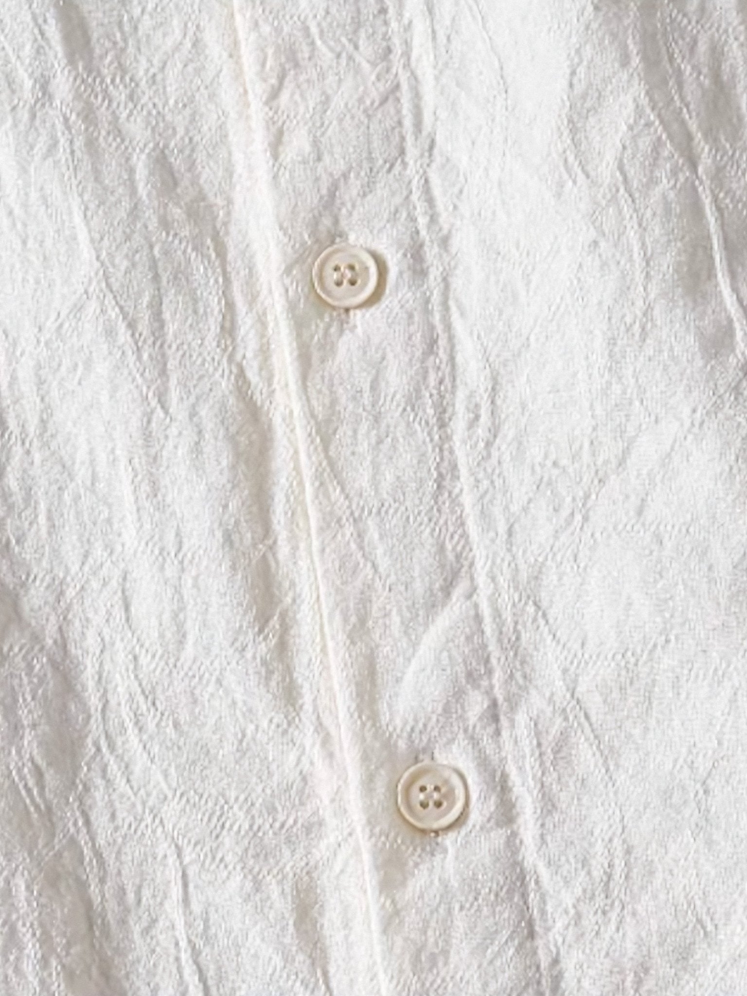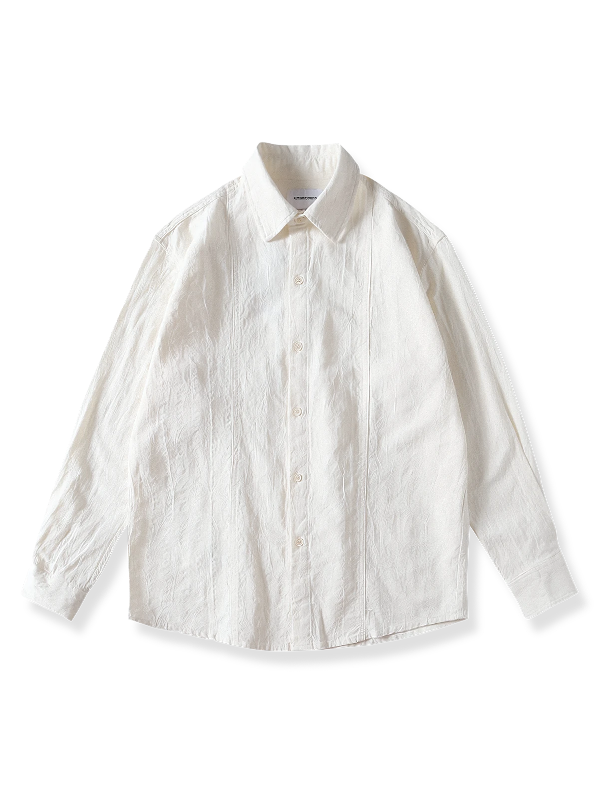 この長袖シャツはシンプルでミニマルなデザインが特徴で、無地ベースに統一感のあるデザインが施されています。オリジナルのジャカードテクスチャがシャツの表面にシワのように現れ、おしゃれで高級感のあるルックスを演出しています。この一枚で様々なスタイルに対応でき、エレガントな存在感を放っています。