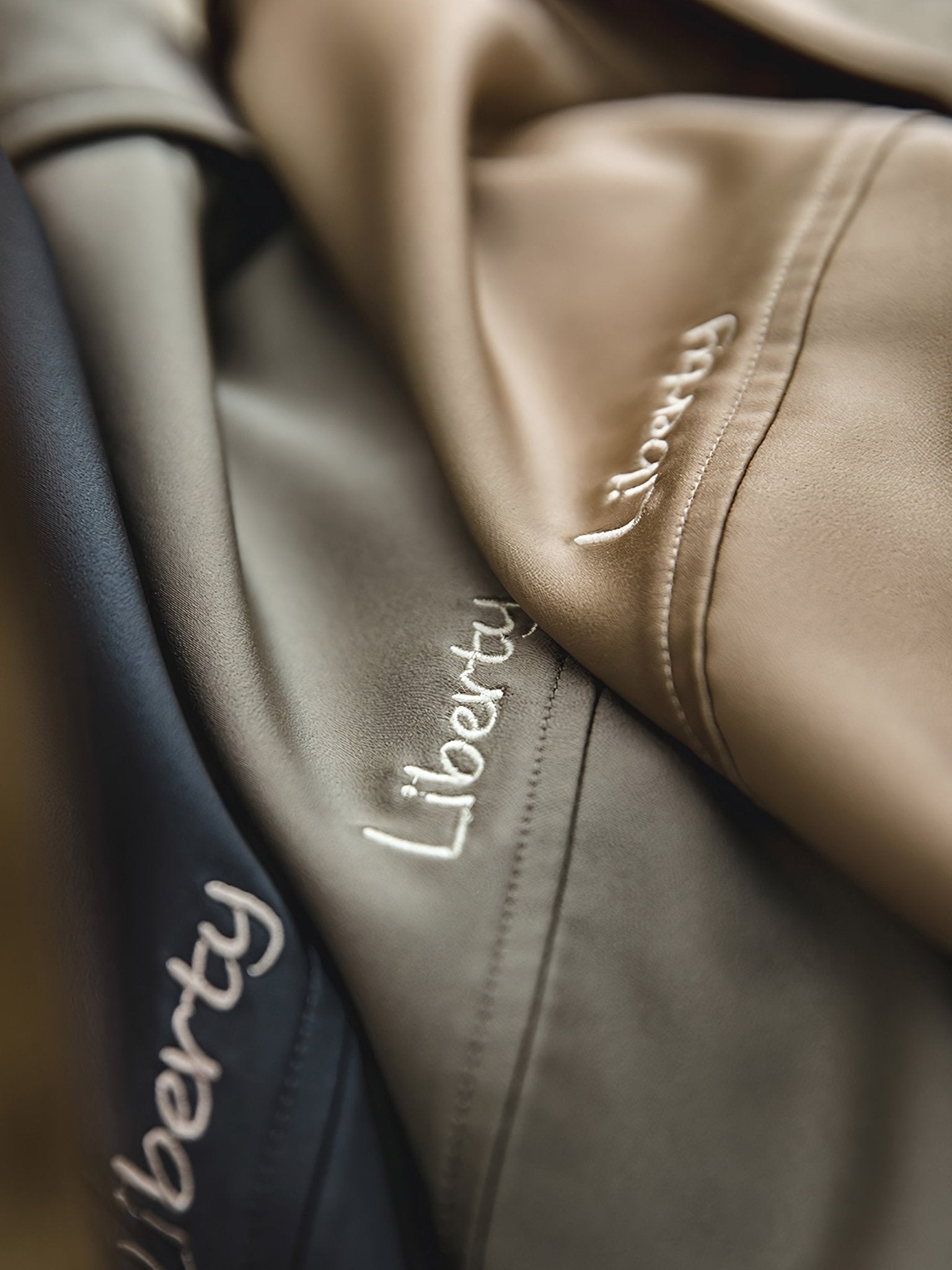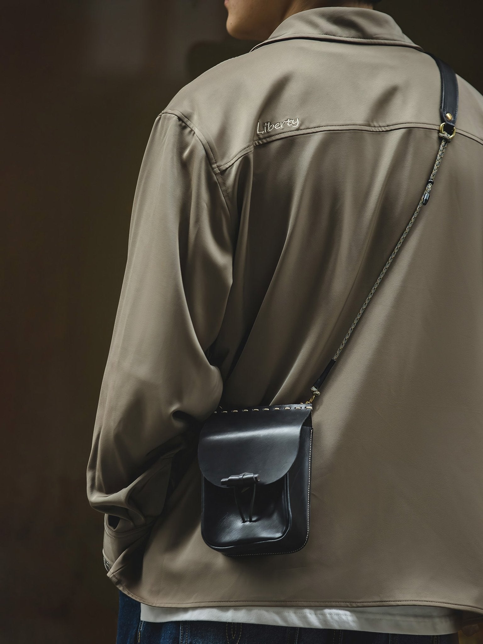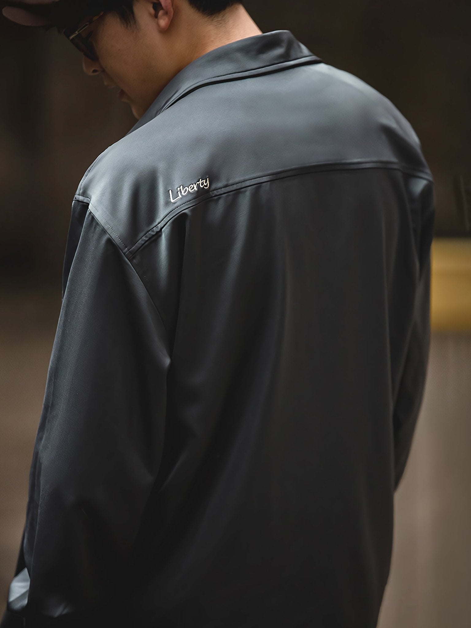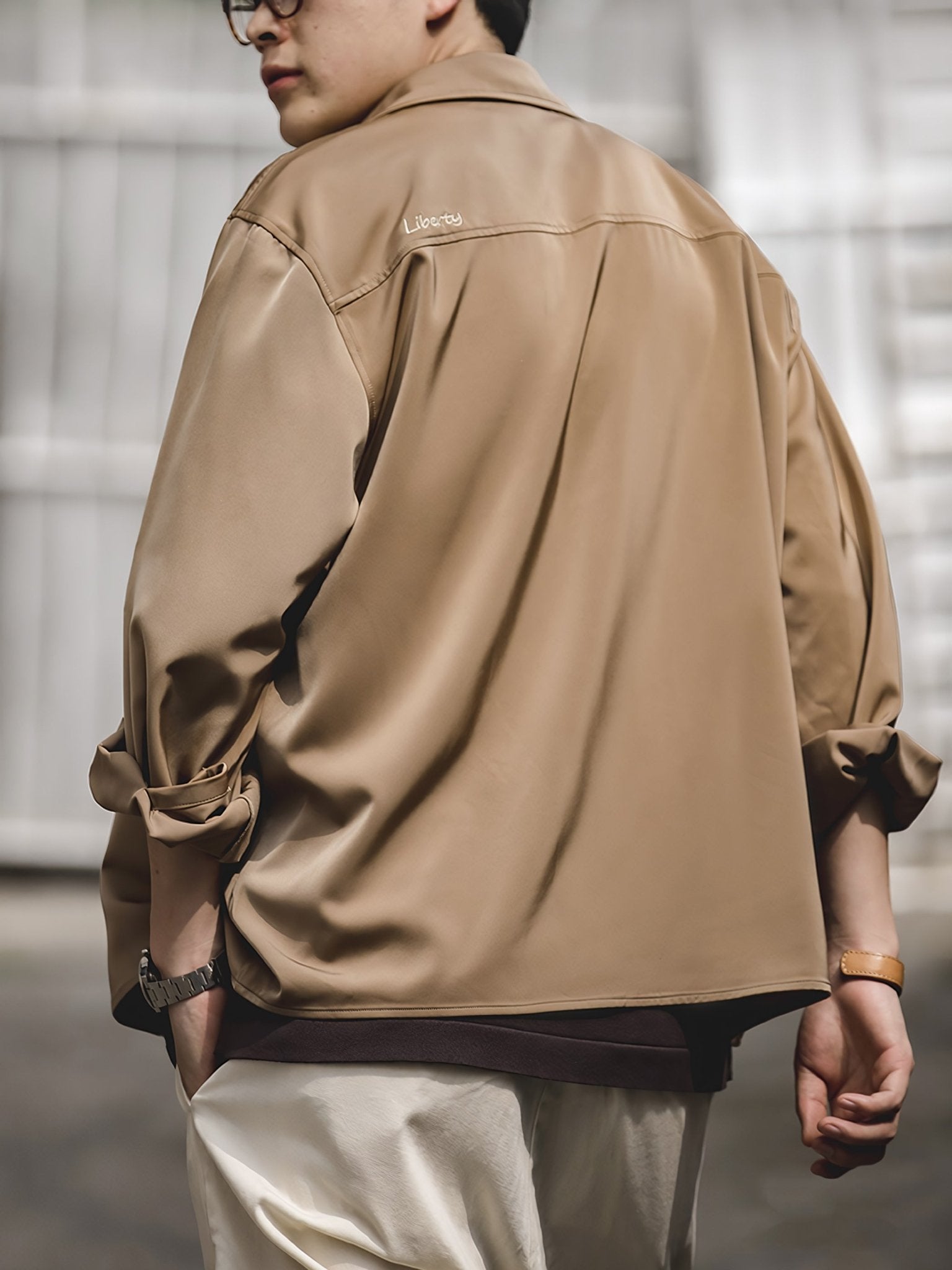 このシャツはミリタリースタイルのポケットと後肩の"liberty"刺繍が特徴的なデザインです。シンプルでありながらも個性的な要素を取り入れています。