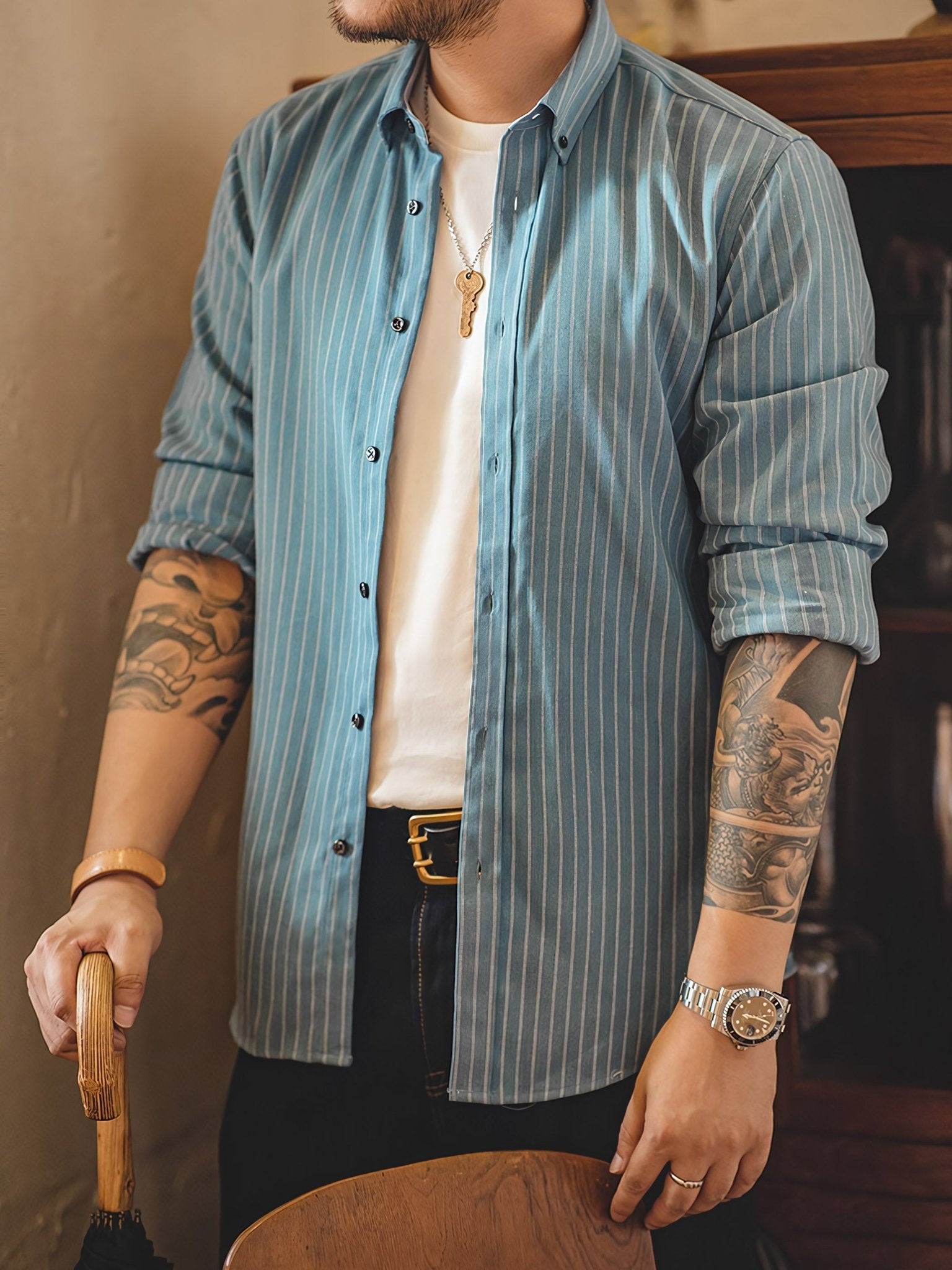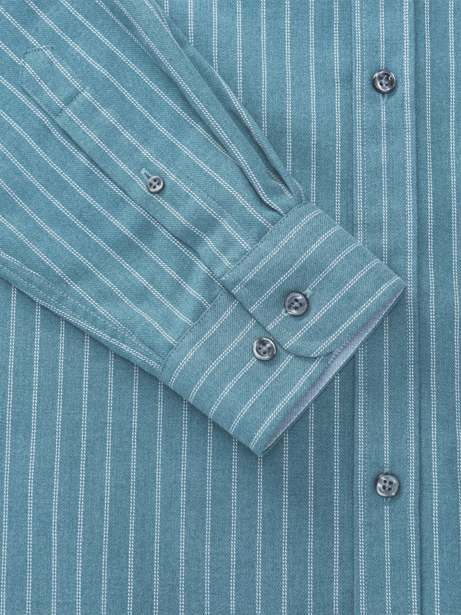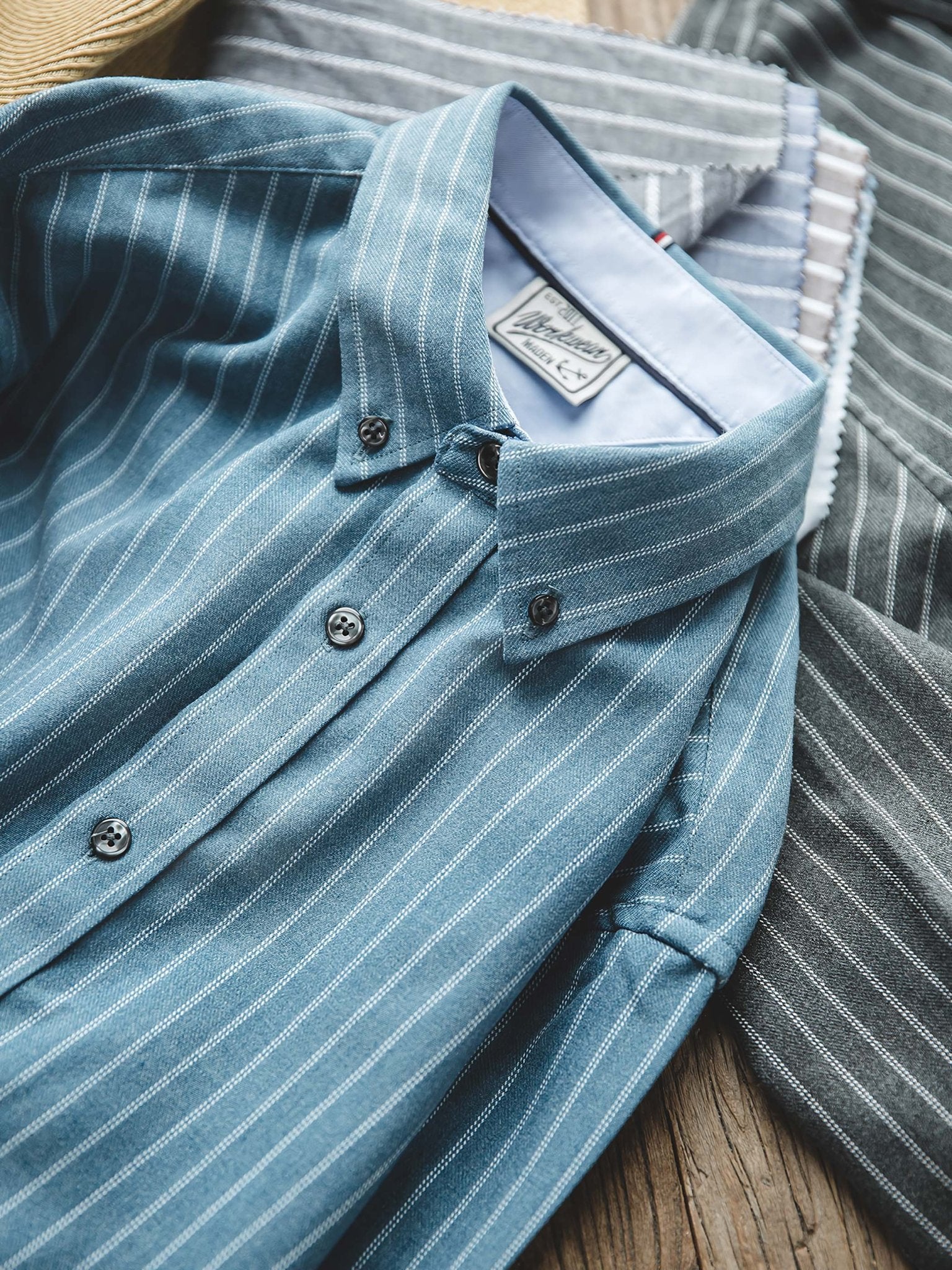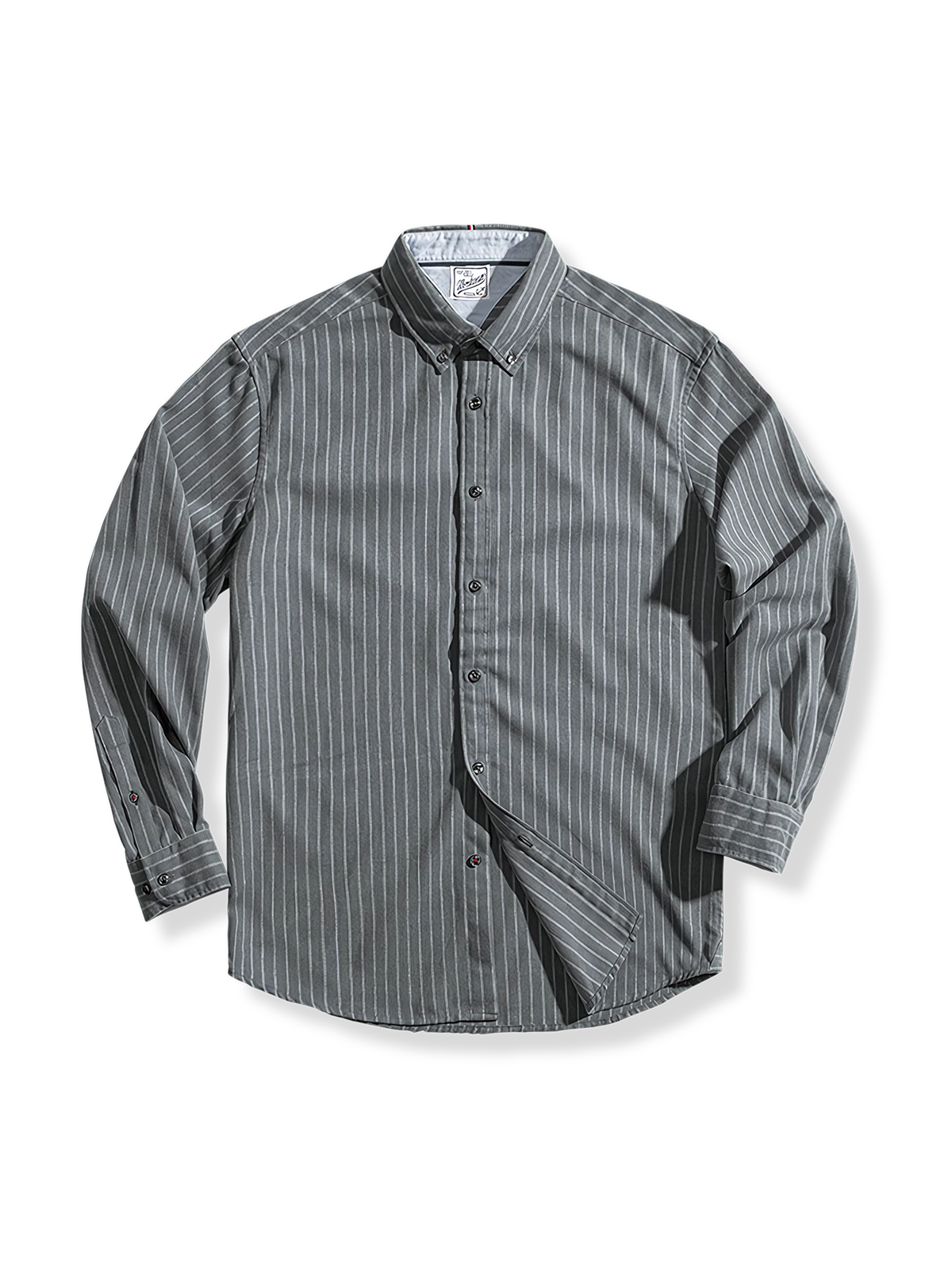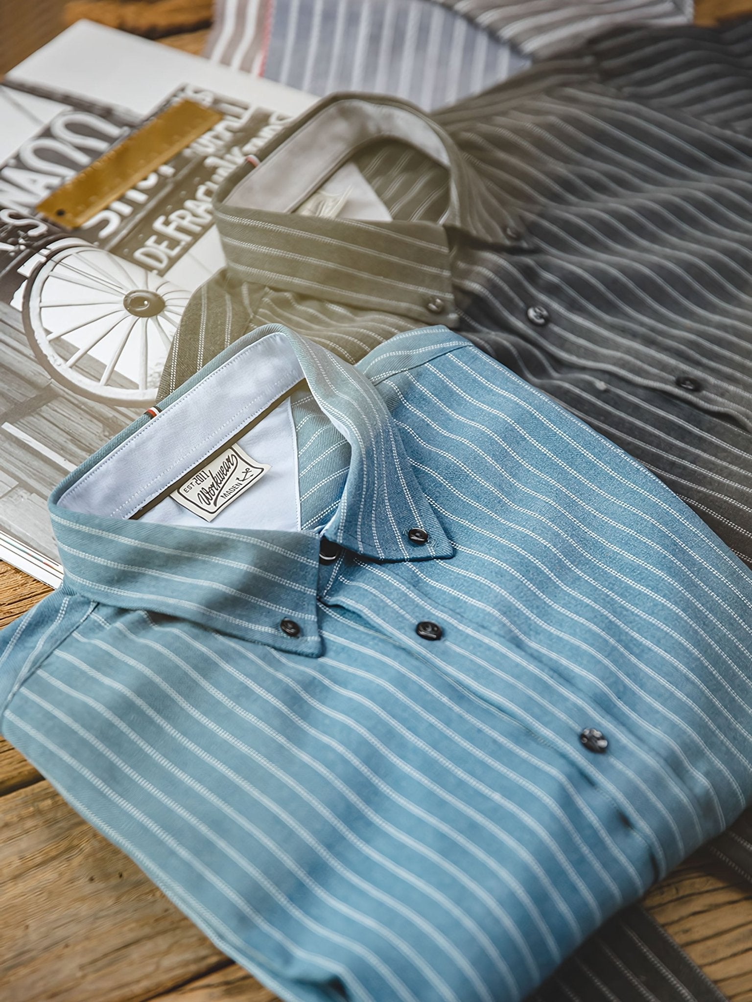 ボタンダウン仕様で、襟元がきちんと整って見えることがポイントです。また、袖口にはボタンがついており、調整が可能なので、自分に合ったフィット感で着用することができます。