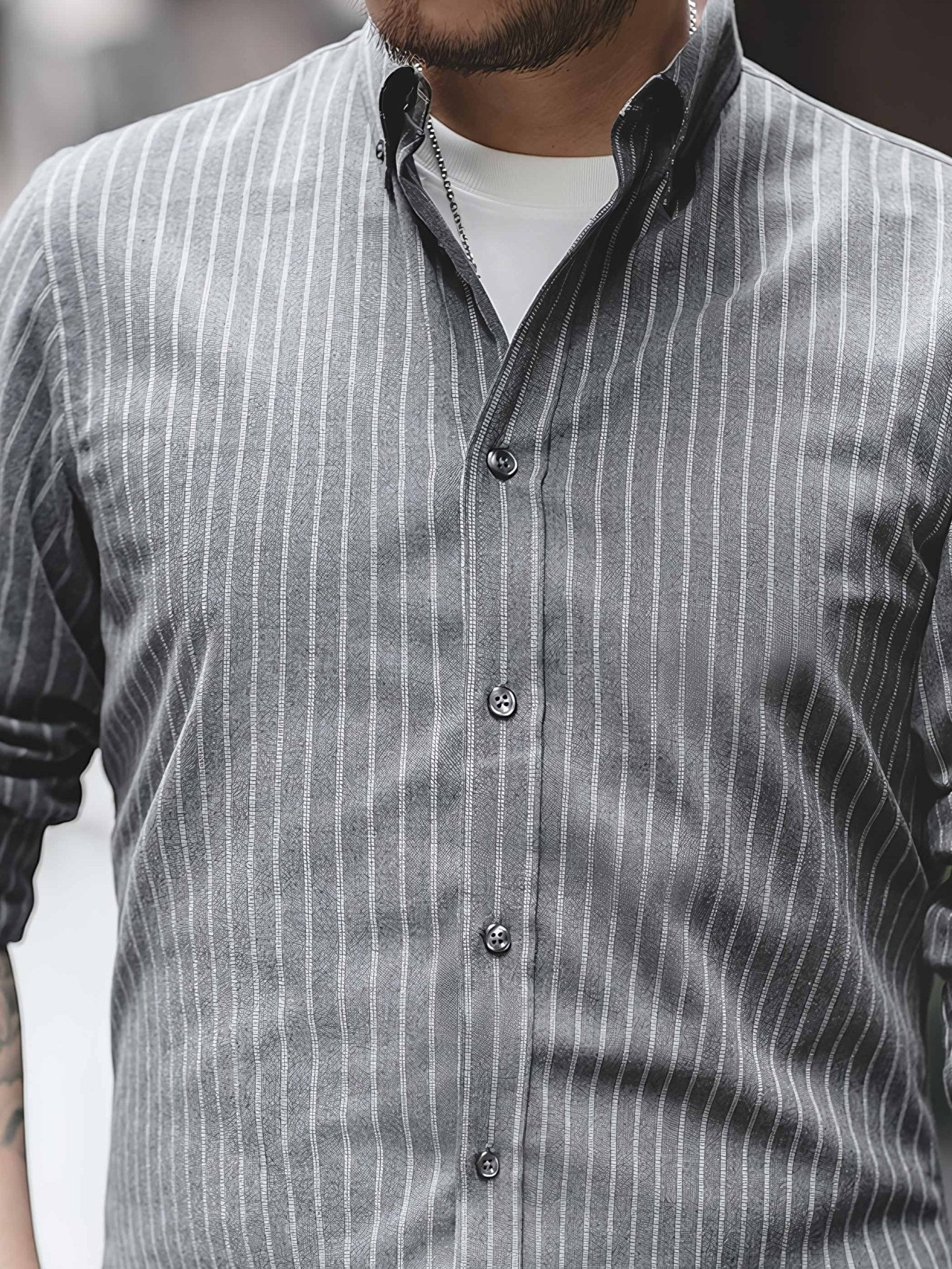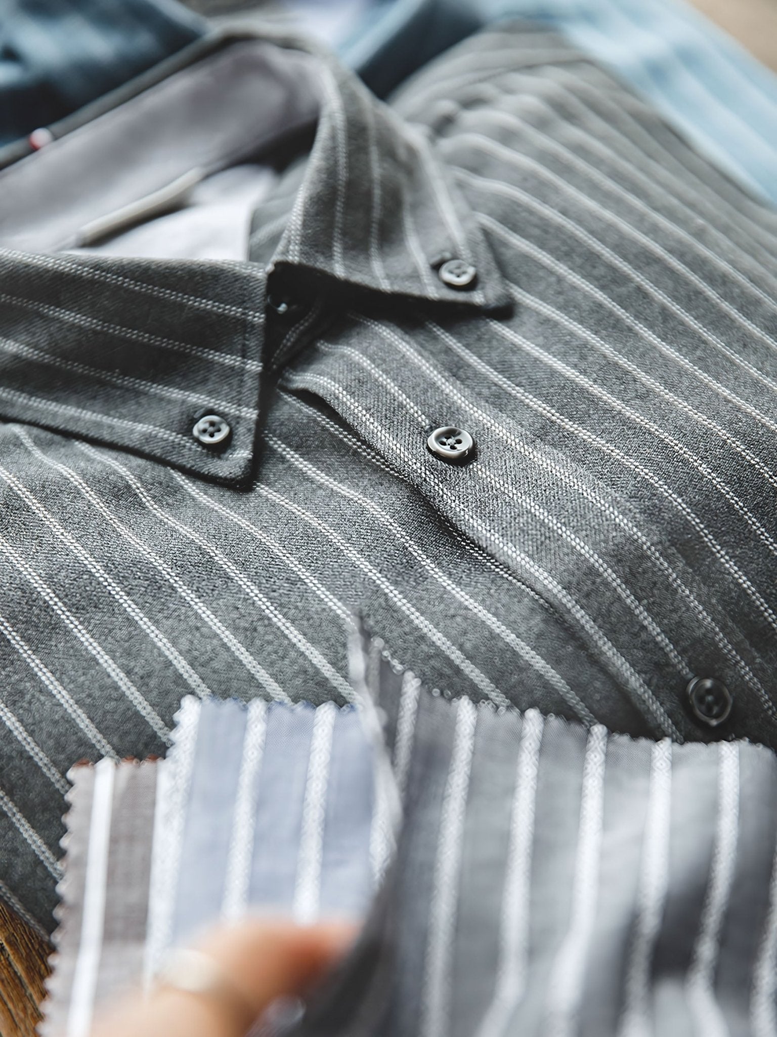 本アイテムはシンプルでスタイリッシュなデザインで、ビジネスシーンやカジュアルなシーンでの着用に最適です。また、細かいストライプ柄が特徴的で、オシャレ感を演出します。