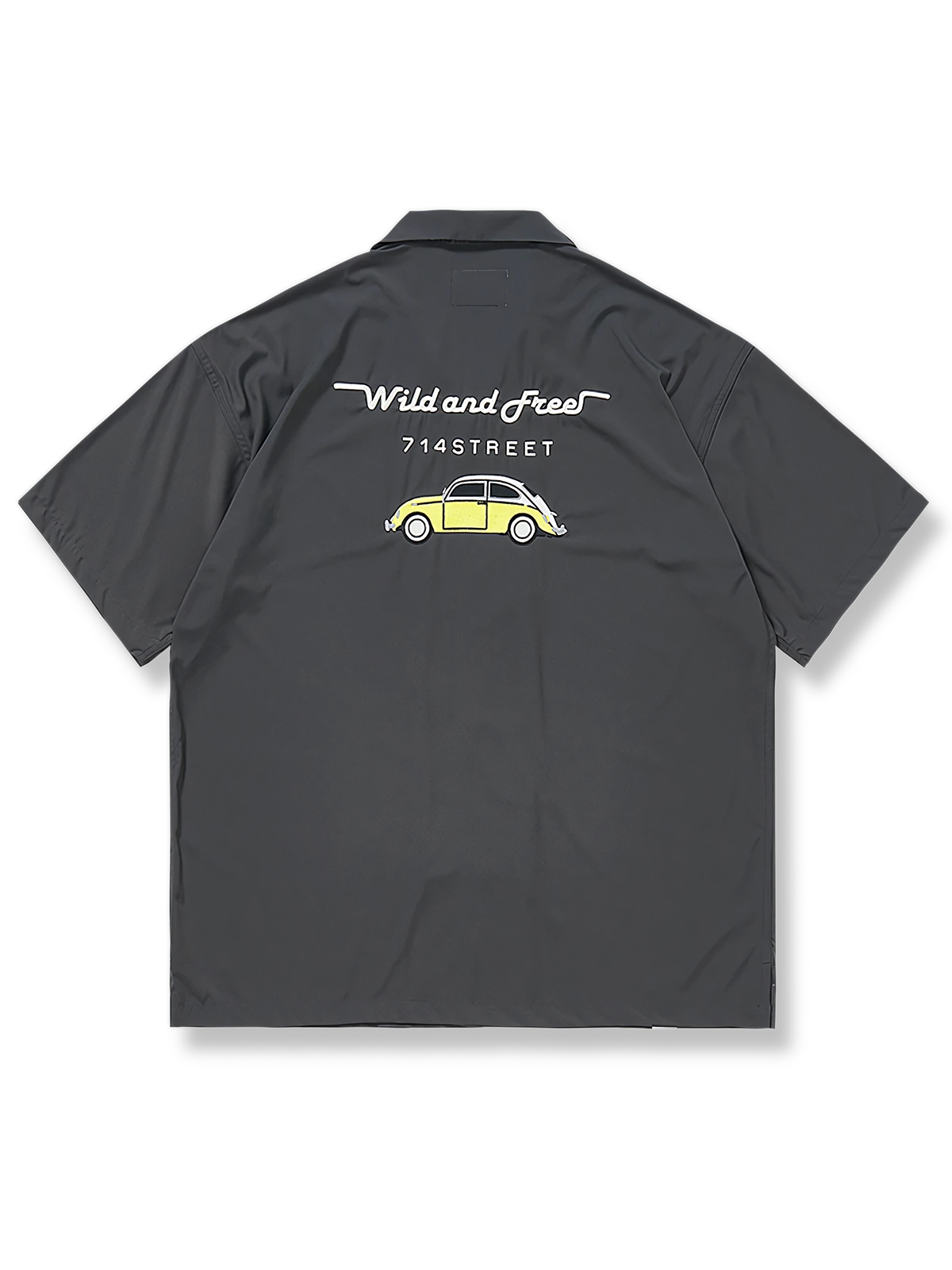 このTシャツは細部にユニークなデザインが際立っており、胸部の刺繍と後ろのコントラストカラーの小さな車の刺繍がシャツに独特の質感と楽しさを与えています。この巧妙なデザインは視覚的なポイントを追加するだけでなく、着用時に自信と楽しさをもたらします。