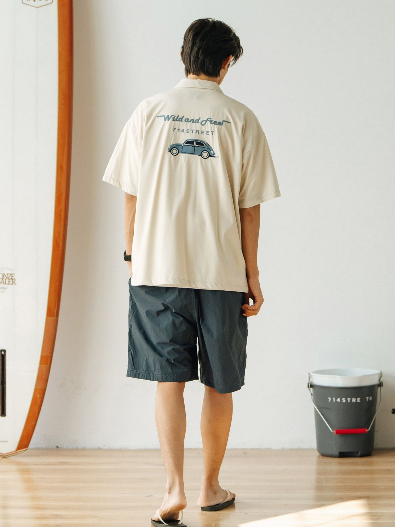特別にデザインされたキューバ襟は紳士の風格を増し、同時にカジュアル感も保ち、全体のバランスを取っています。胸部と背面の刺繍のディテールは繊細で楽しい雰囲気を醸し出し、細部へのこだわりを表現しており、Tシャツに個性を与えています。