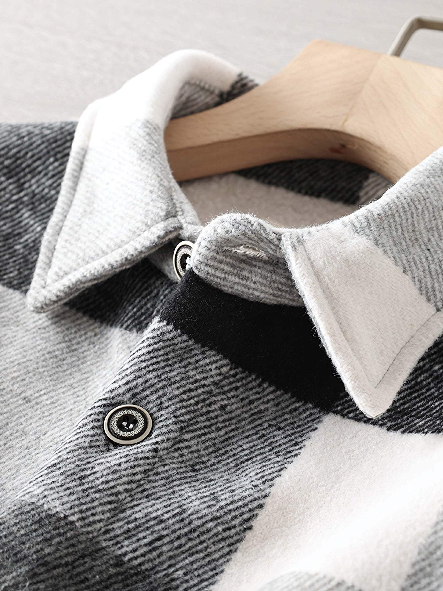 このシャツジャケットは、大きなブロックチェック柄が特徴で、カジュアルファッションにぴったりです。ウール混紡素材にすることできれいな印象もプラス、起毛感を表現したので、一点投入するだけで完成度の高いおしゃれを楽しめる。