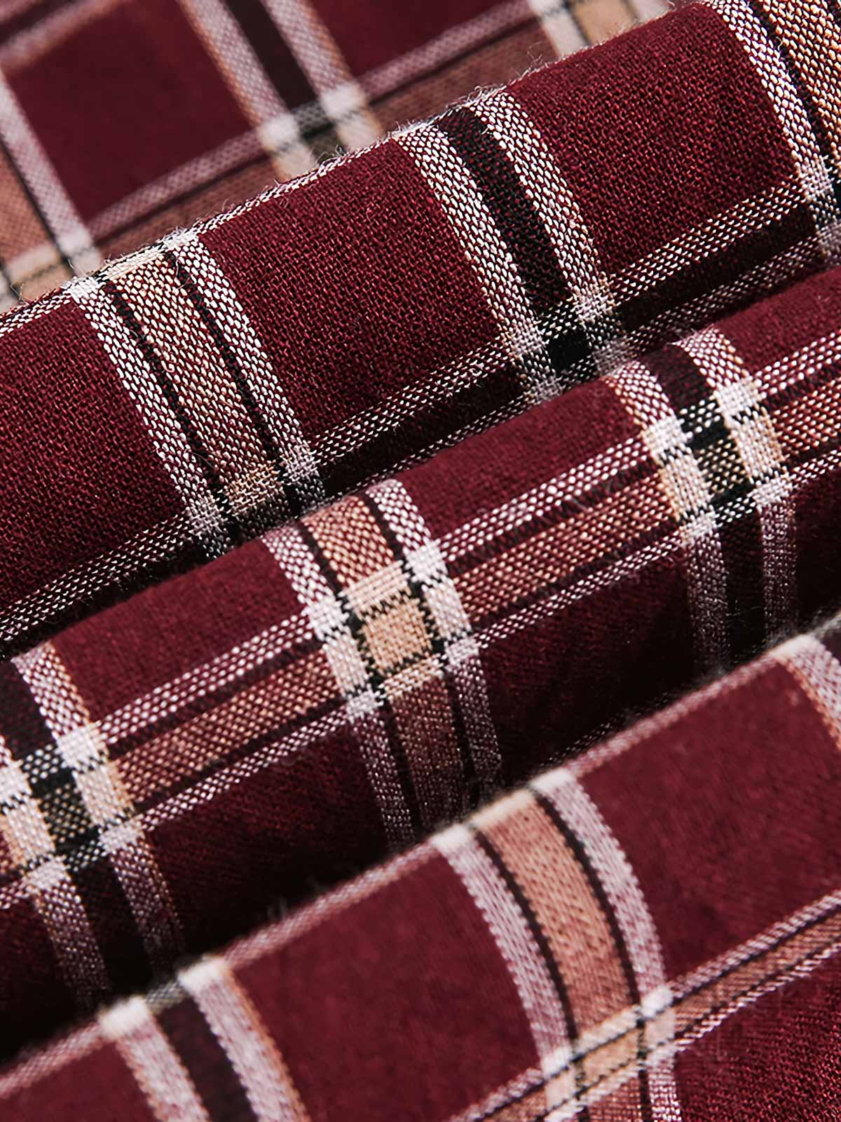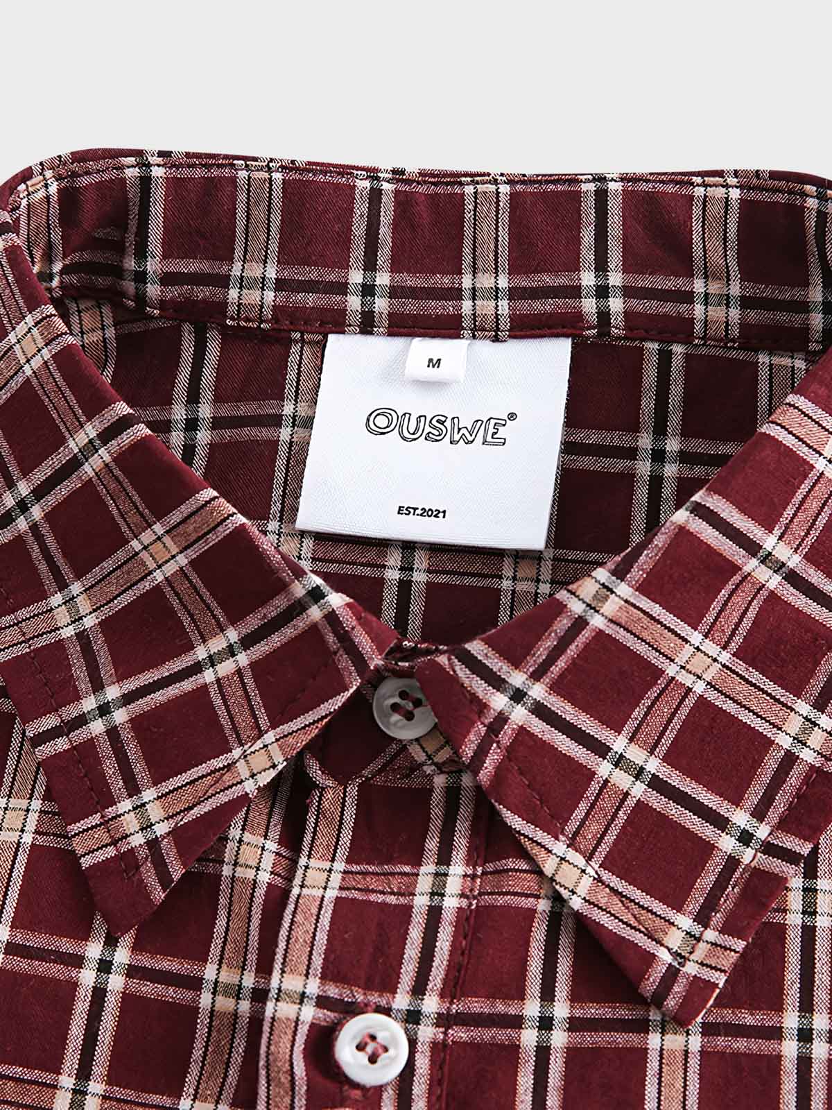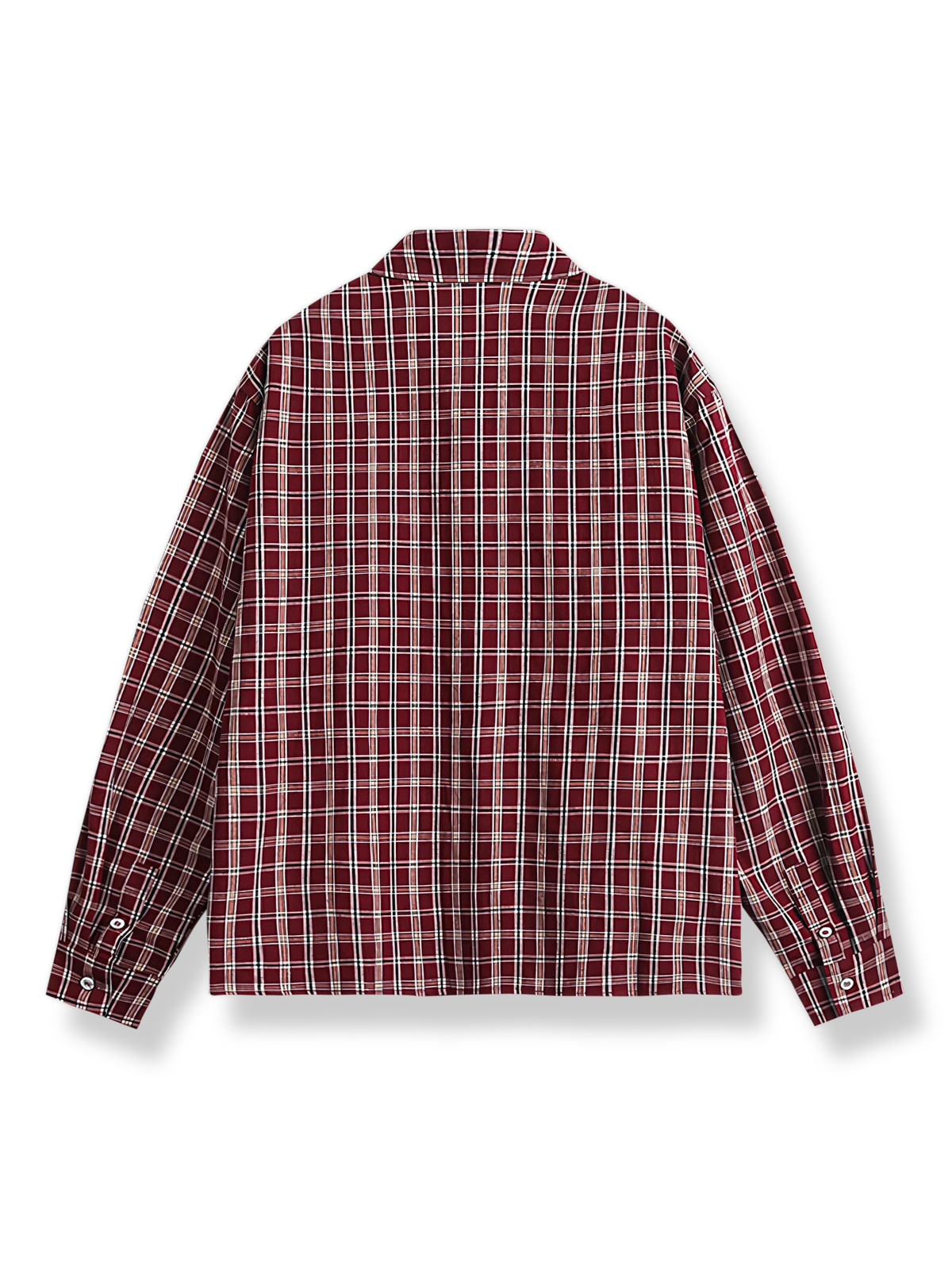このシャツはイギリススタイルをデザインのベースにしており、チェック柄は19世紀のスコットランドに源を発しています。チェック柄はかつて貴族の狩猎時の象徴的な服装であり、現在では男性のクローゼットの中でクラシックな要素に進化しました。ワインレッドとダークトーンの交差は控えめで内向的な雰囲気を生み出し、伝統と現代の美的融合への理解を表現しています。