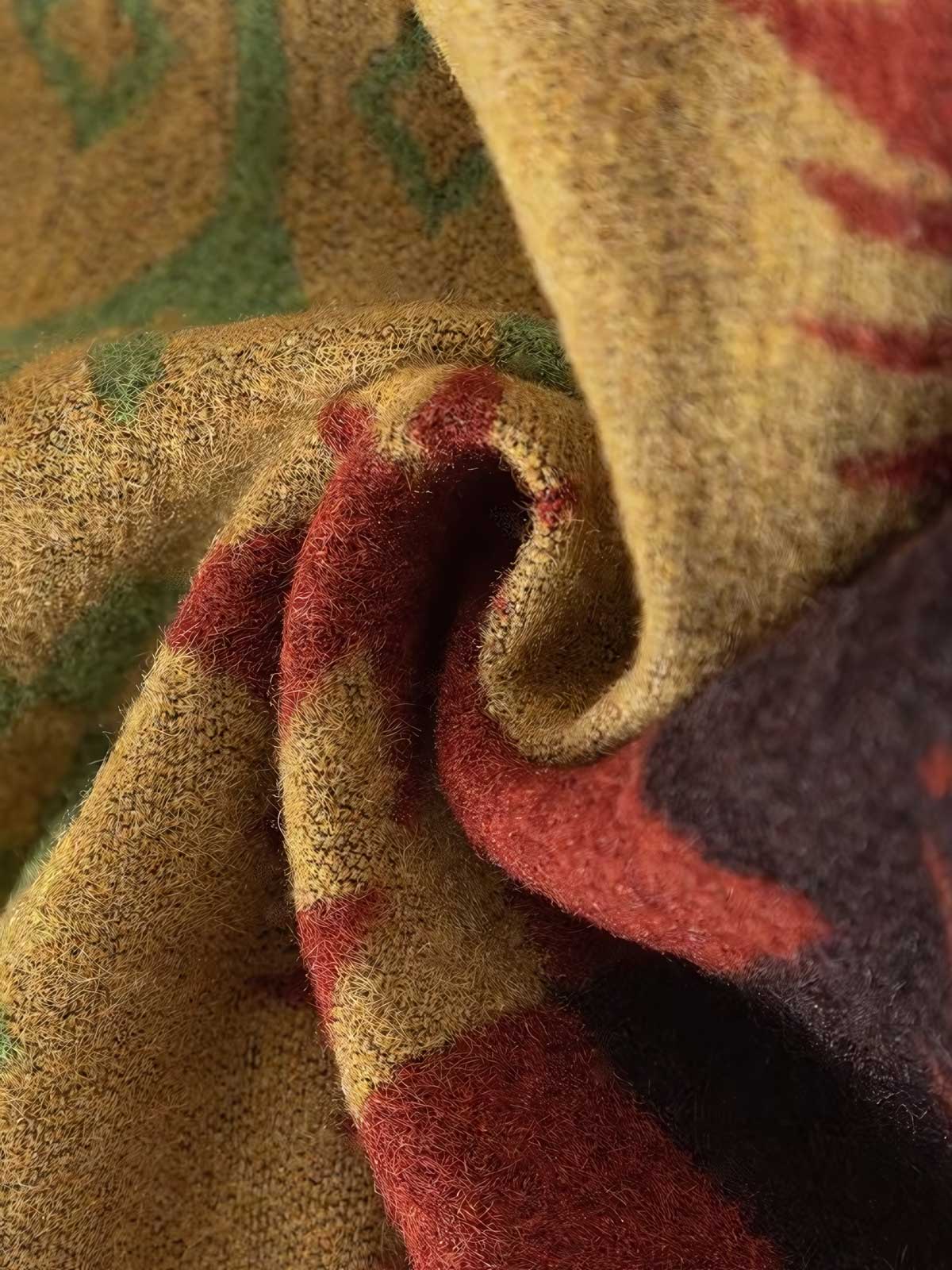 この長袖ウールシャツは、独特なエスニックスタイルのパターンを採用しており、これらのパターンは特定の文化の伝統衣装から着想を得て、現代のファッションデザインで新たな解釈が加えられています。エスニックスタイルの服は、その豊かな色彩とパターンで人々に愛されており、多文化の美的特徴を示すと同時に、アイデンティティと伝統の象徴でもあります。