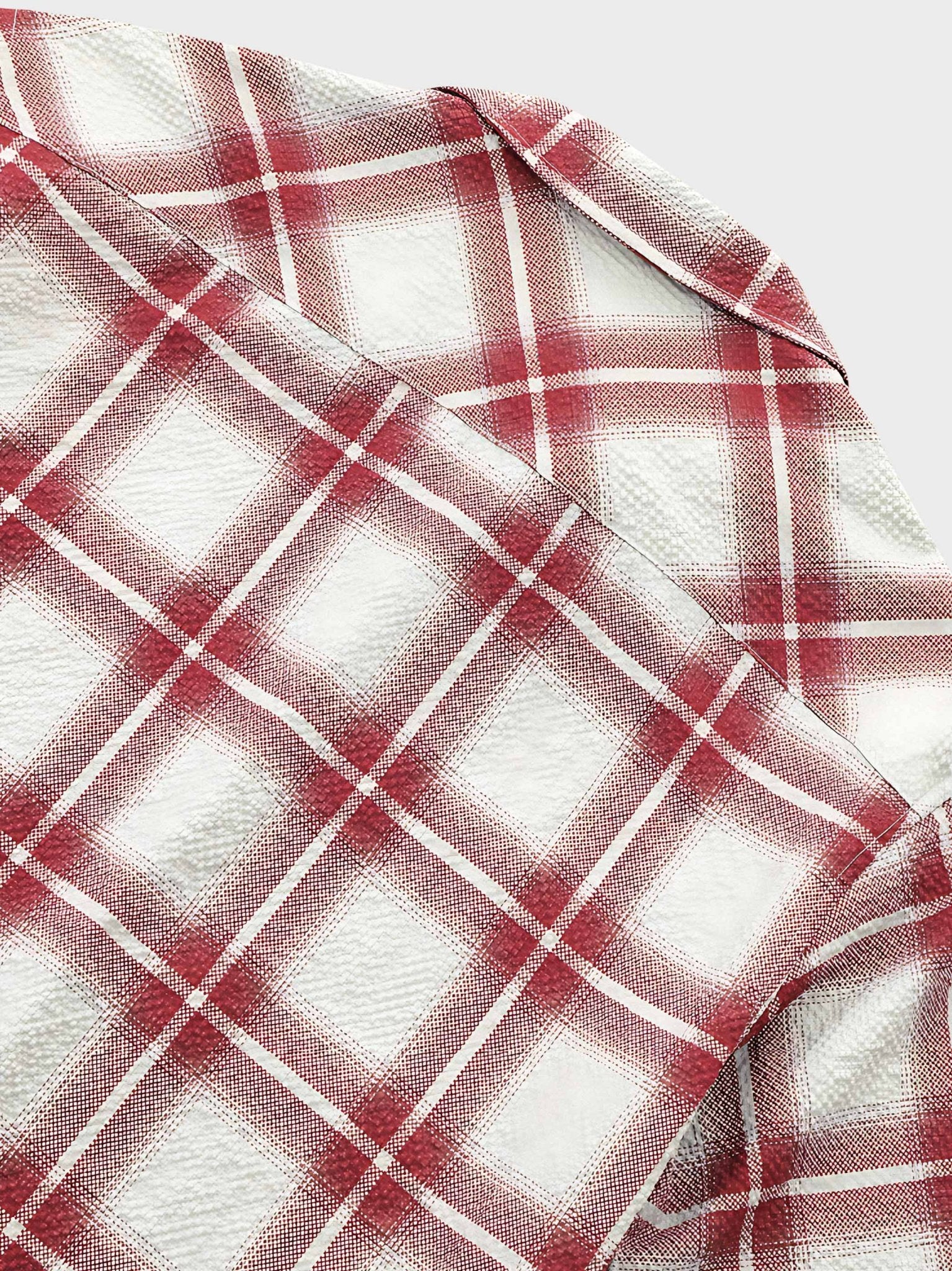このシャツはシフォン素材を使用しており、波打つようなストライプ柄が特徴です。シフォン素材の凹凸感により、肌に触れる面積が少なく、涼しい着心地を感じられます。