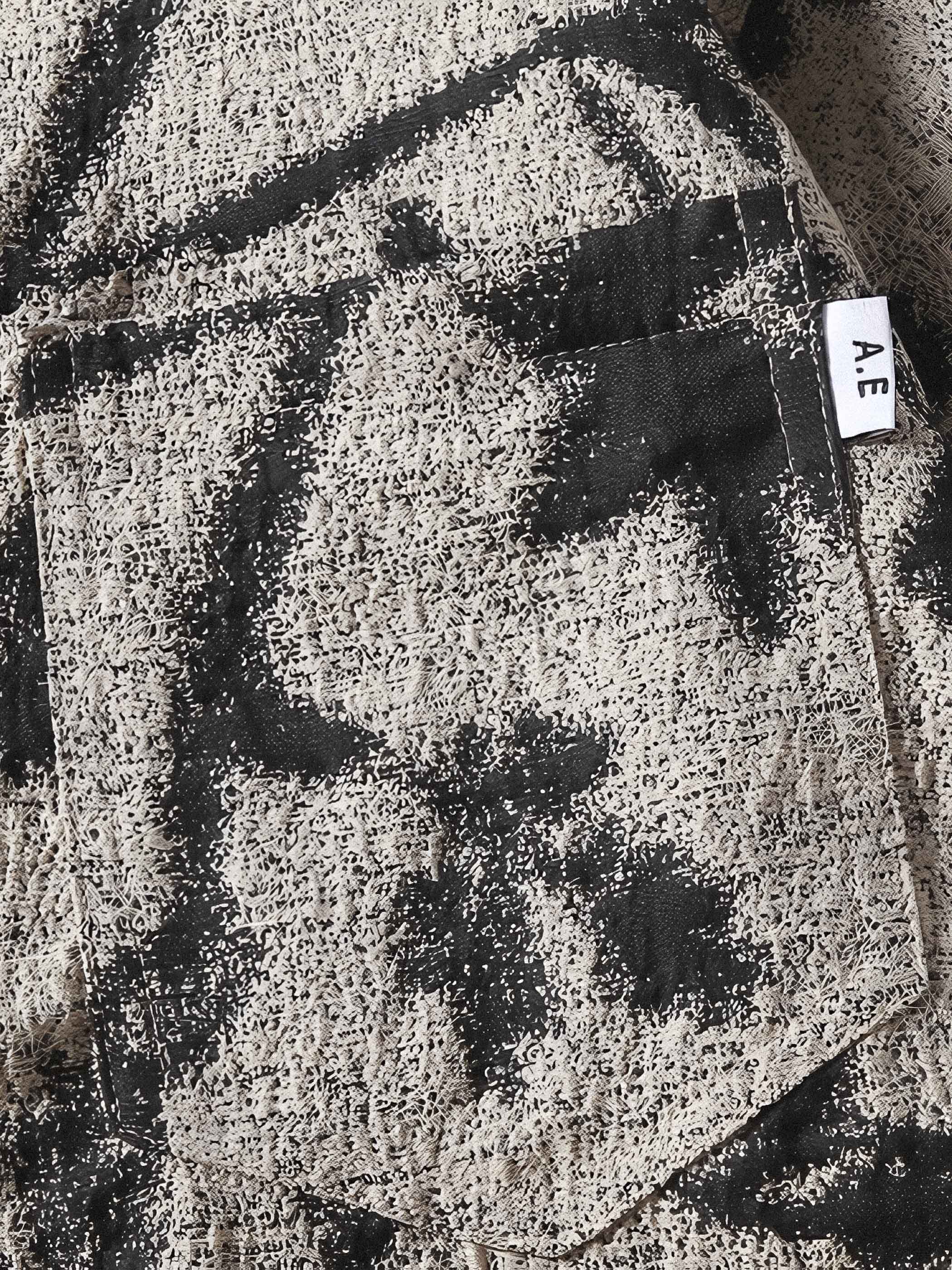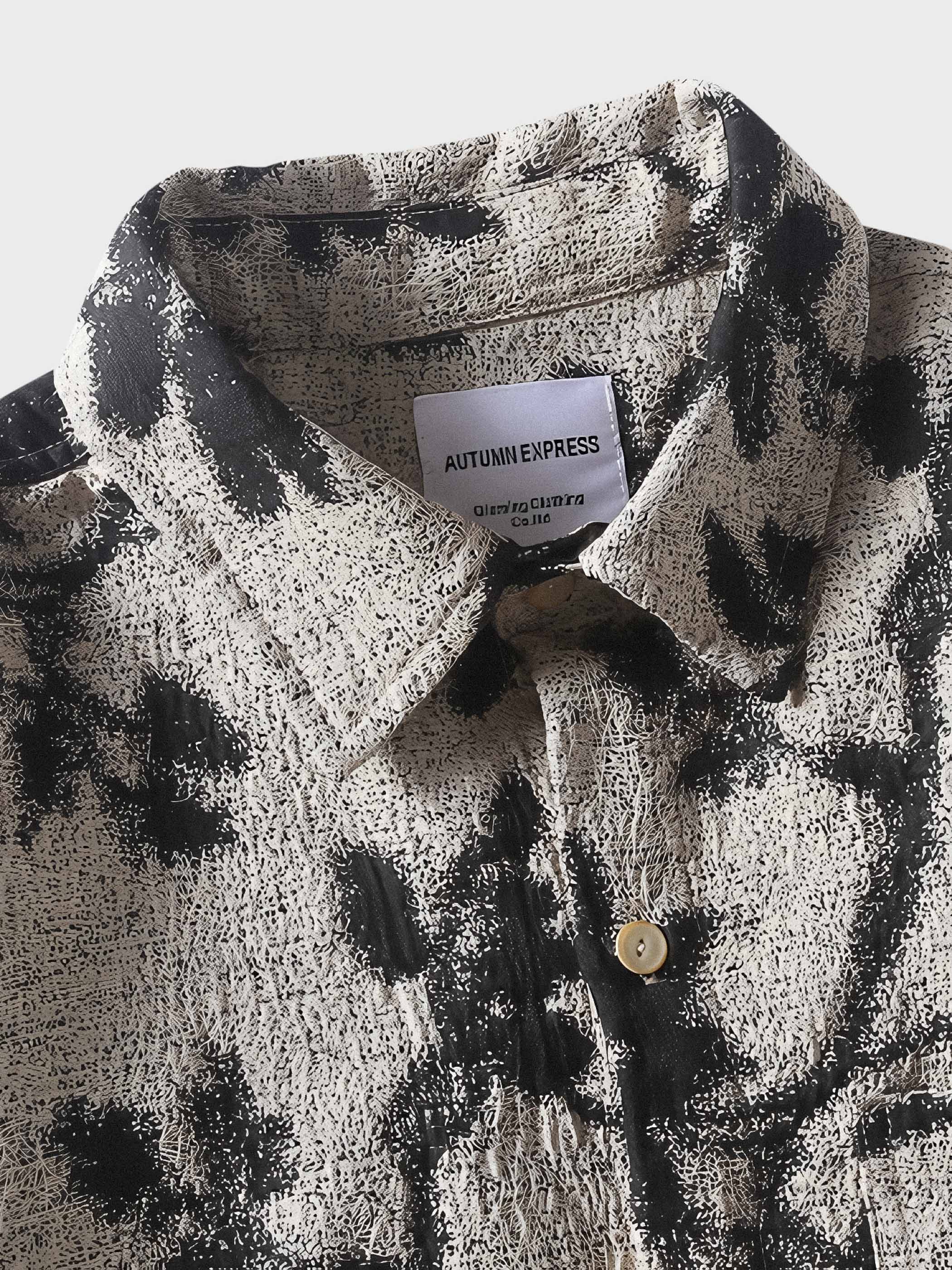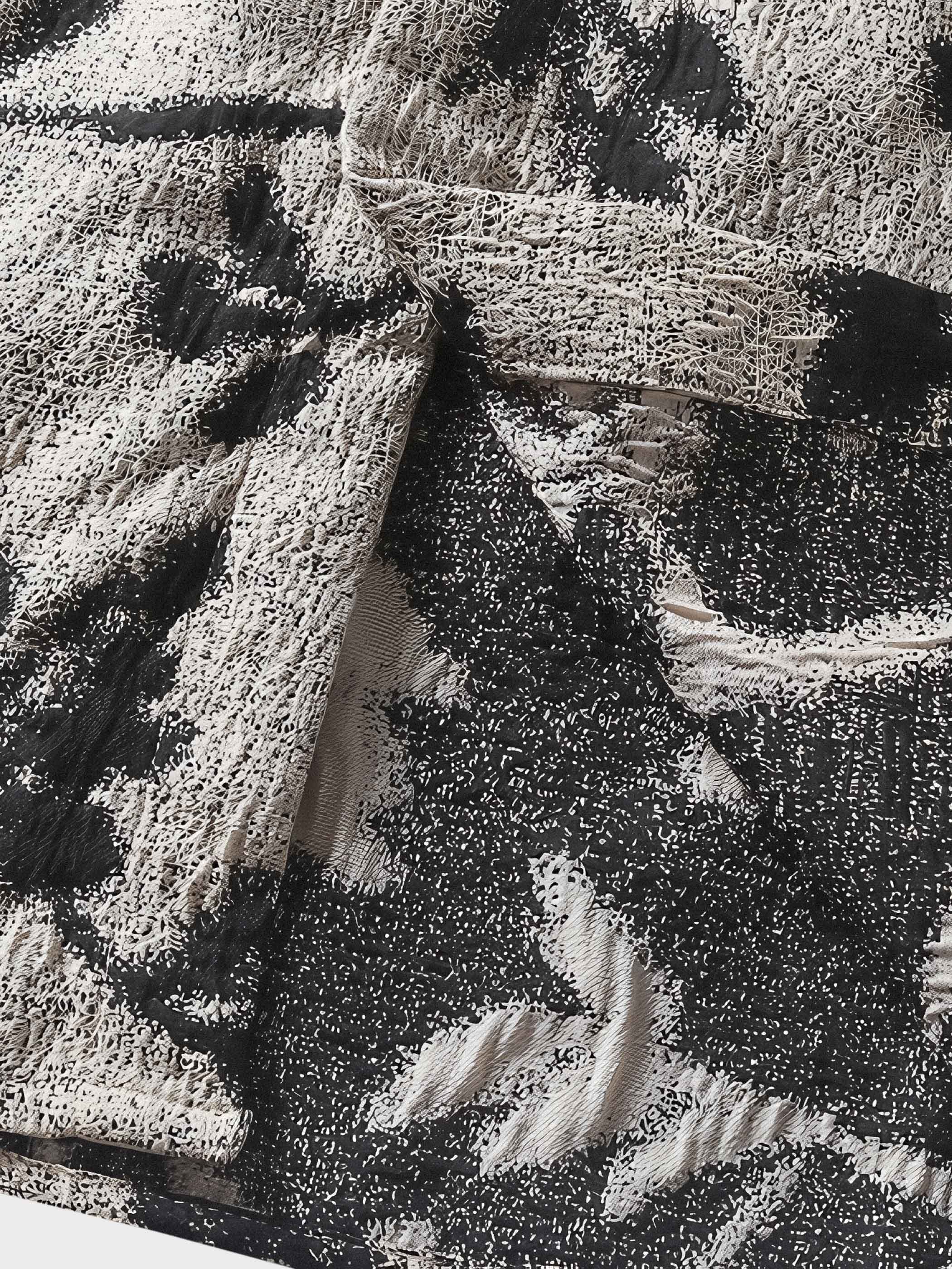 水墨風の図案が特徴の、ゆったり型のシャツが登場しました。あっさりとした水墨画風の迫力ある植物柄が目を引き、フロントから背面にかけてシブく描かれています。左胸にはポケットが付いており、小物を持ち運ぶのに便利なディテールも兼ね備えています。