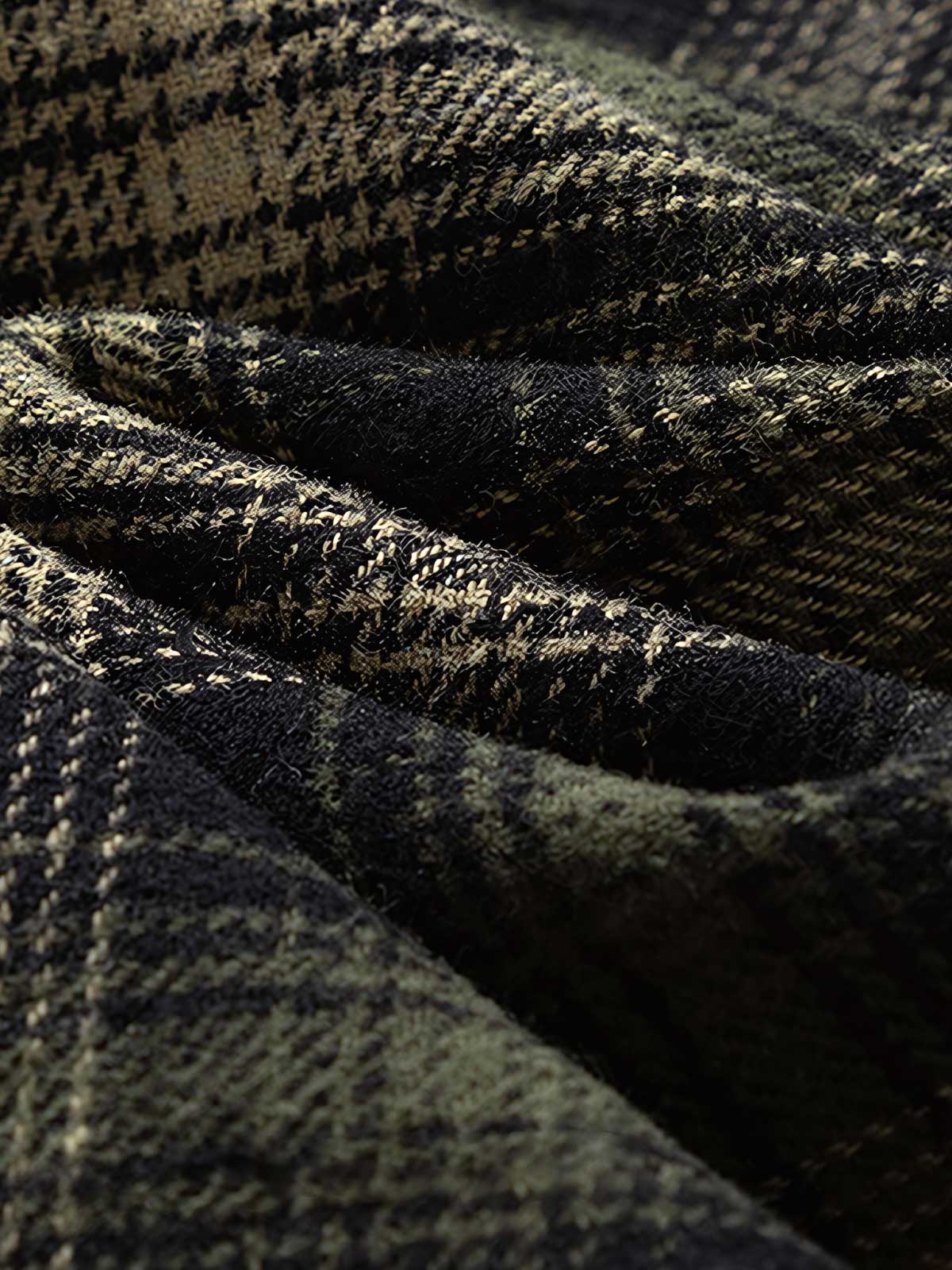 この深い色合いのチェック柄シャツは、英国の伝統的な服装のクラシックな要素を表しています。歴史的に、チェック柄の長袖シャツは男性のワードローブに欠かせないアイテムであり、そのデザインの起源はスコットランド高地に遡ります。数世紀にわたる進化の中で、チェック柄は永遠のファッションアイコンとなりました。