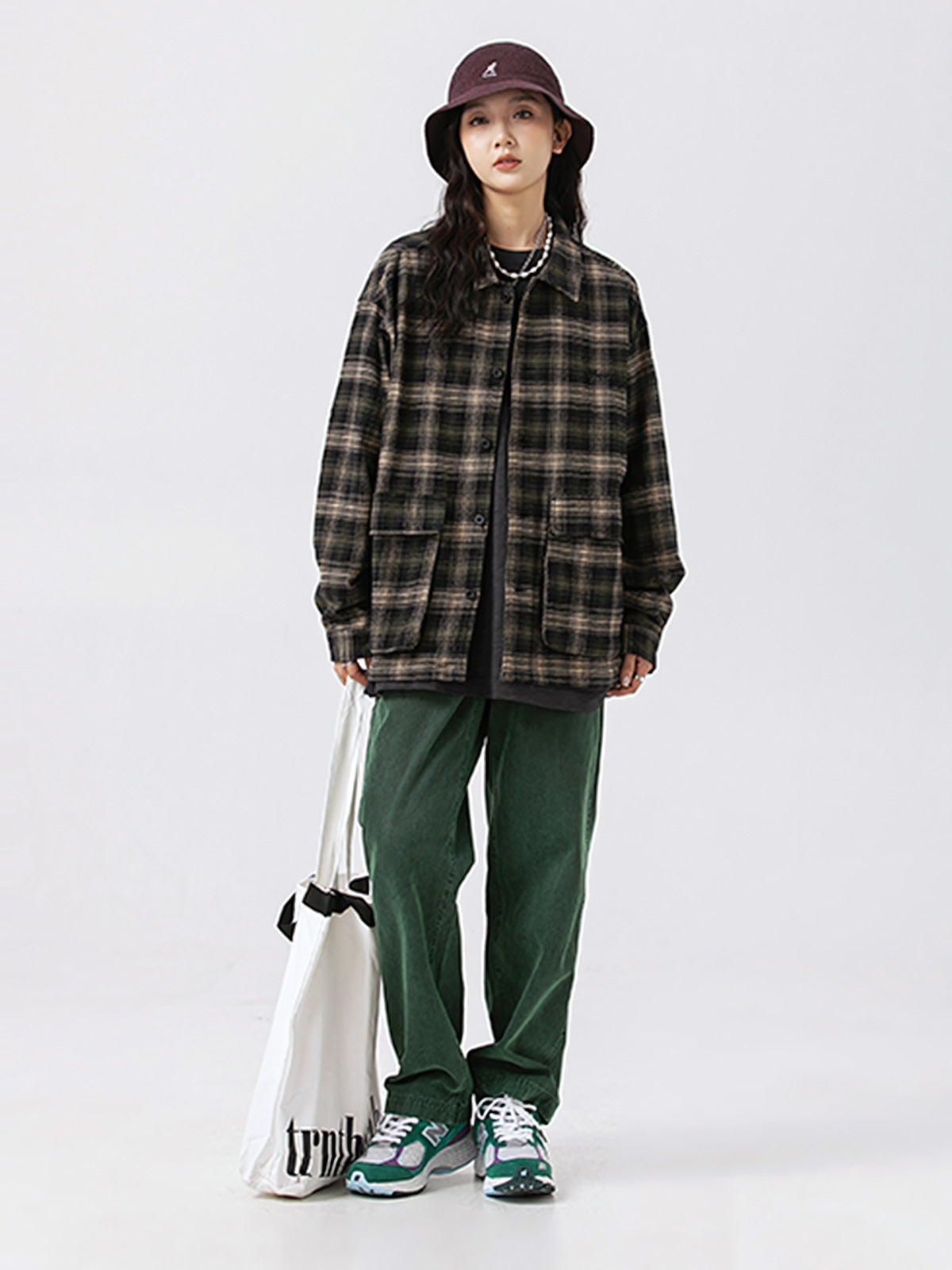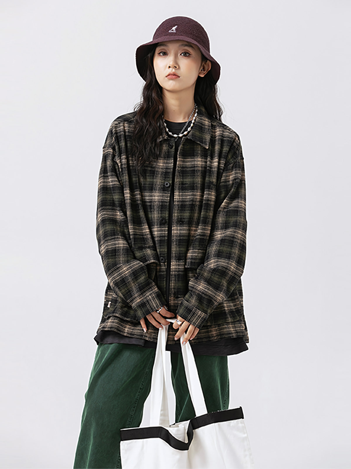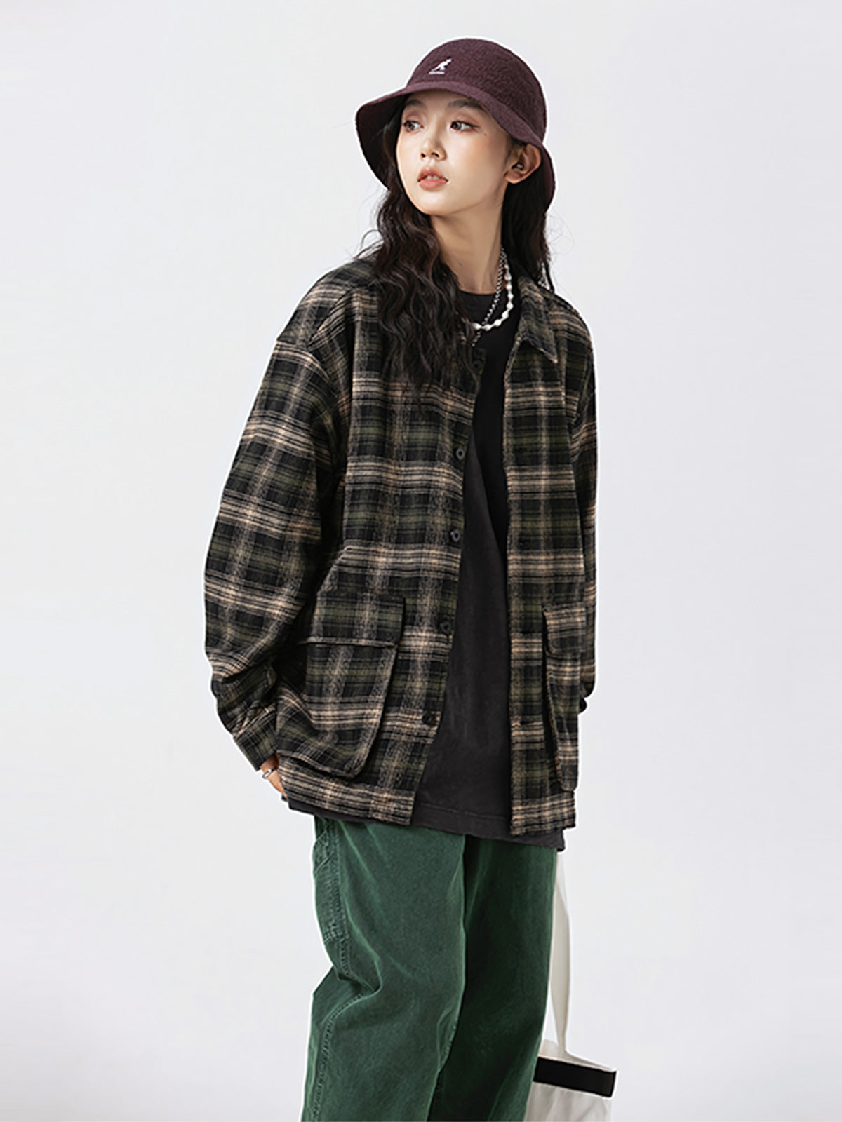 このチェック柄シャツは、ジーンズやカジュアルパンツとの組み合わせが適しており、カジュアルながら洗練されたスタイルを作り出します。シンプルな白や灰色のTシャツをインナーにして、デニムまたはレザージャケットを重ねることで、スタイルに奥行きを加えることができます。