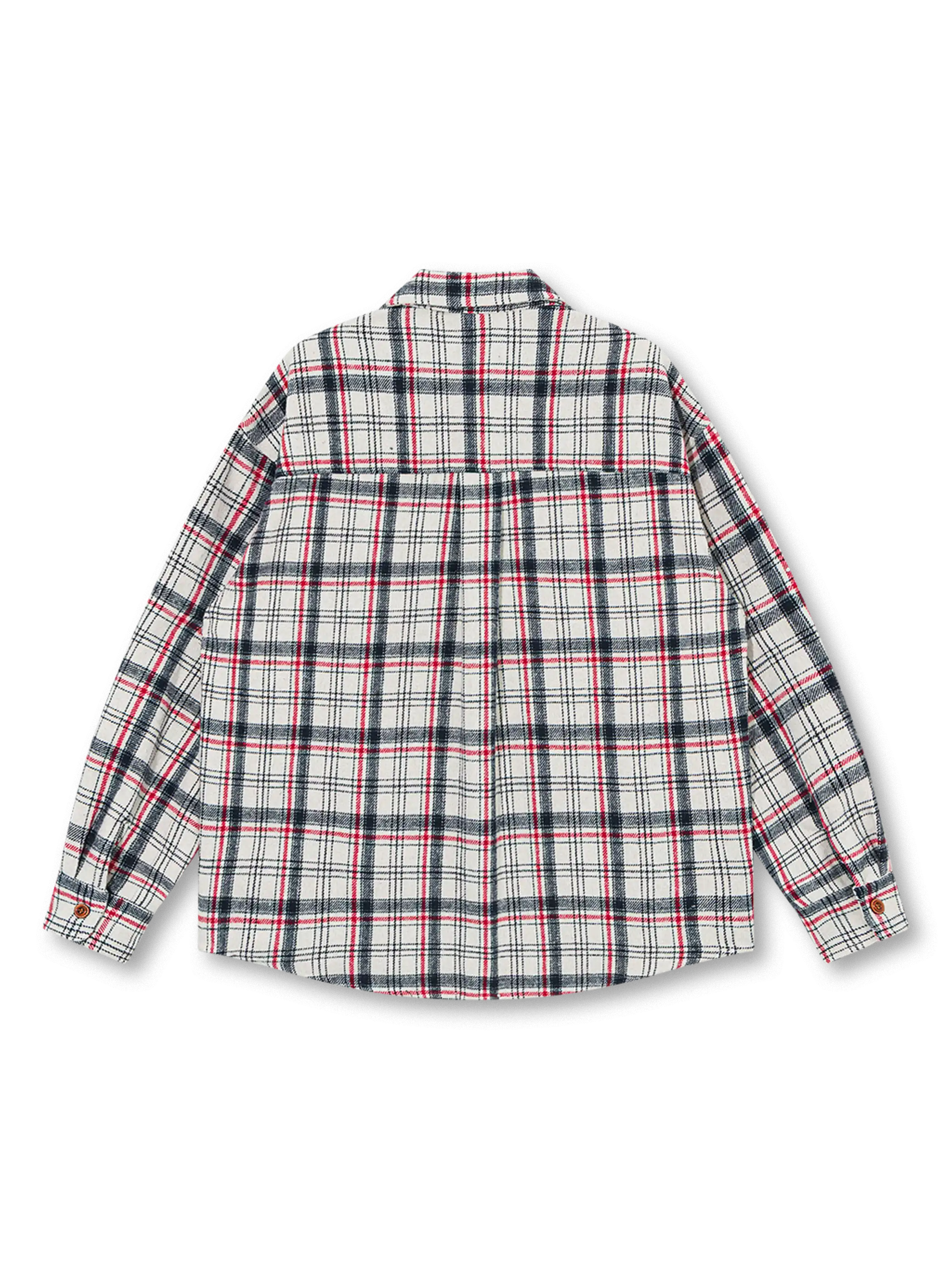 ヴィンテージらしいチェック柄とハリのあるポリエステル生地で男らしさを引き立てる耐久シャツ。