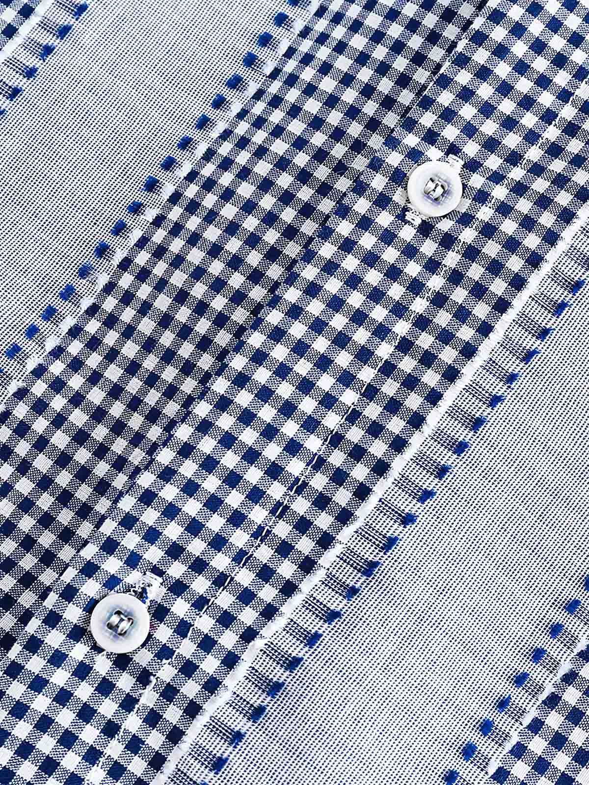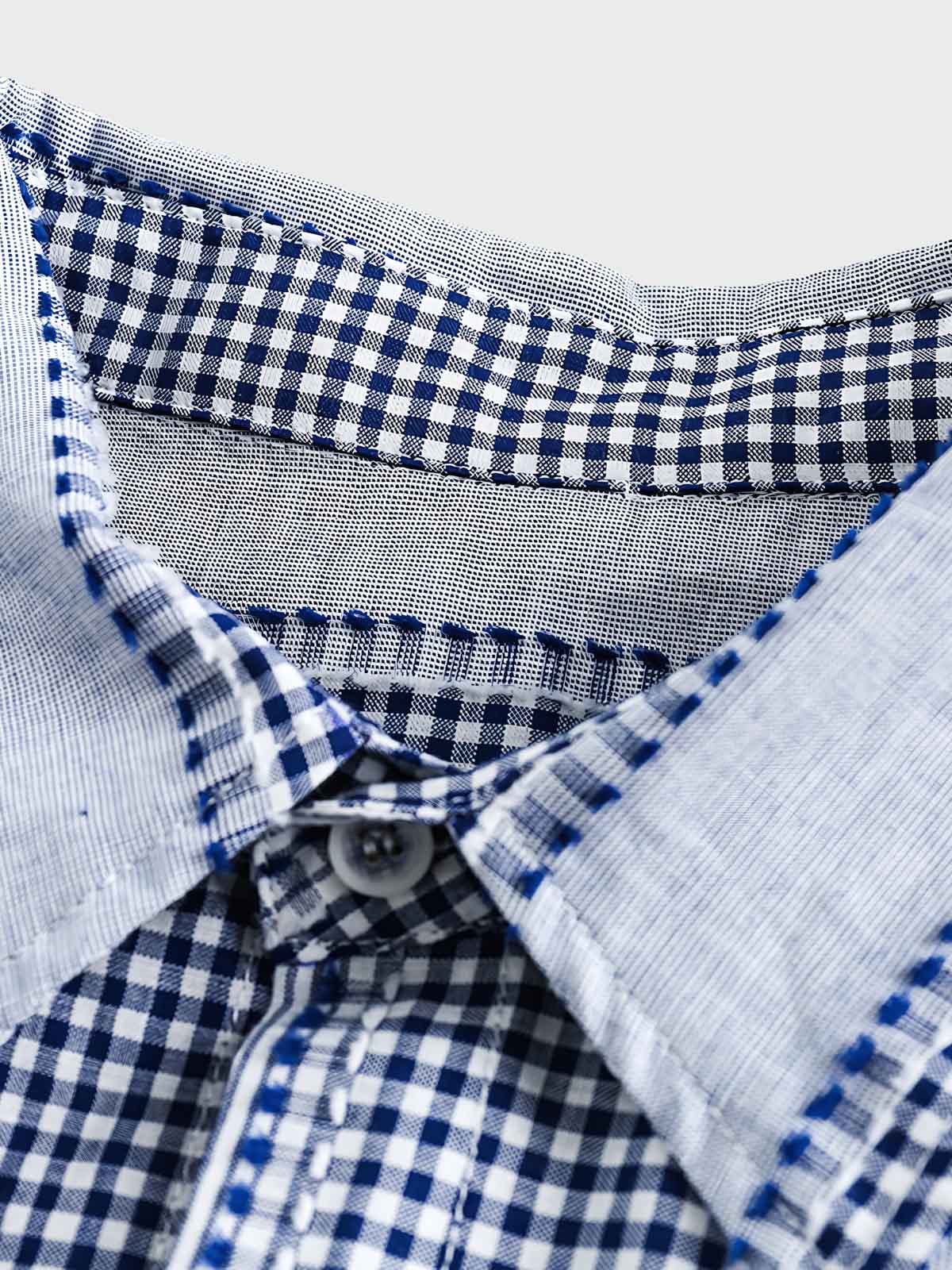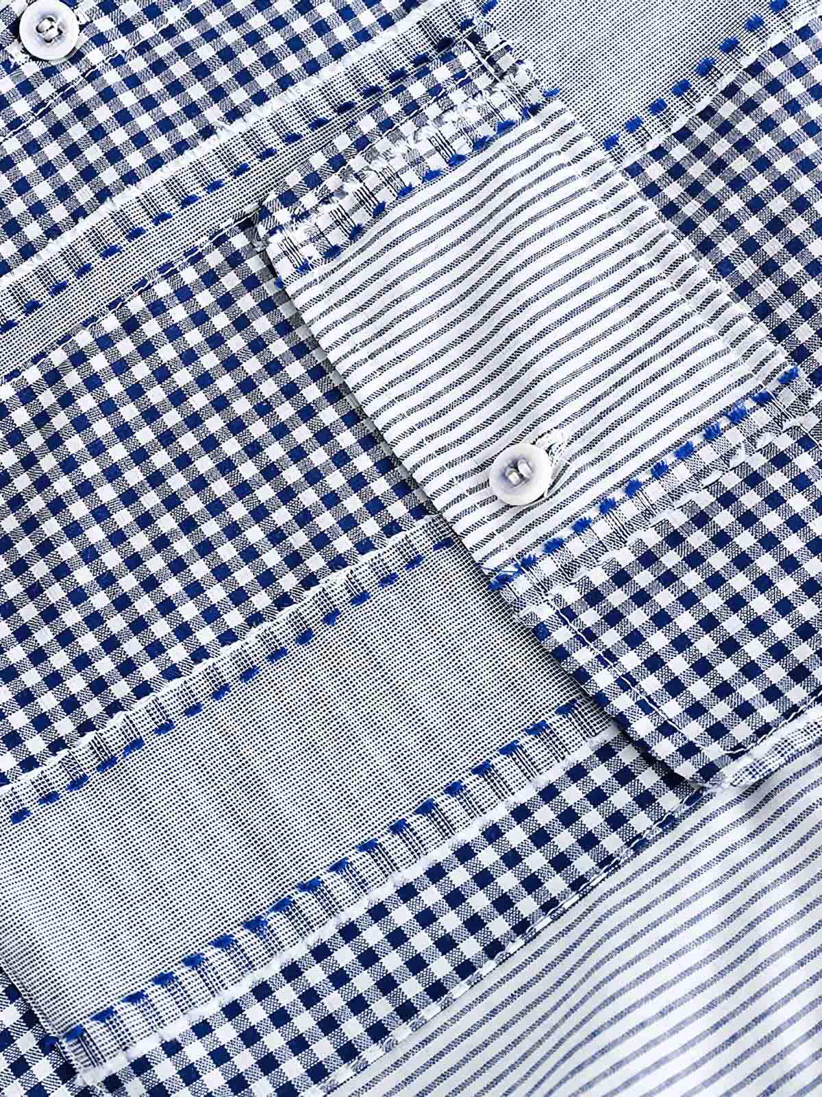 肌触りの良いコットン素材を使用し、シャツの通気性と持続的な着心地を保証しています。細部にわたるカラーブロックのチェックパッチワークは、視覚的にユニークなデザインスタイルを形成し、ブランドがディテールへのこだわりを示しています。胸ポケットのフラップデザインは、実用性を備えつつ、カジュアルなワークスタイルの雰囲気を加えています。