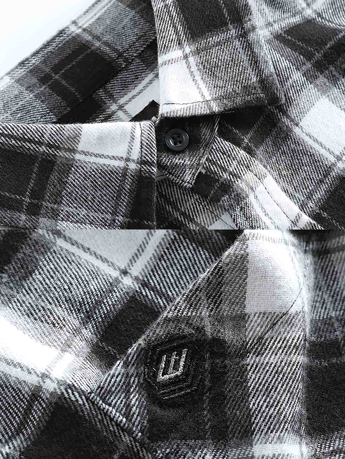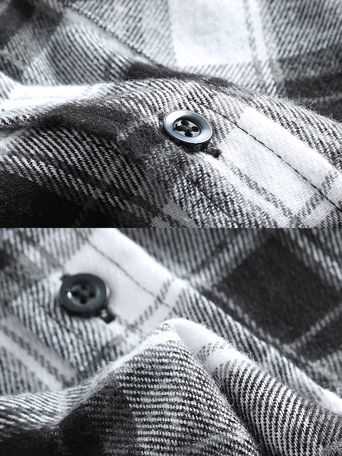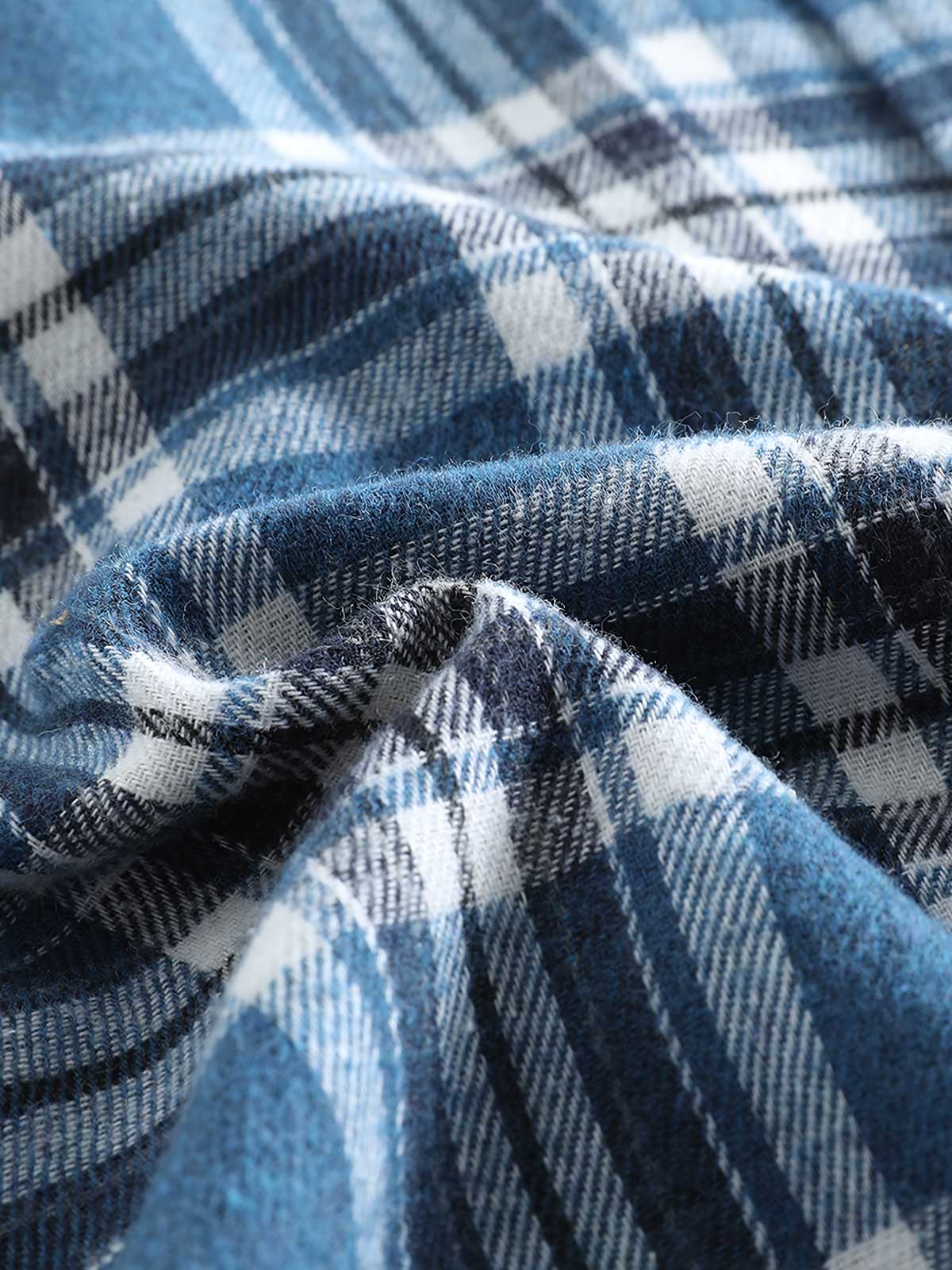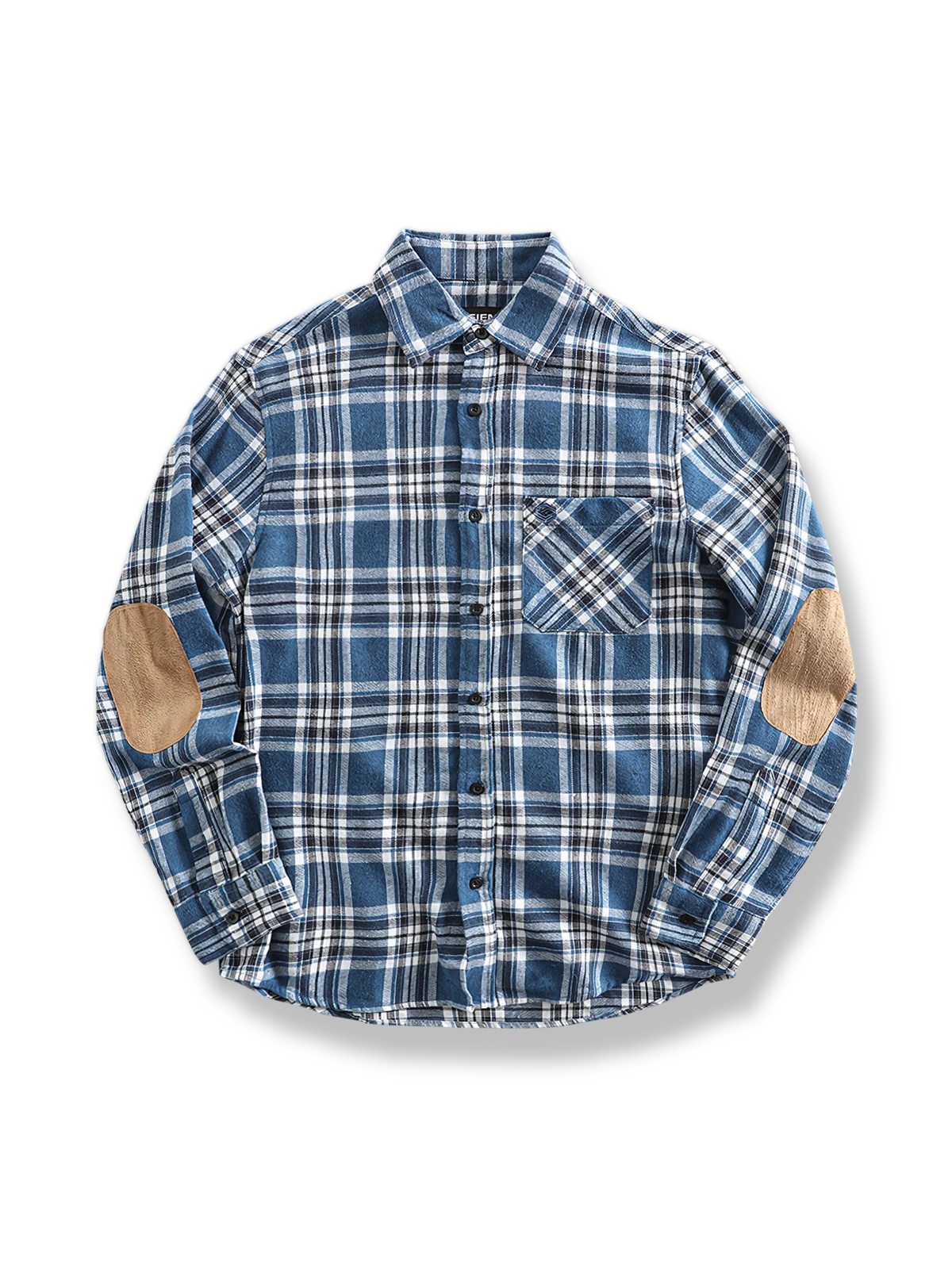 高品質の綿素材を使用し、起毛加工を施すことで質感と快適さが向上しています。クラシックな青白のチェックパターンは時代を超えて愛され続け、シャツの前面にあるポケットと肘のパッチワークは、シンプルなチェックシャツに独特のスタイルを加えています。